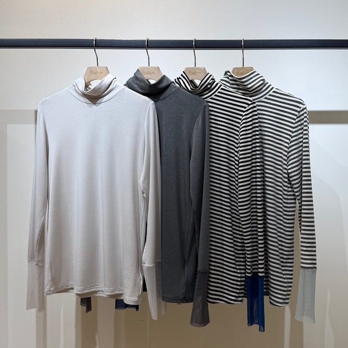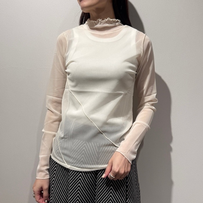 ラグウォーム素材のあたたかさに加え、チュール切替が上品な立体感と陰影を生み、インナーなのに主役級の存在感♡