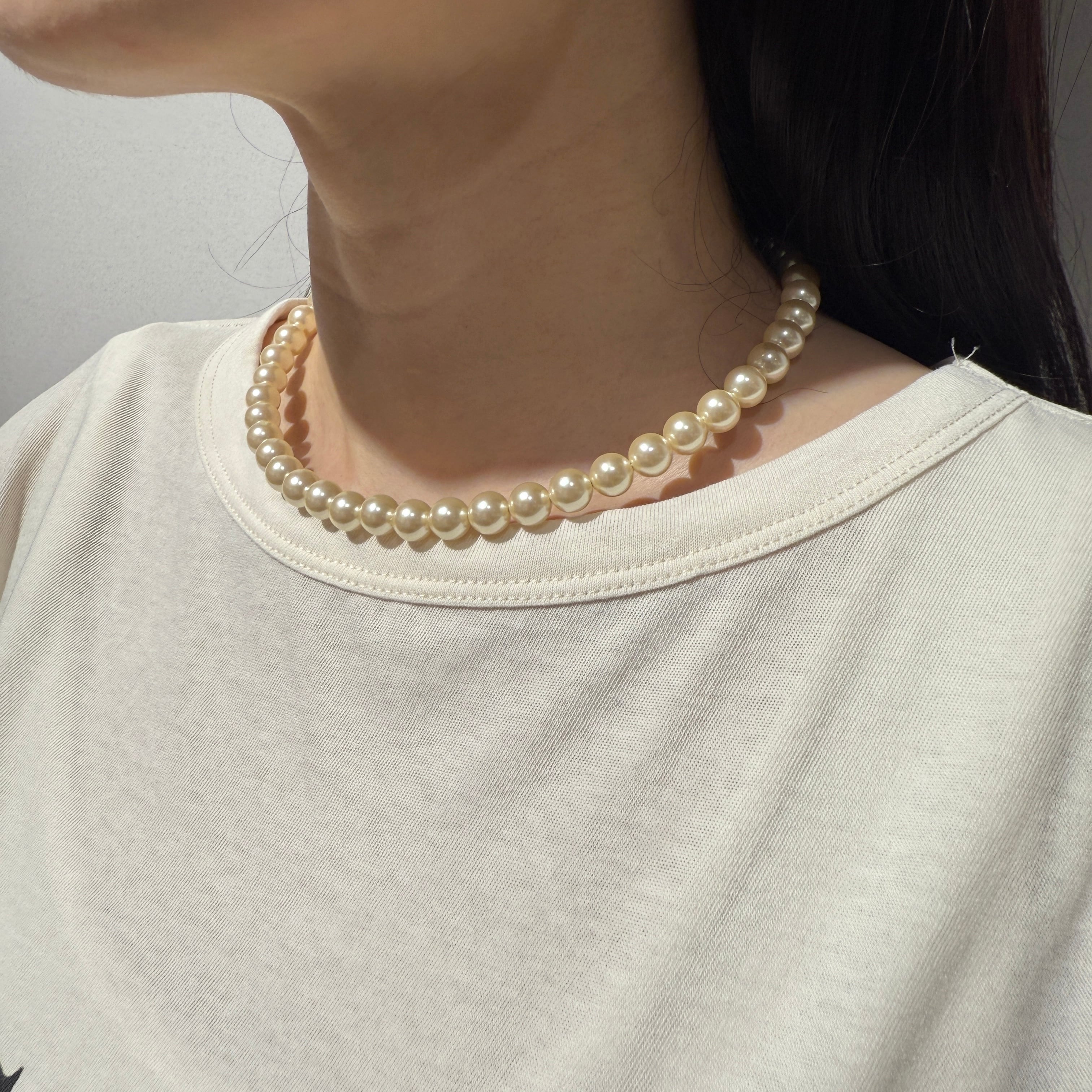 ハレの日も、カジュアル使いにも重宝する樹脂パールチョーカー。
