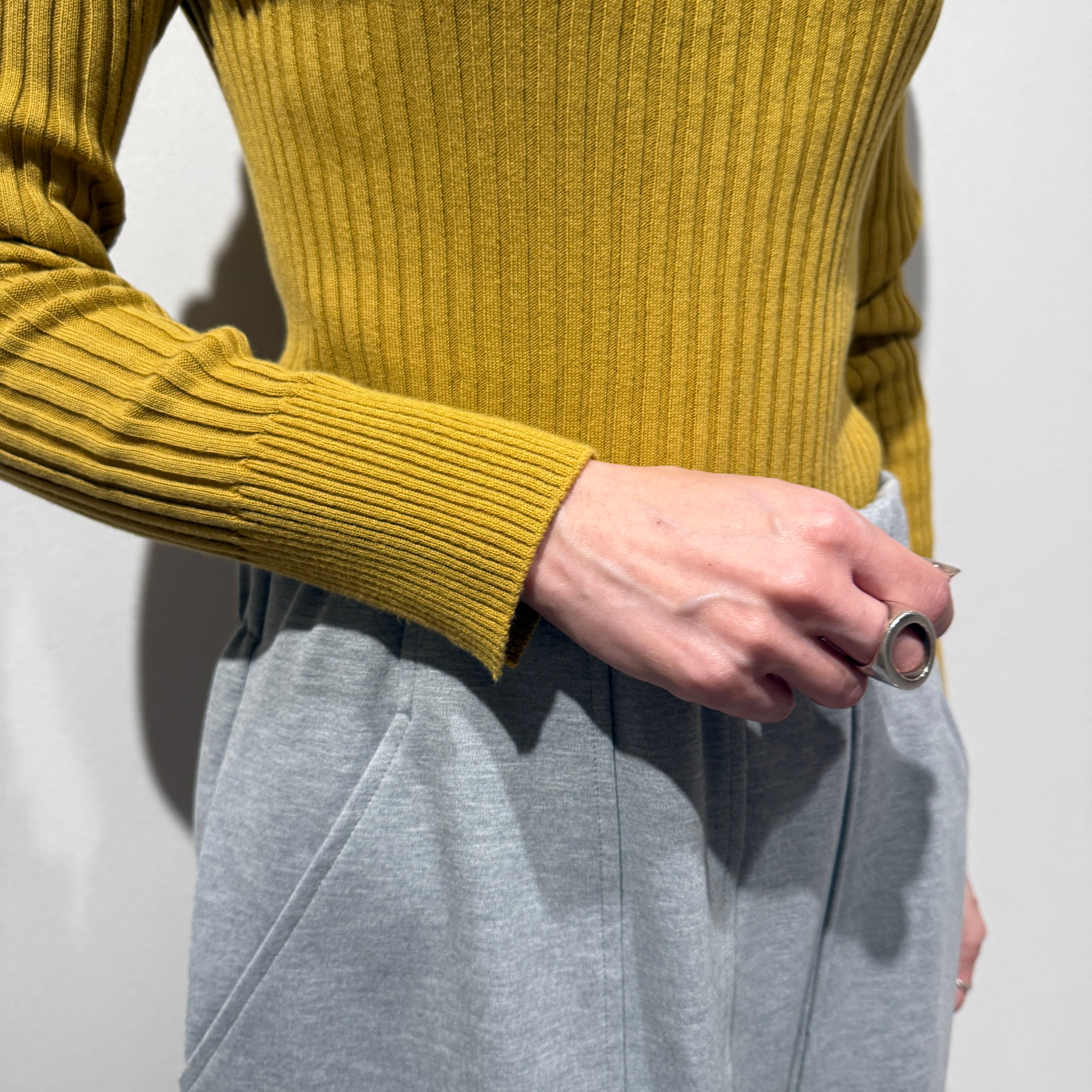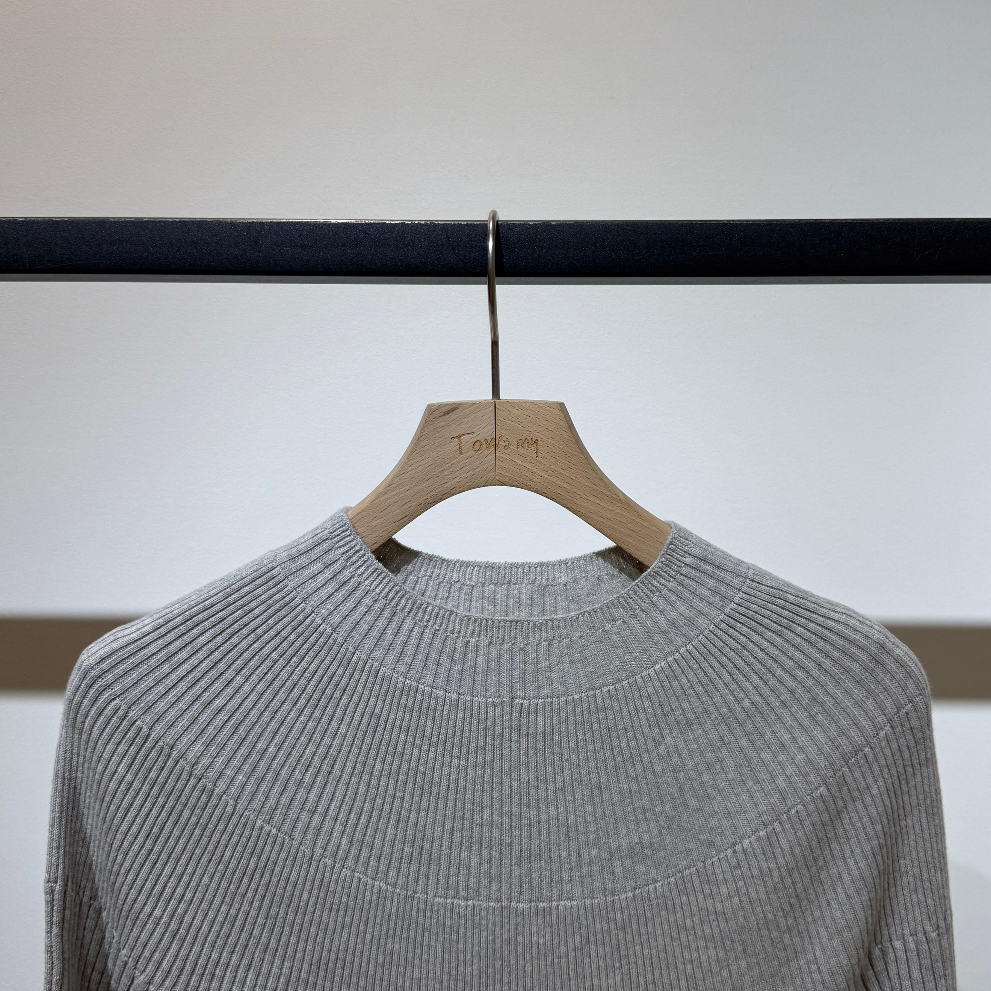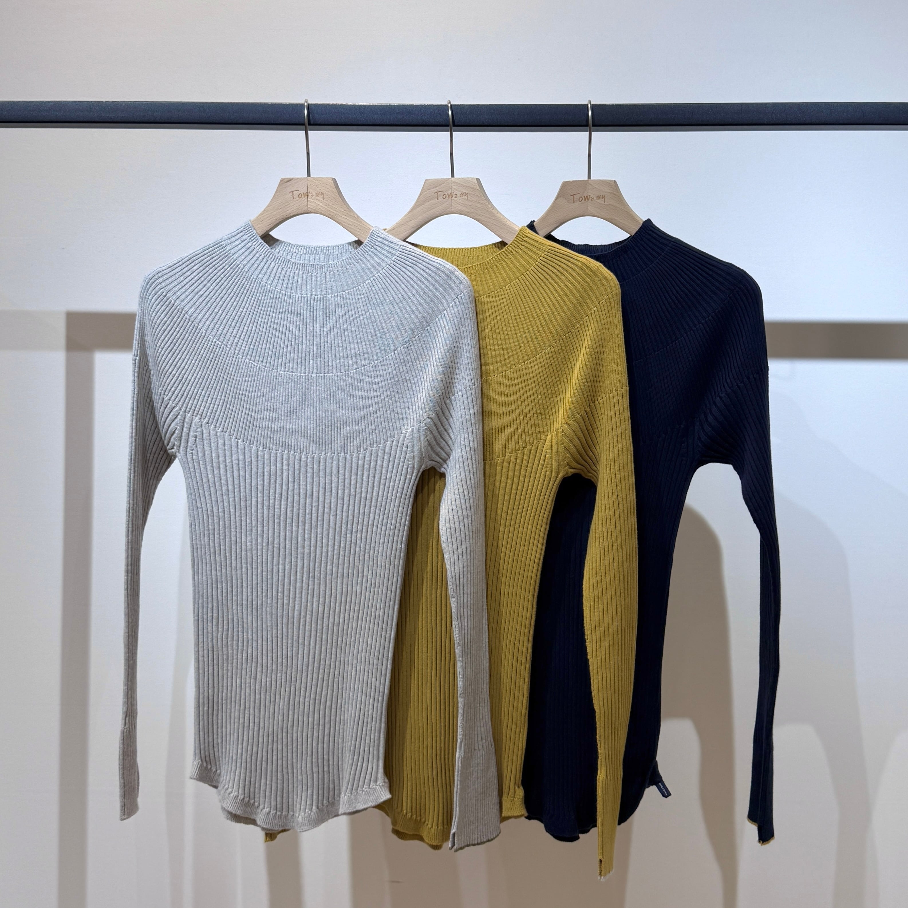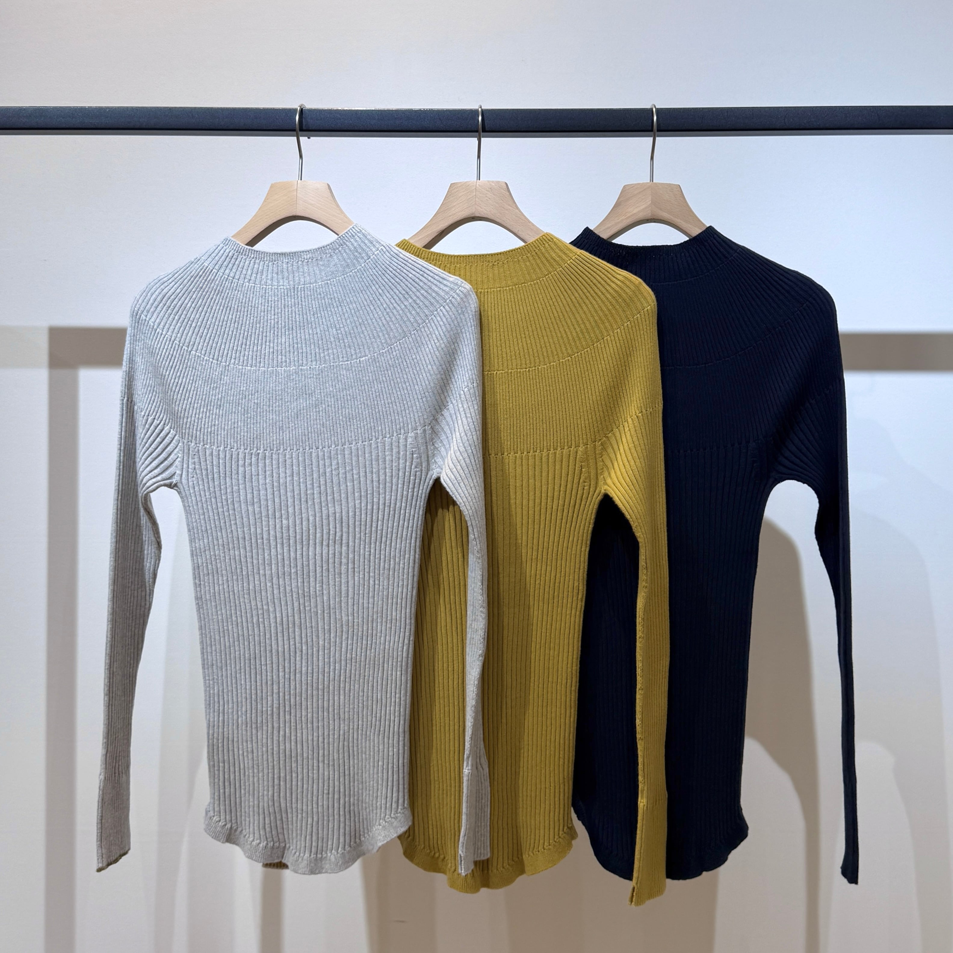インナー使いにぴったりなリブニット裾ラウンドブルオーバー。