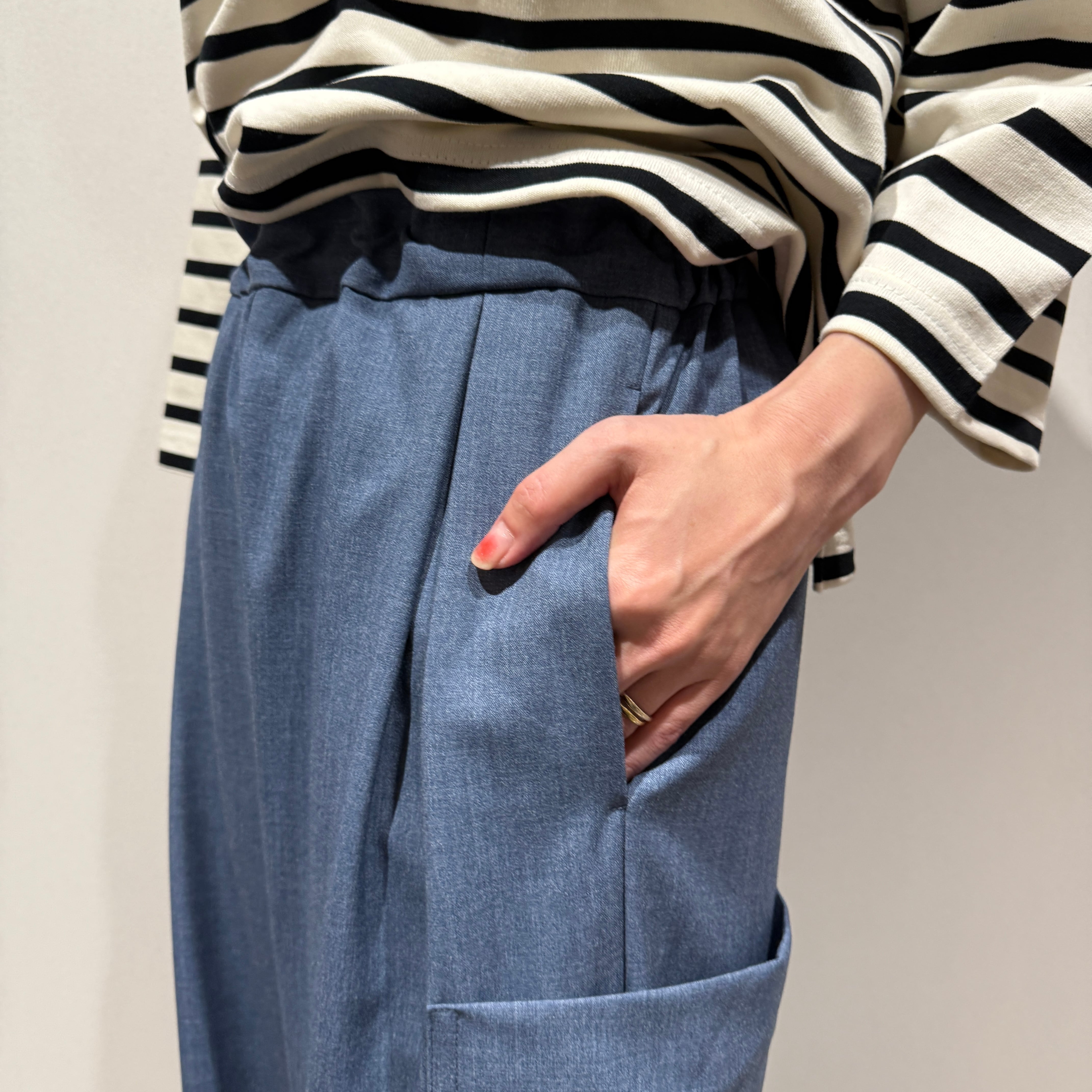 Towamy別注!素材とサイズ感にこだわったシルエット抜群のワイドポケット付きパンツ。