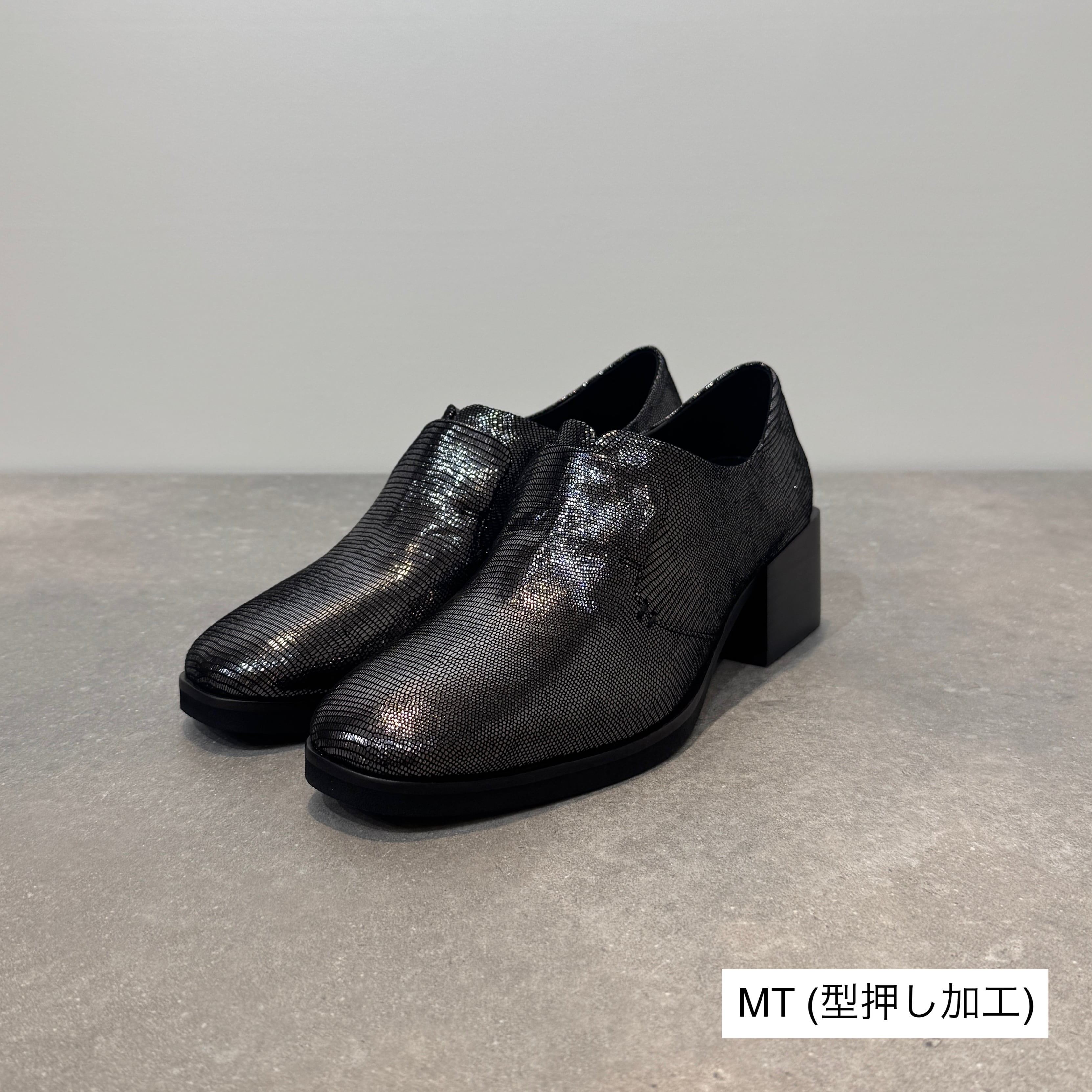 無駄をそぎ落としたミニマルなデザインが魅力のヒールアッププレーントゥシューズ。