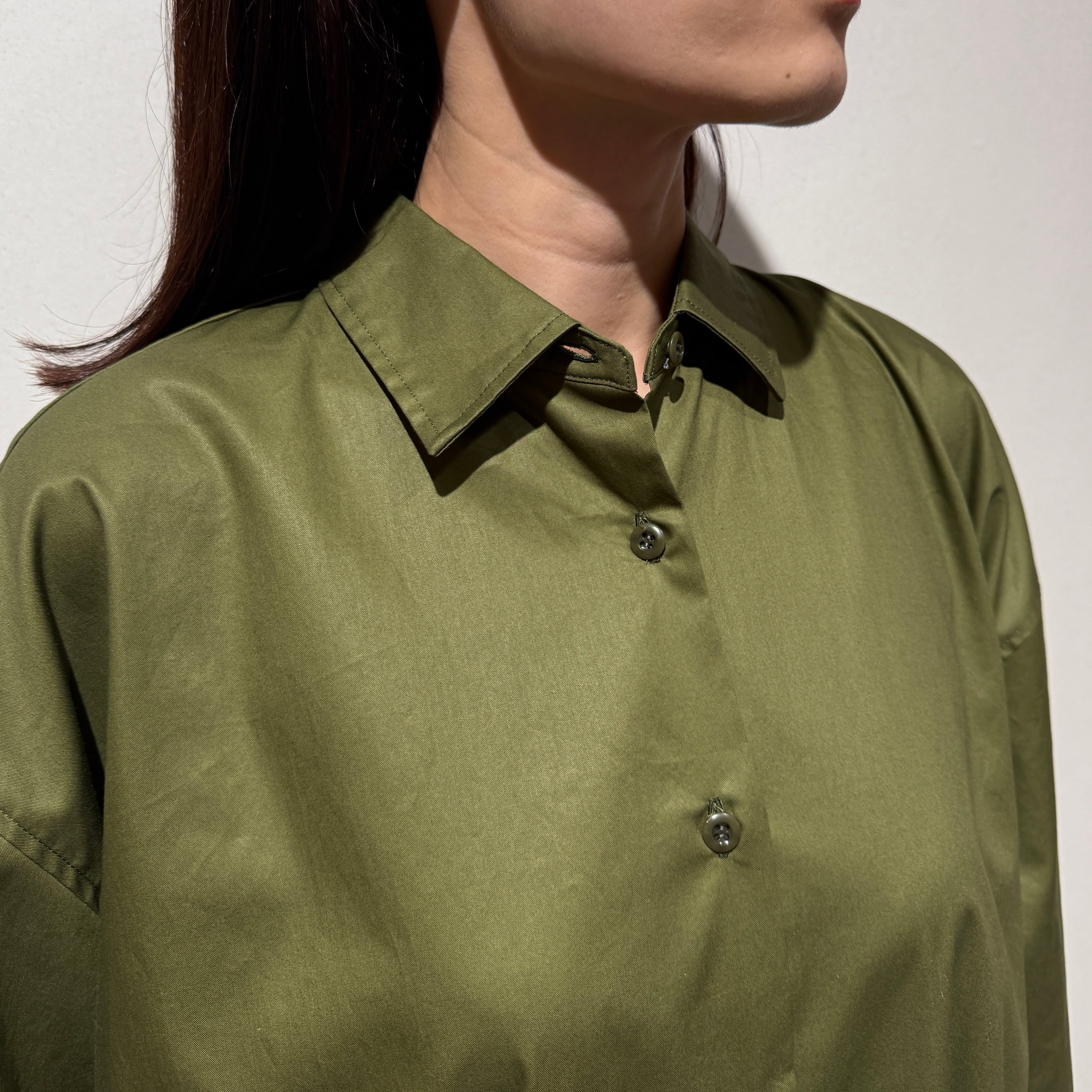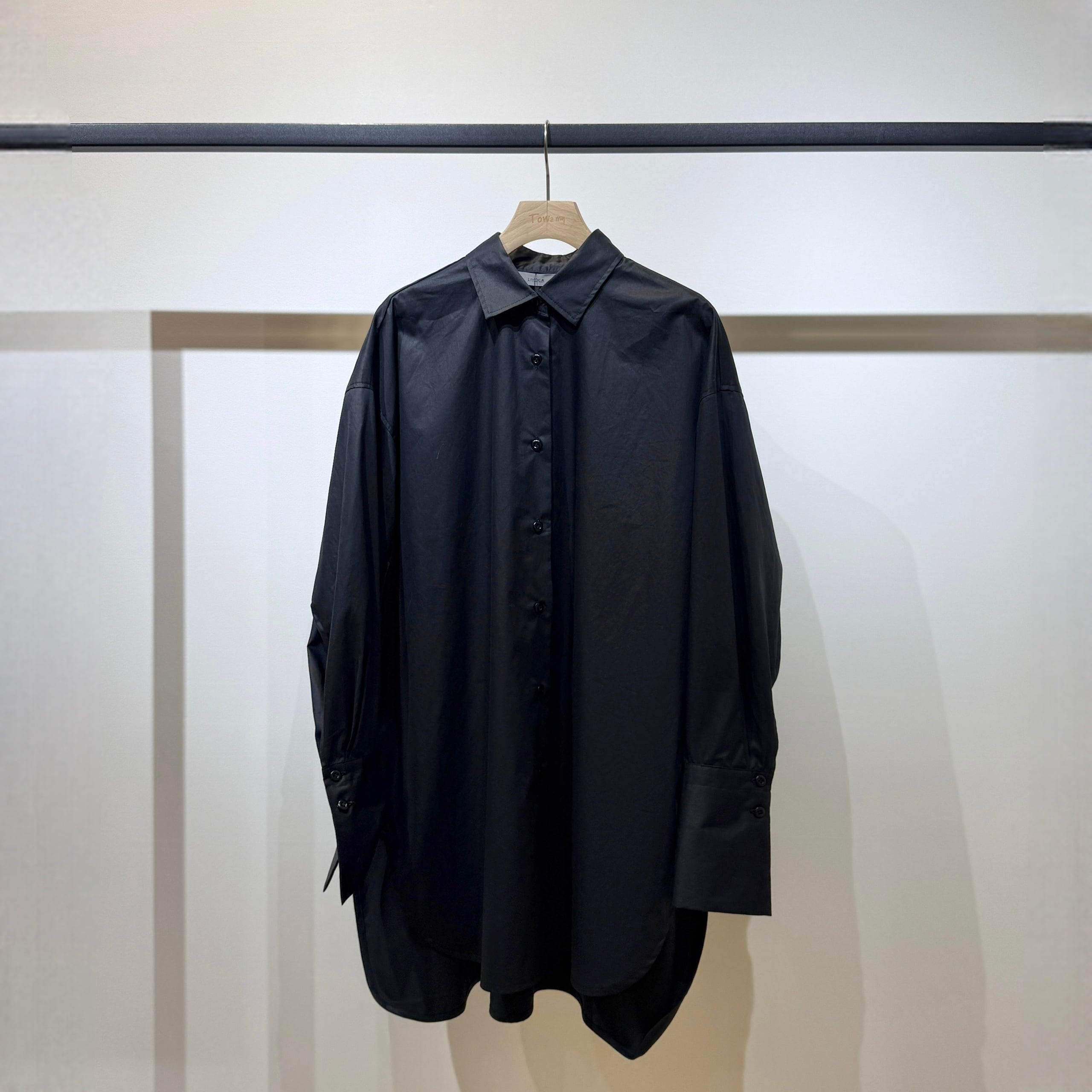 ゆったりとした抜け感が魅力のオーバーサイズコットンツイルシャツ。