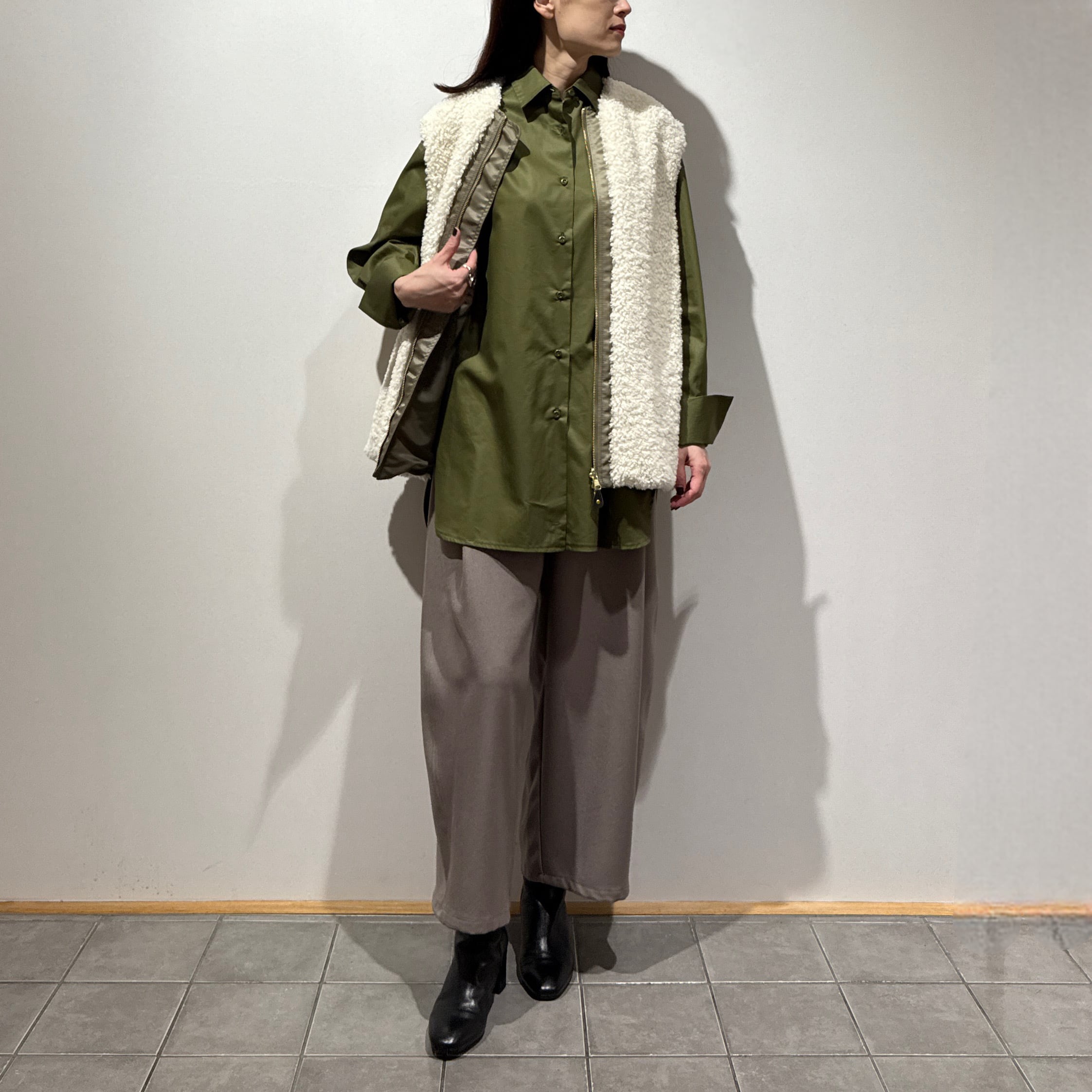 タイトなパンツでメリハリをつけるか、ワイドボトムと合わせてリラックス感を出すのがおすすめです。
