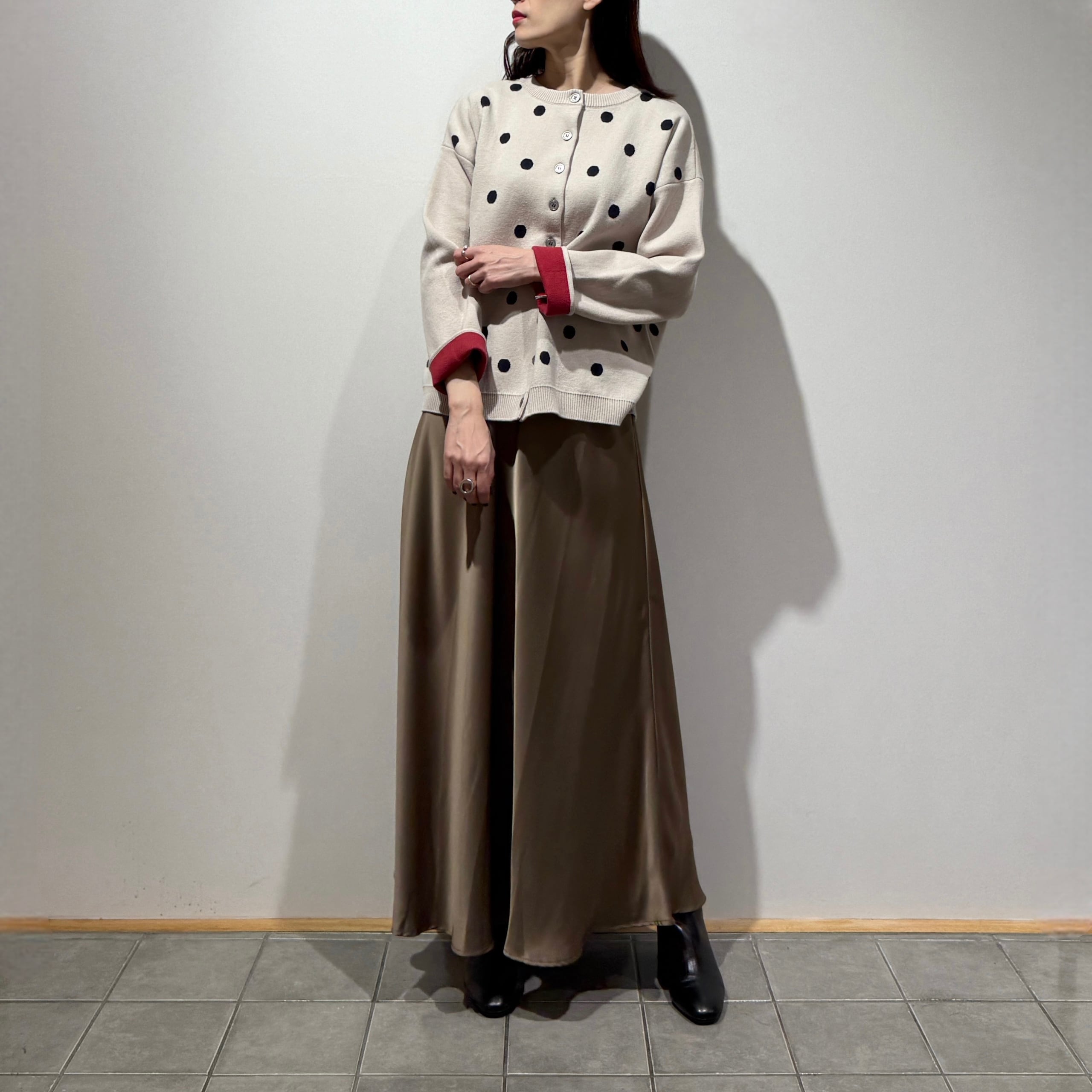 スタンダード感のあるコーディネートに仕上げつつ、裏面の配色ムジ部分をアクセントとしてチラリ。