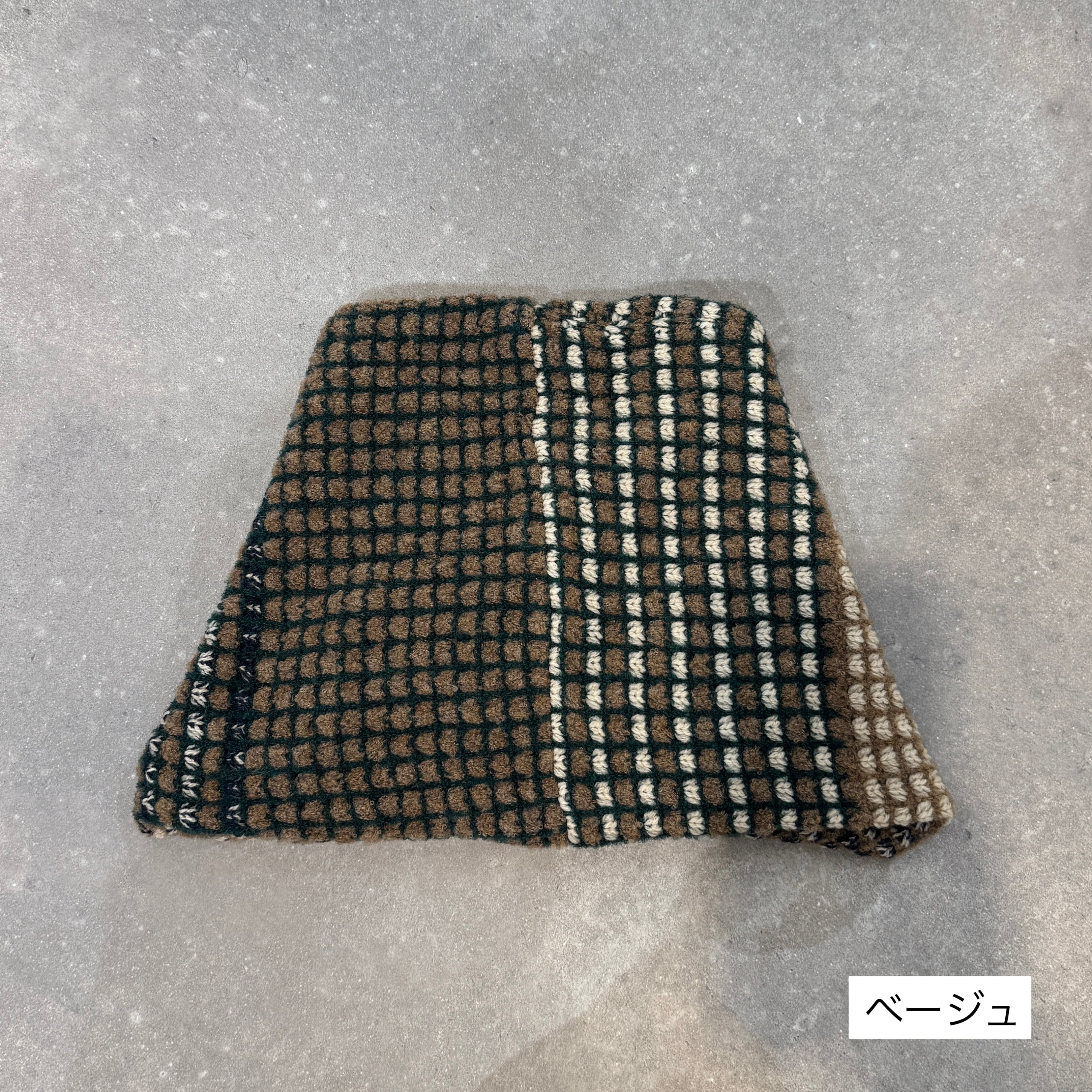 表情豊かな色の切り替えが楽しめるデザインで、どの面を前にしてもバランスよく決まるシックなカラーリング。コントラストの効いた配色が冬の装いに奥行きをプラスします。