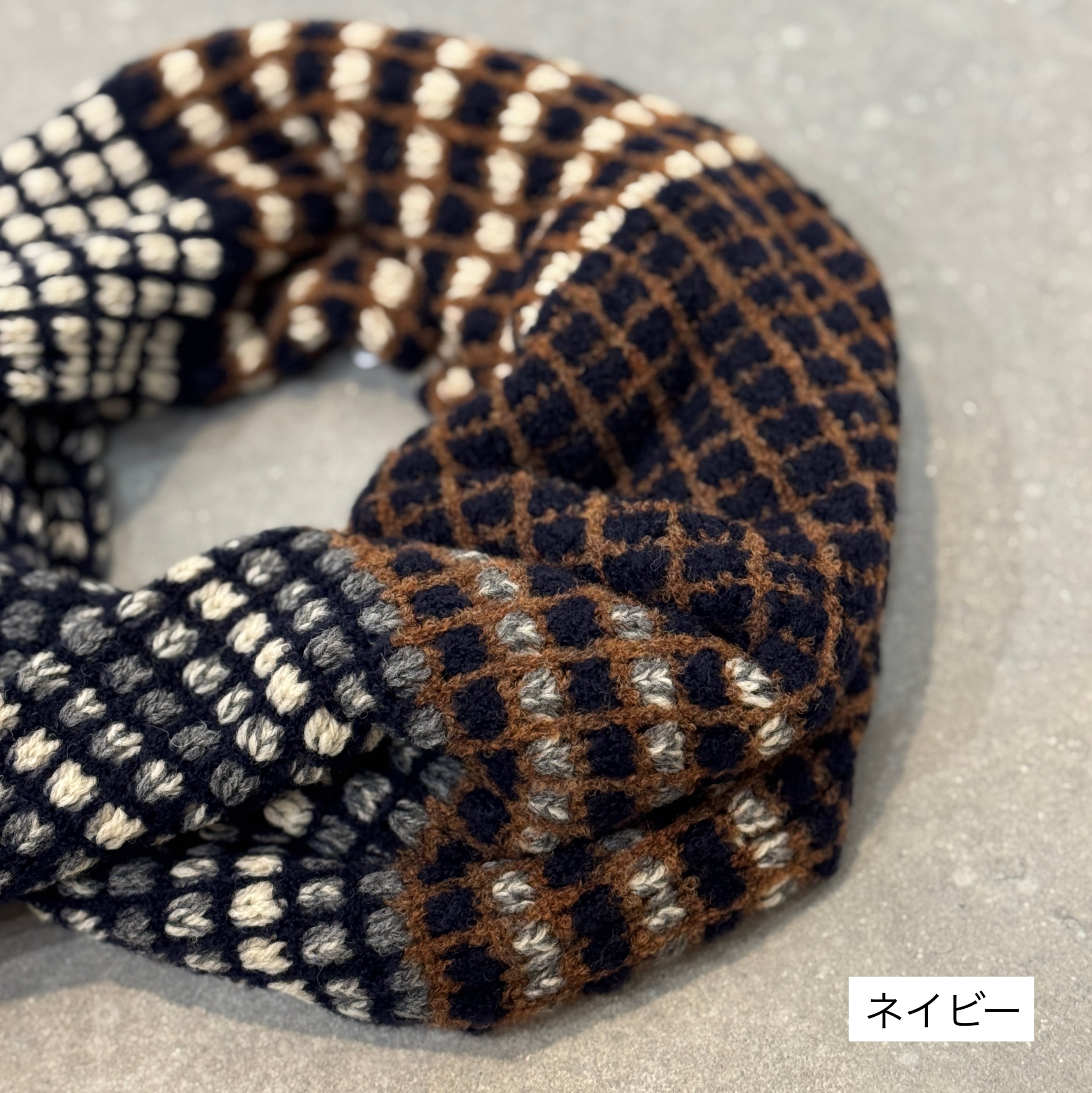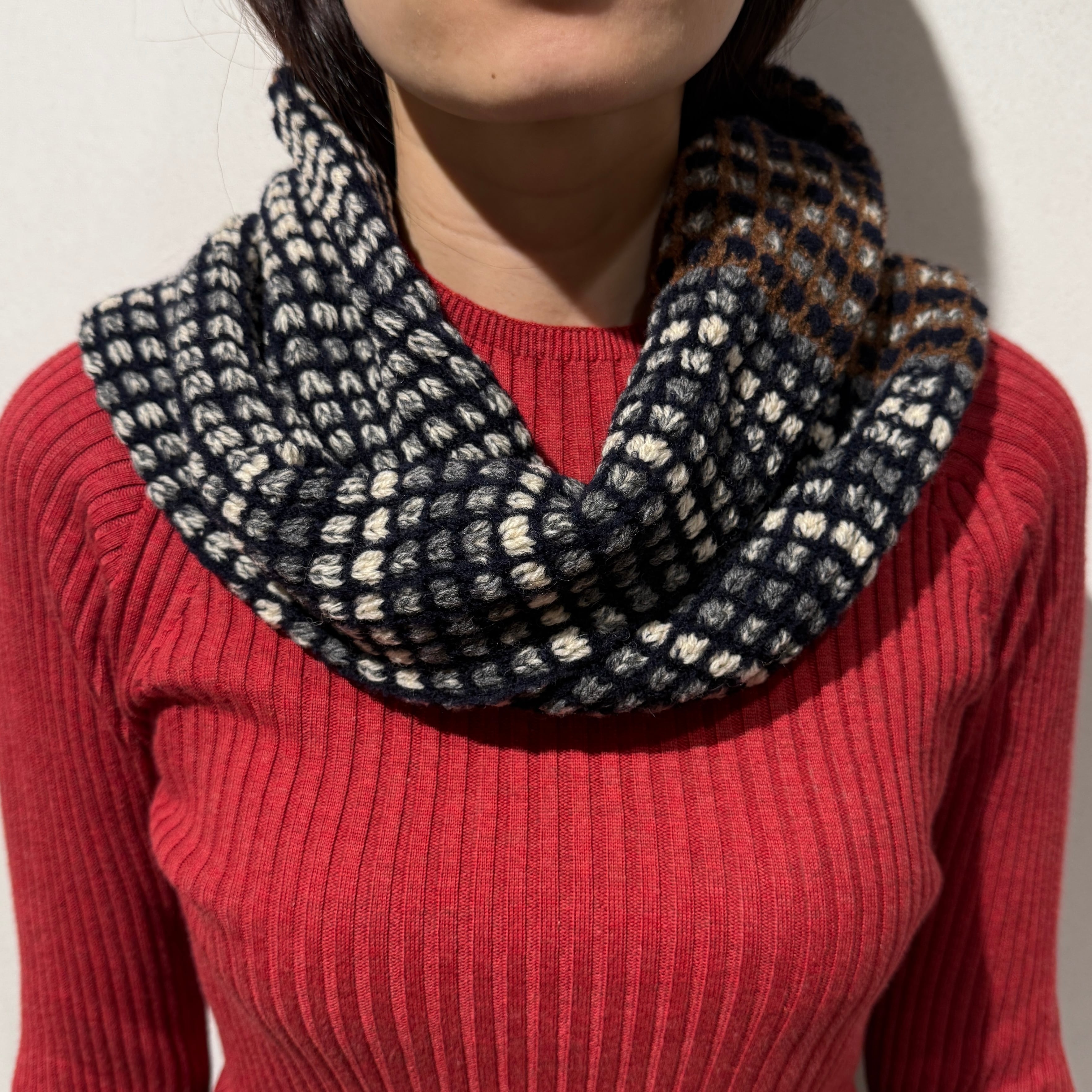 小さなドット柄がアクセントになった、ミックスニットジャカードのスヌード。