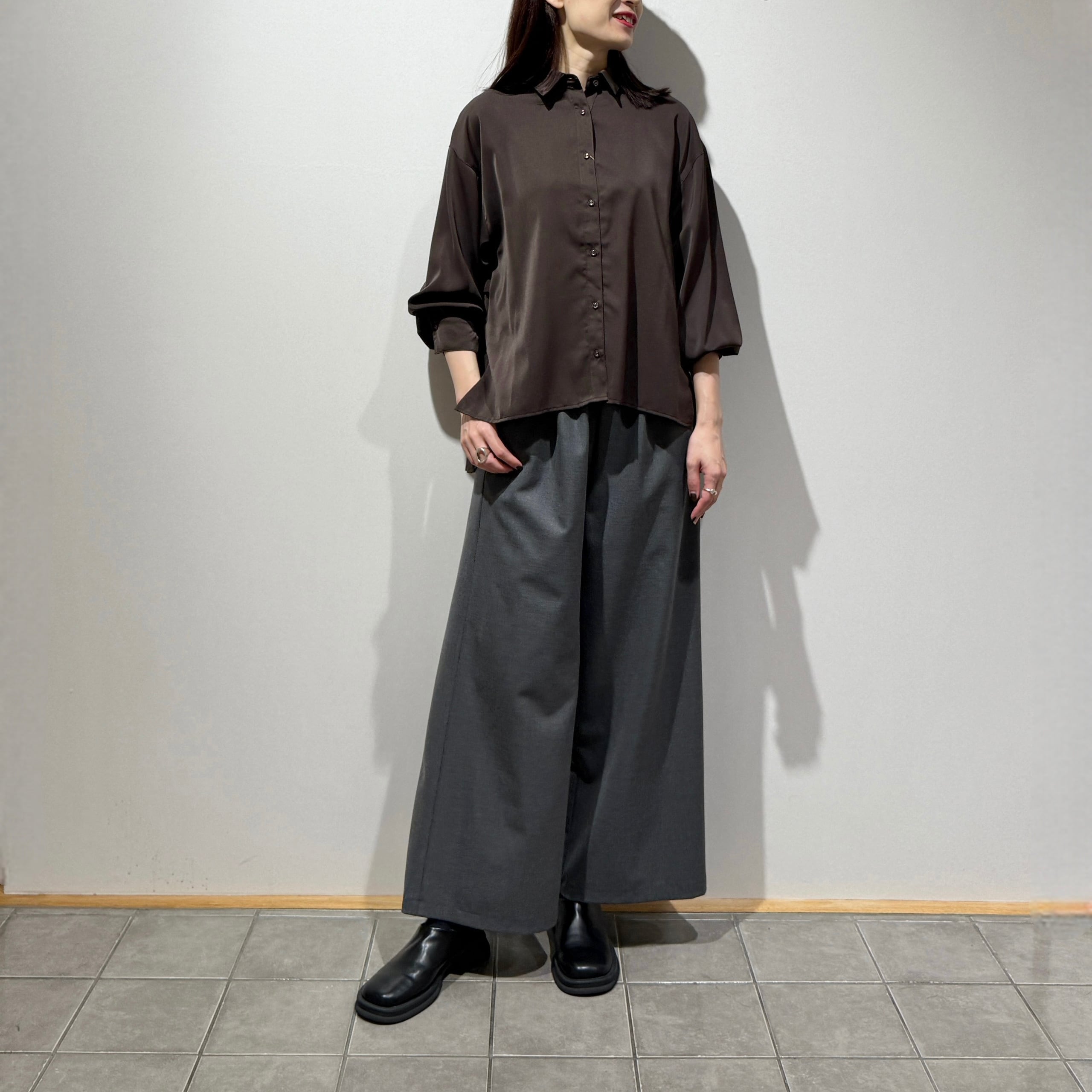 イージーパンツでありながら贅沢なギャザーがエレガントなルックスウォームセミワイドパンツ。