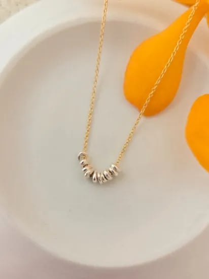 カレンシルバーのラフロンデルビーズがモチーフのネックレス。