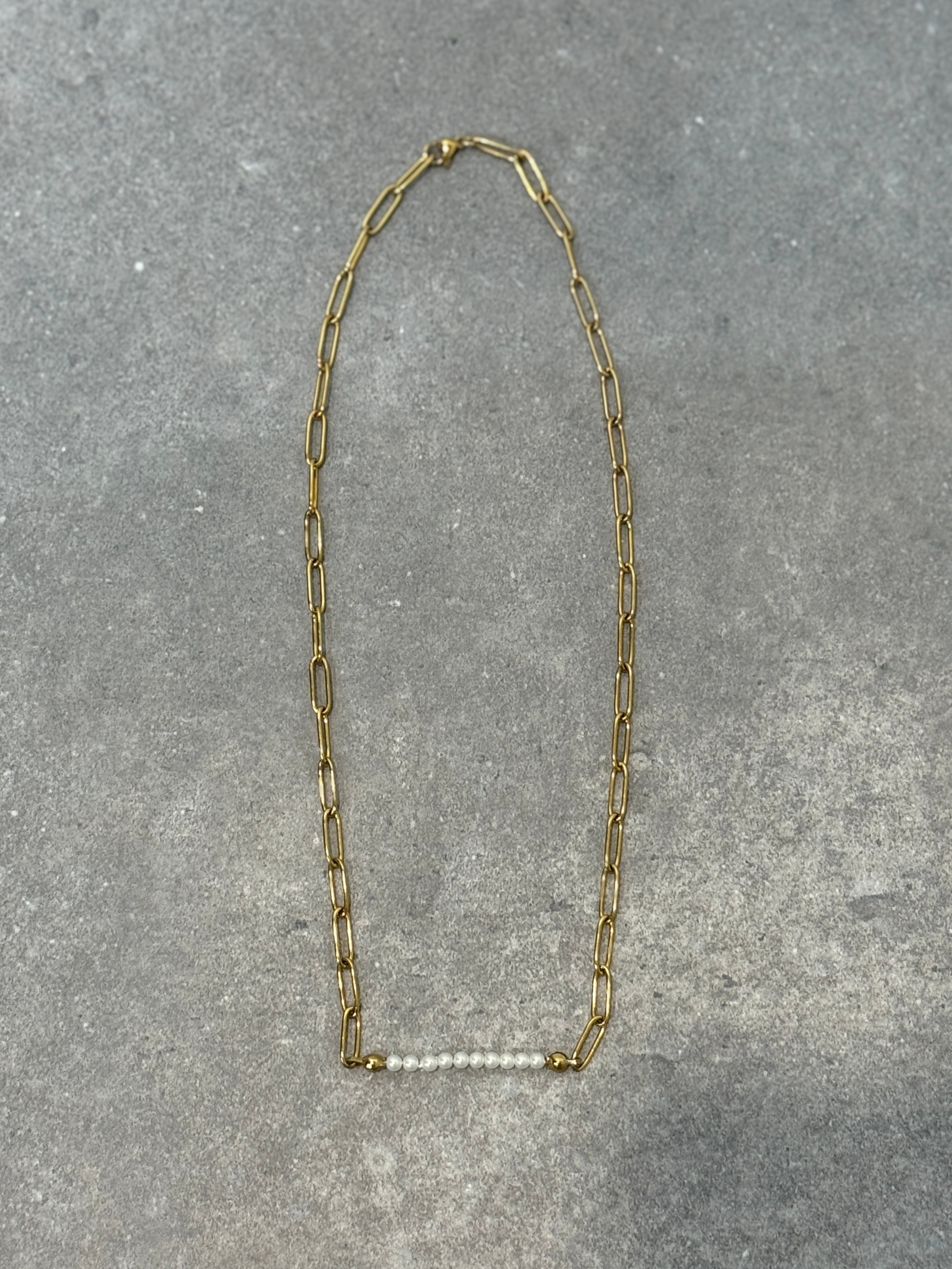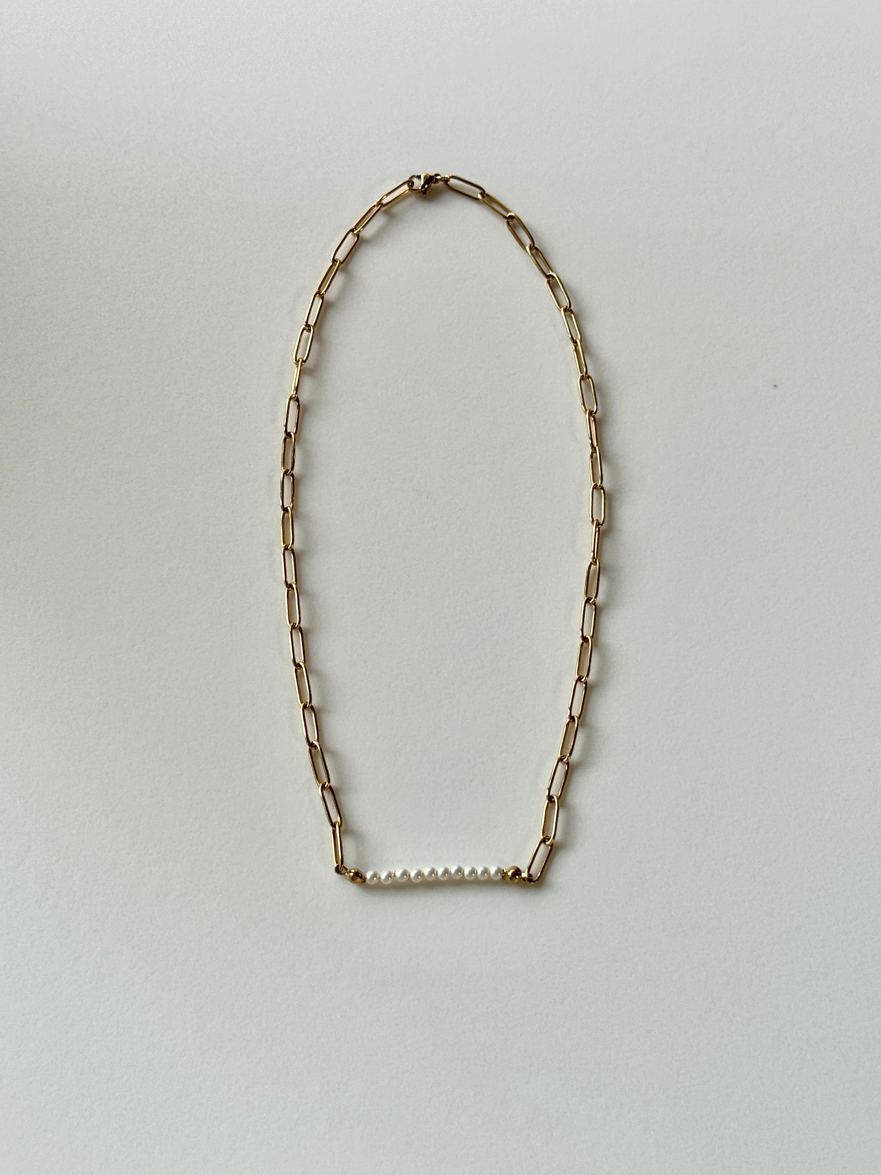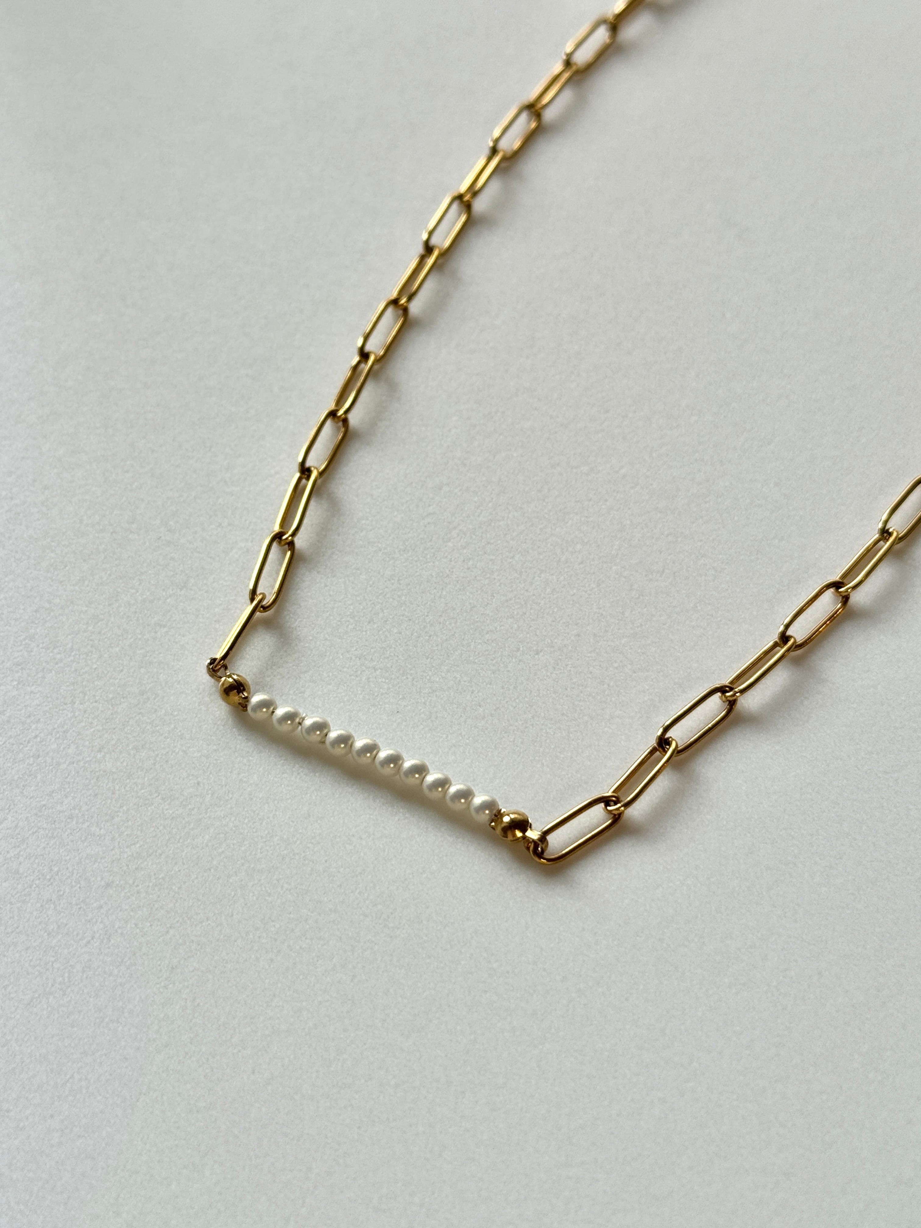 上品なパールとスタイリッシュなチェーンを組み合わせたネックレス。