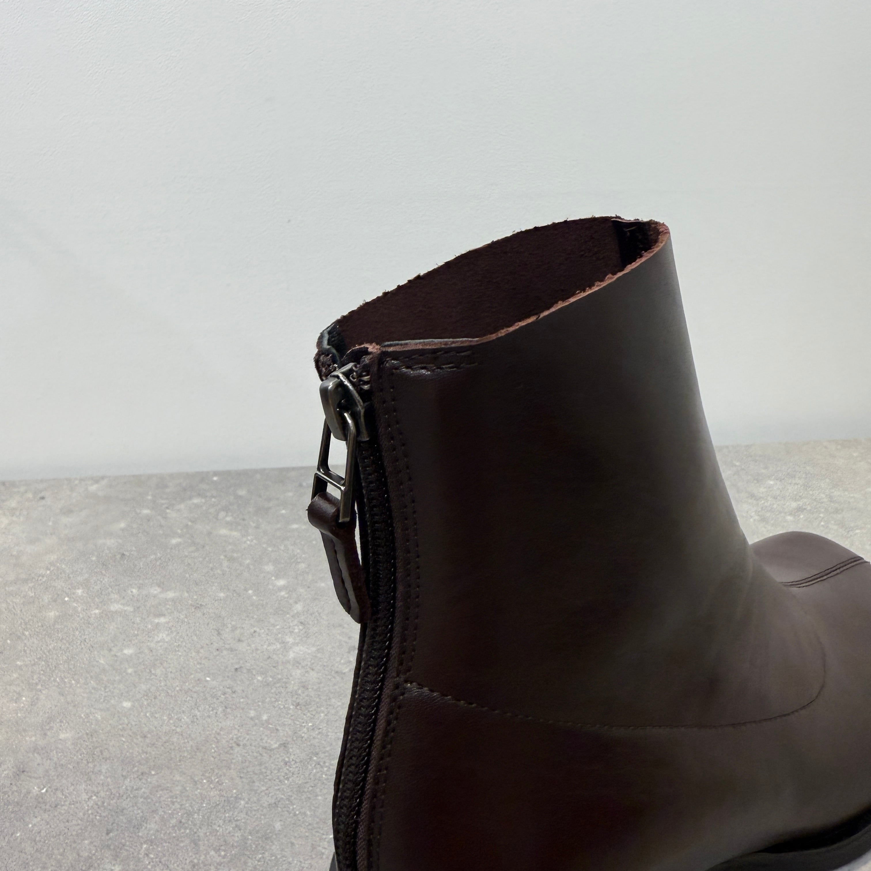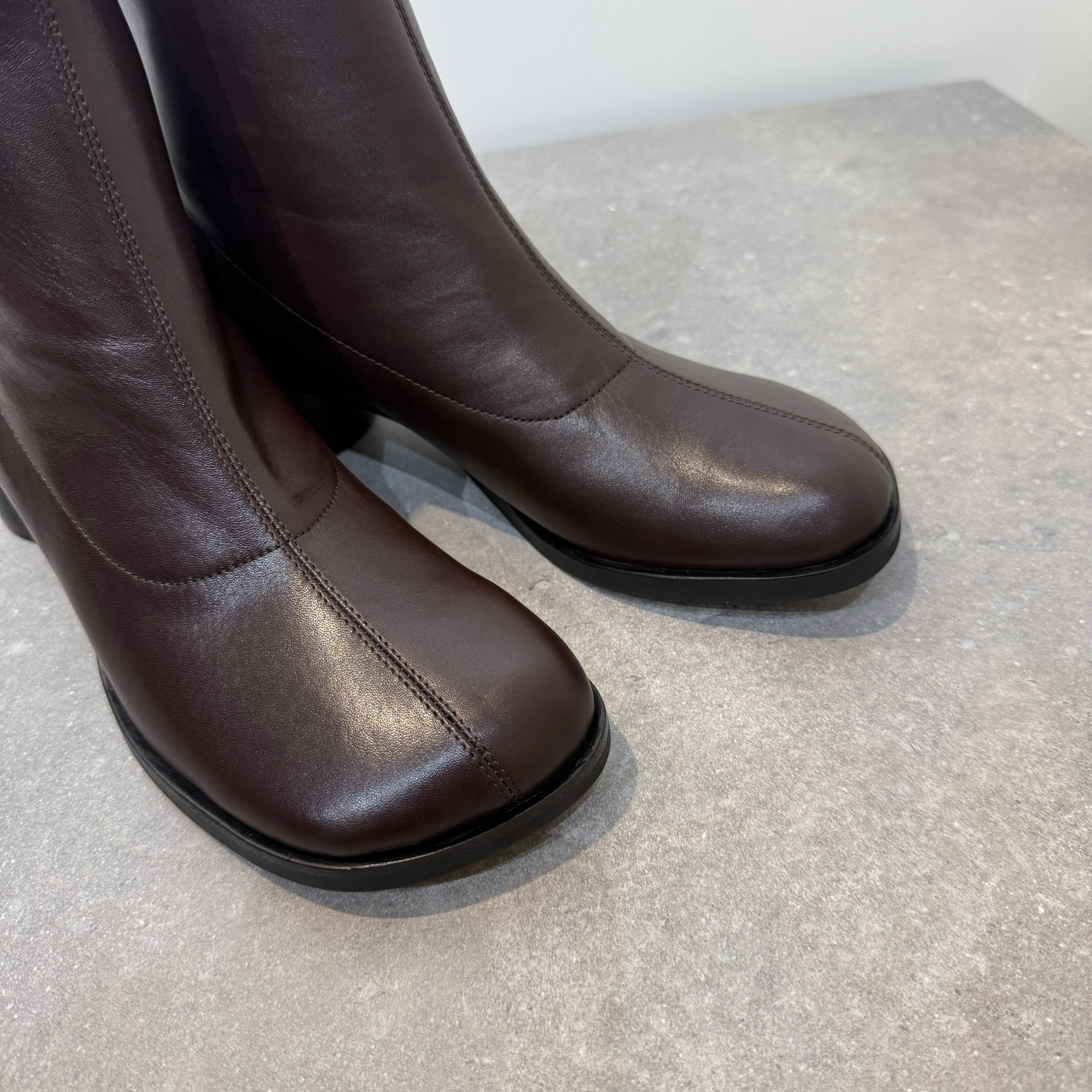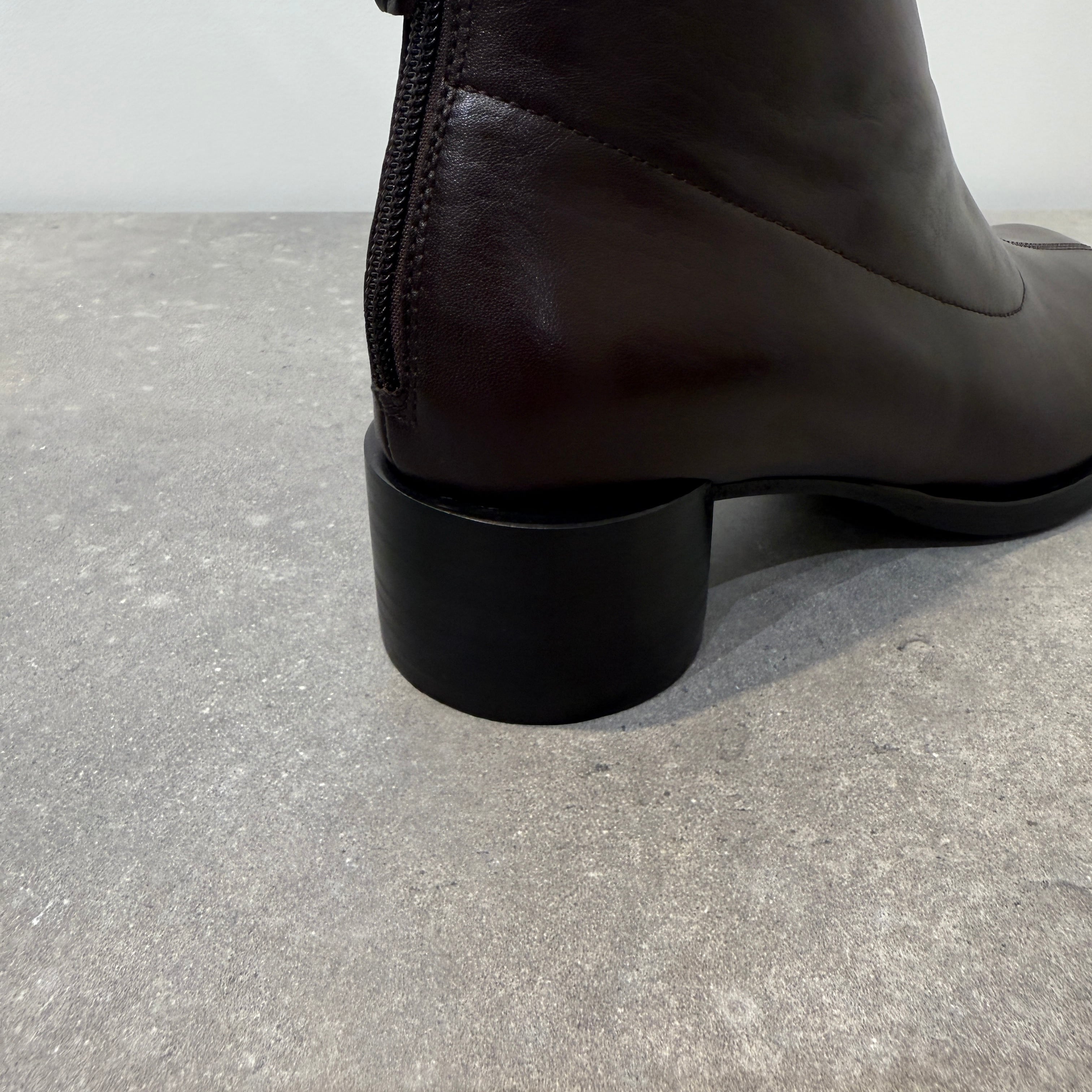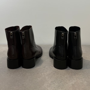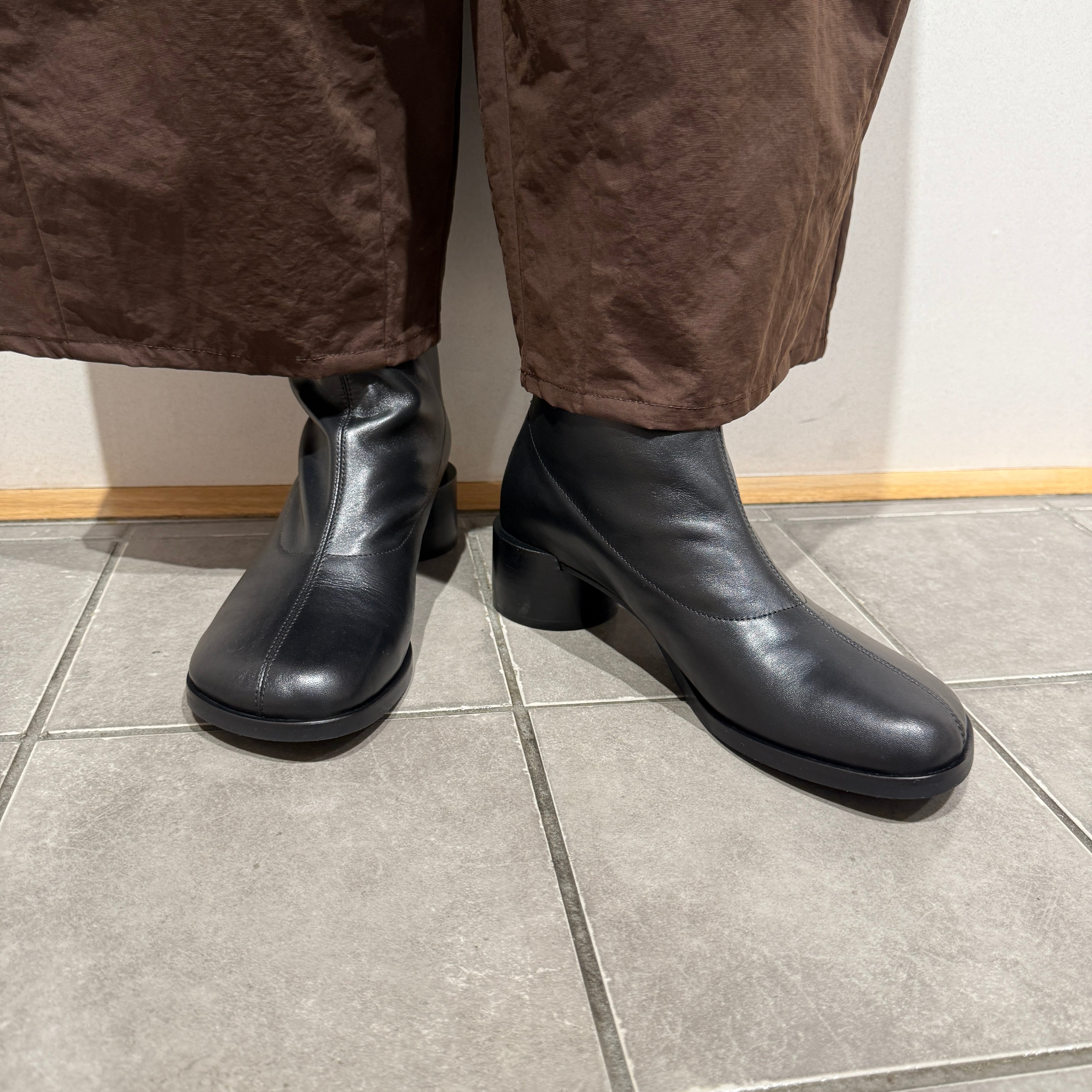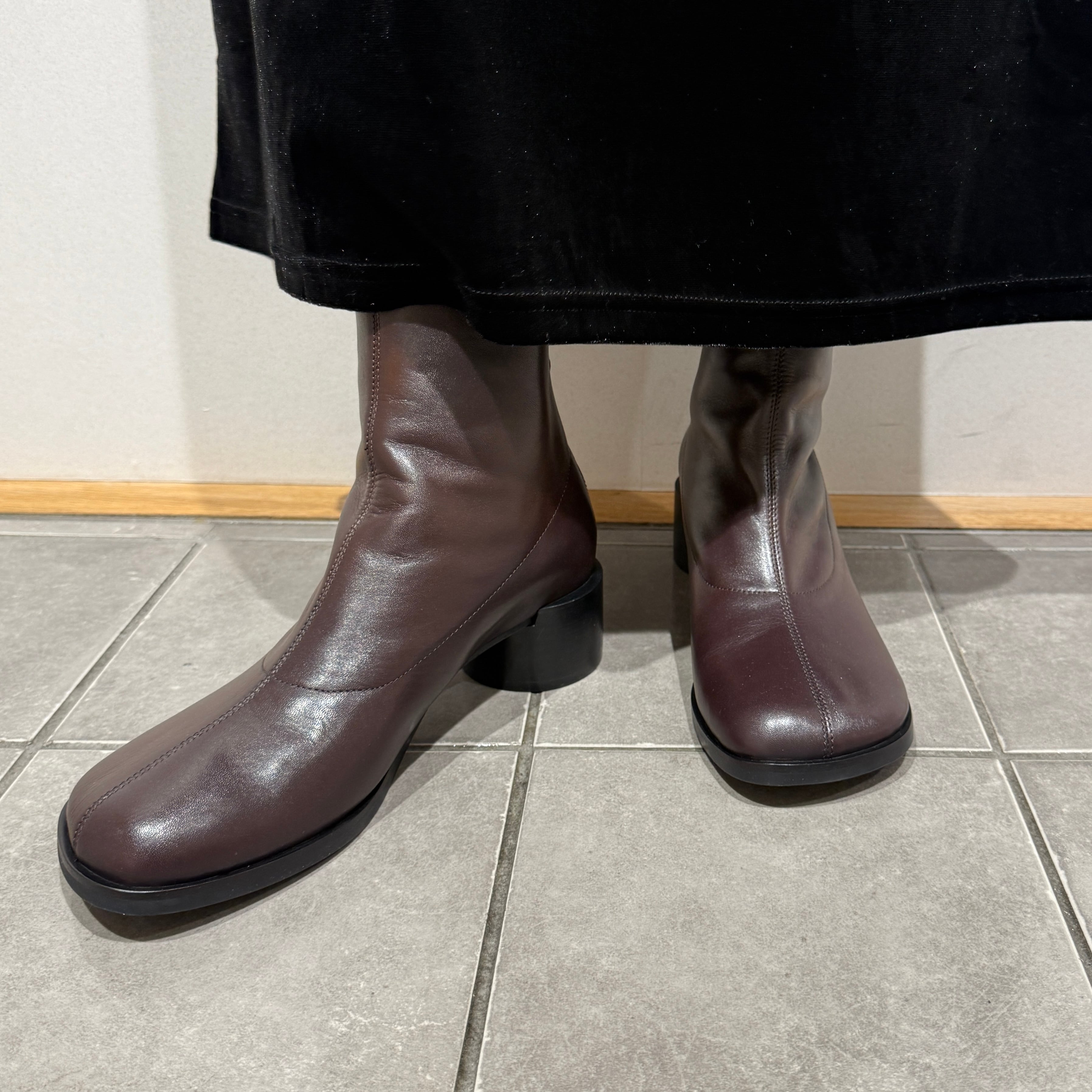 シンプルでありながら洗練されたシルエットのスクエアヒールブーツ。