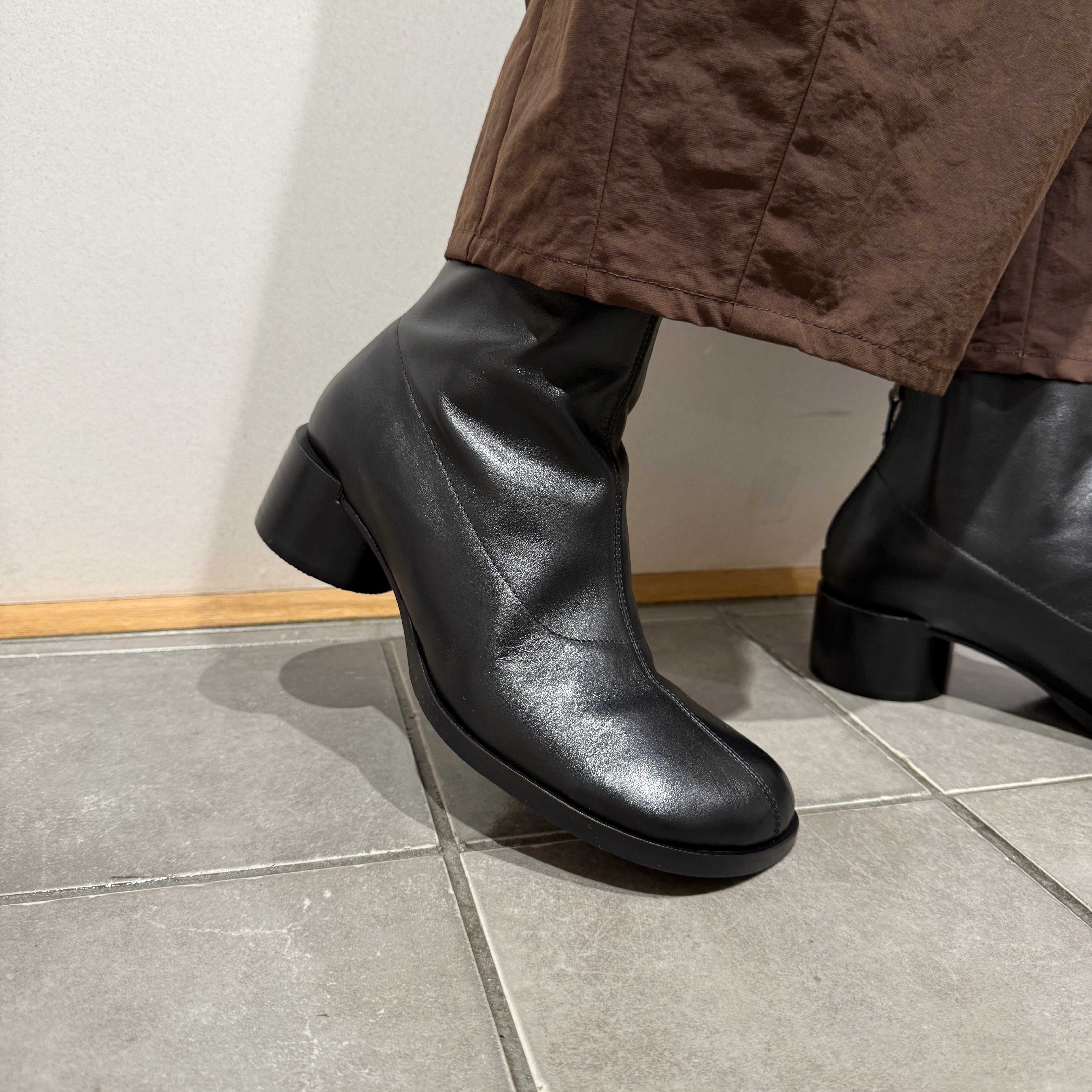 バックジップで履きやすく、すっきりとしたスクエアトゥの組み合わせが洗練された印象を演出します◎