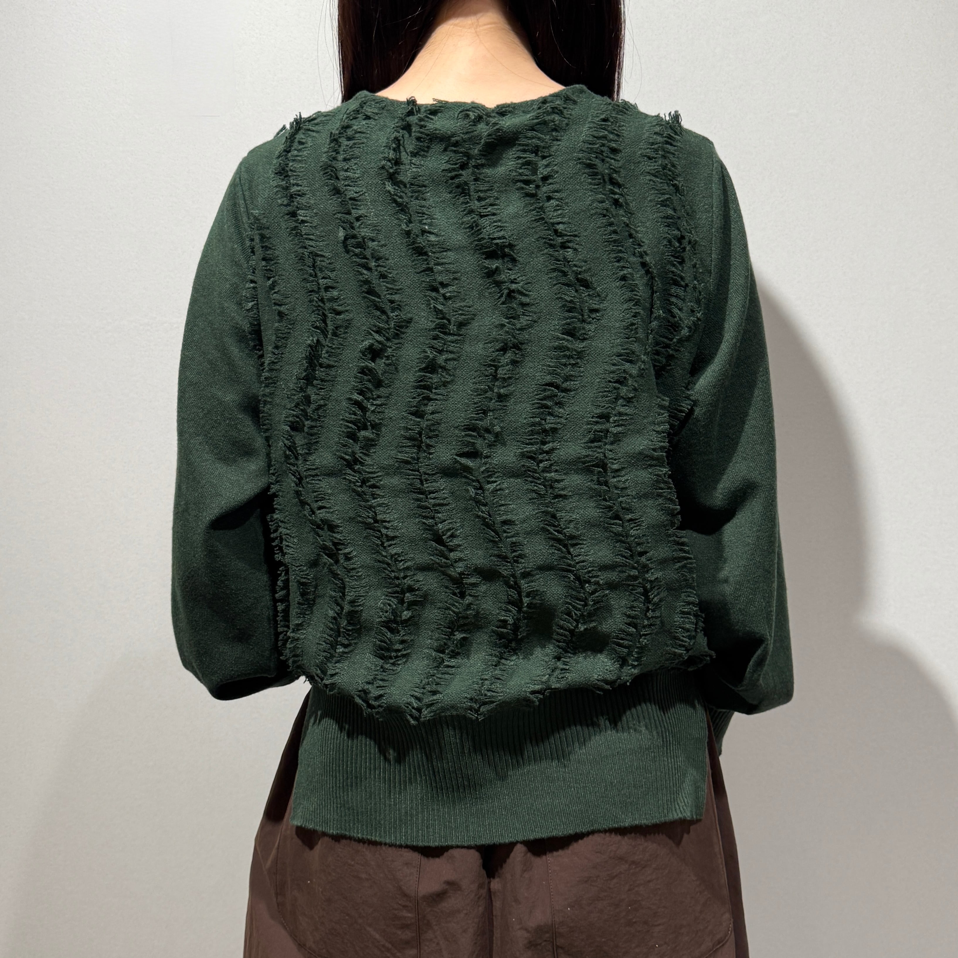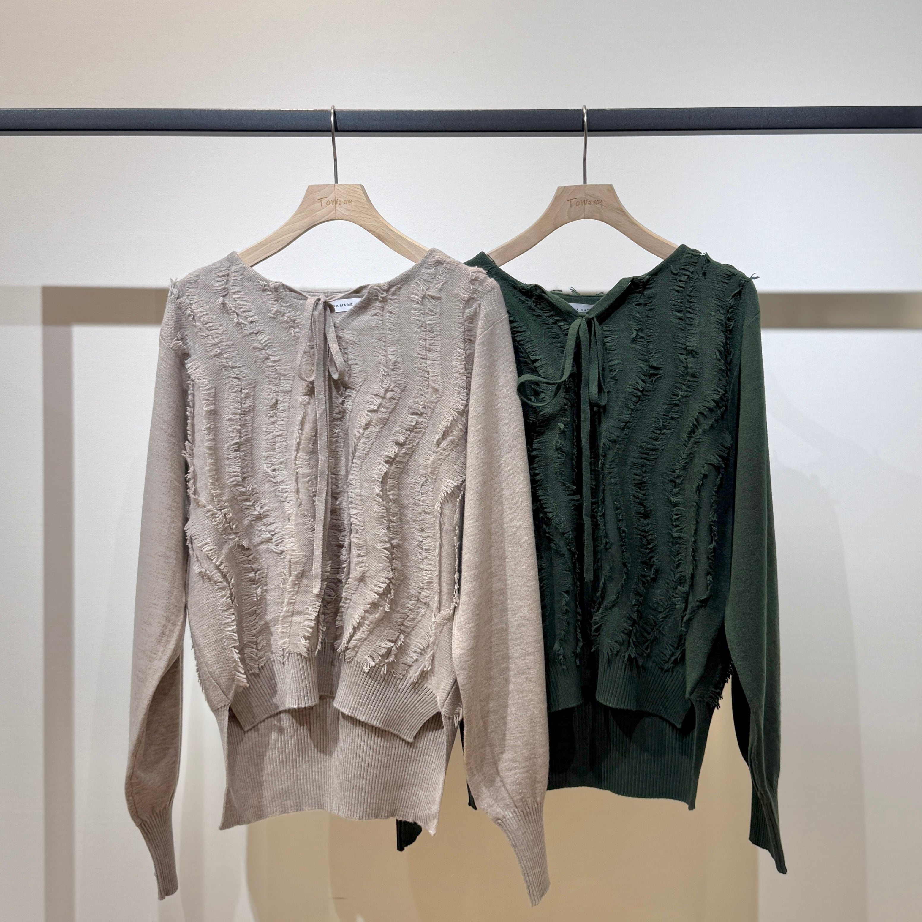立体感のあるフリンジデザインが印象的なニットプルオーバー。