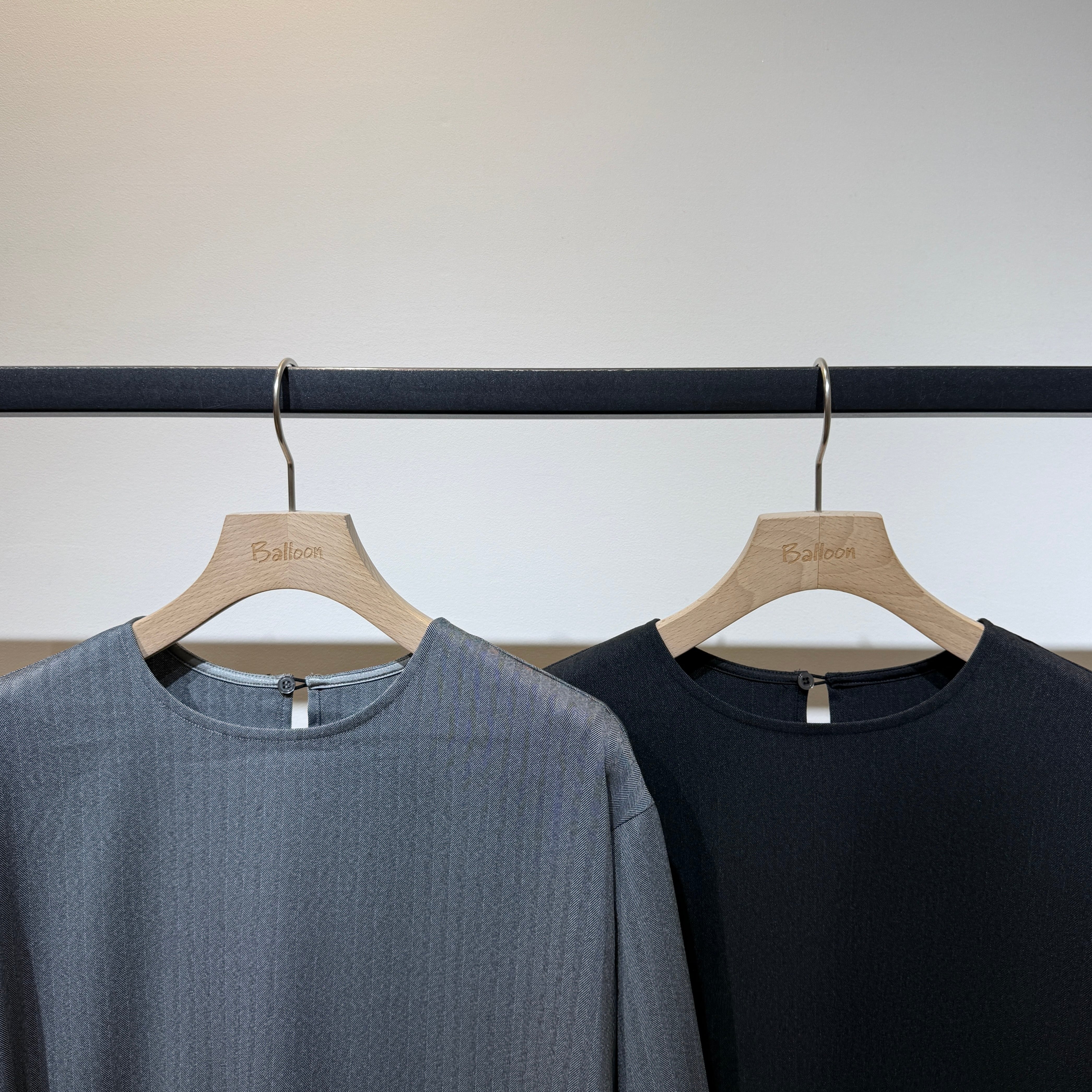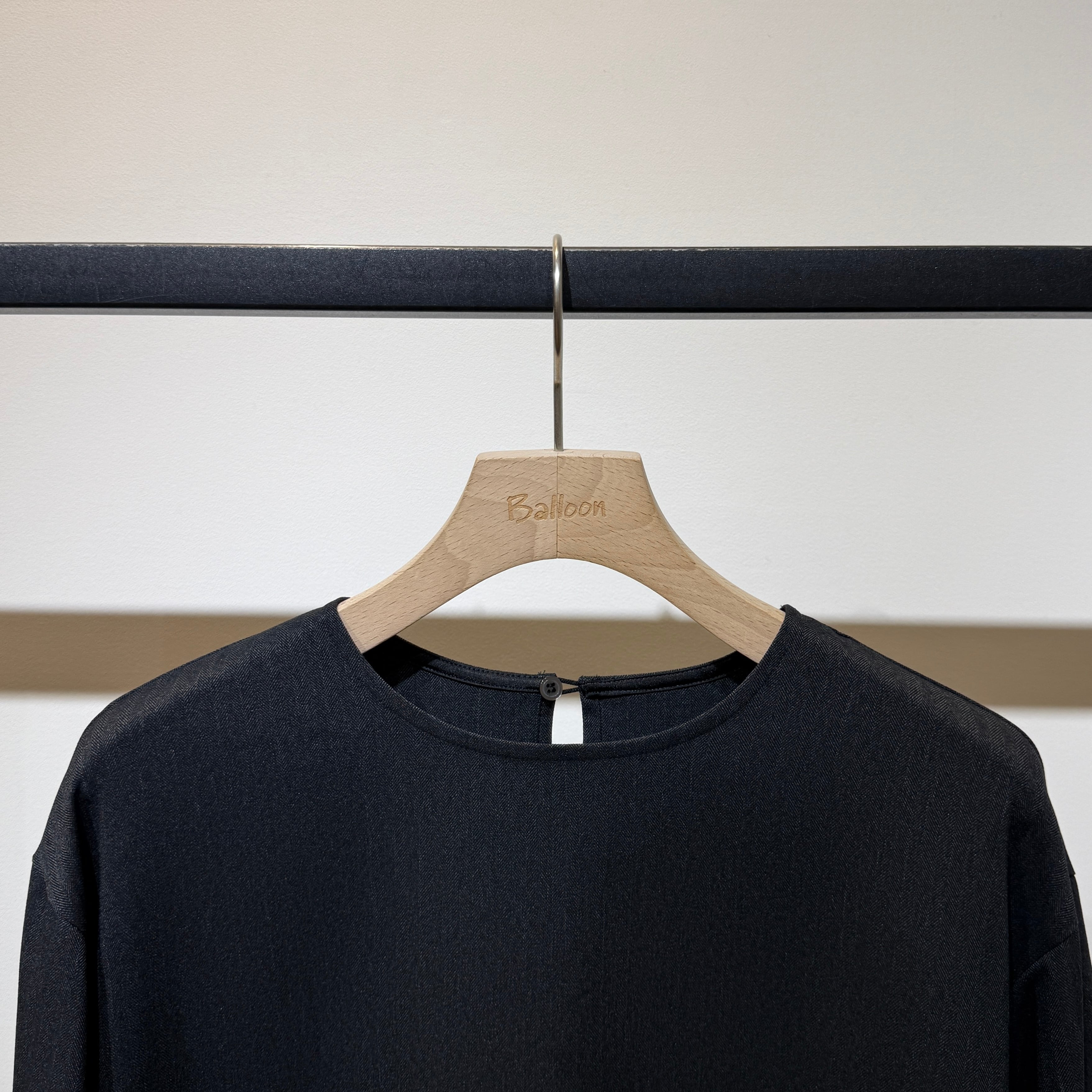 袖口にはリブを施し、ほどよくカジュアルダウン。ストンと落ちるシルエットが体のラインを拾いにくく、リラクシーでありながら上品な印象に仕上がります。