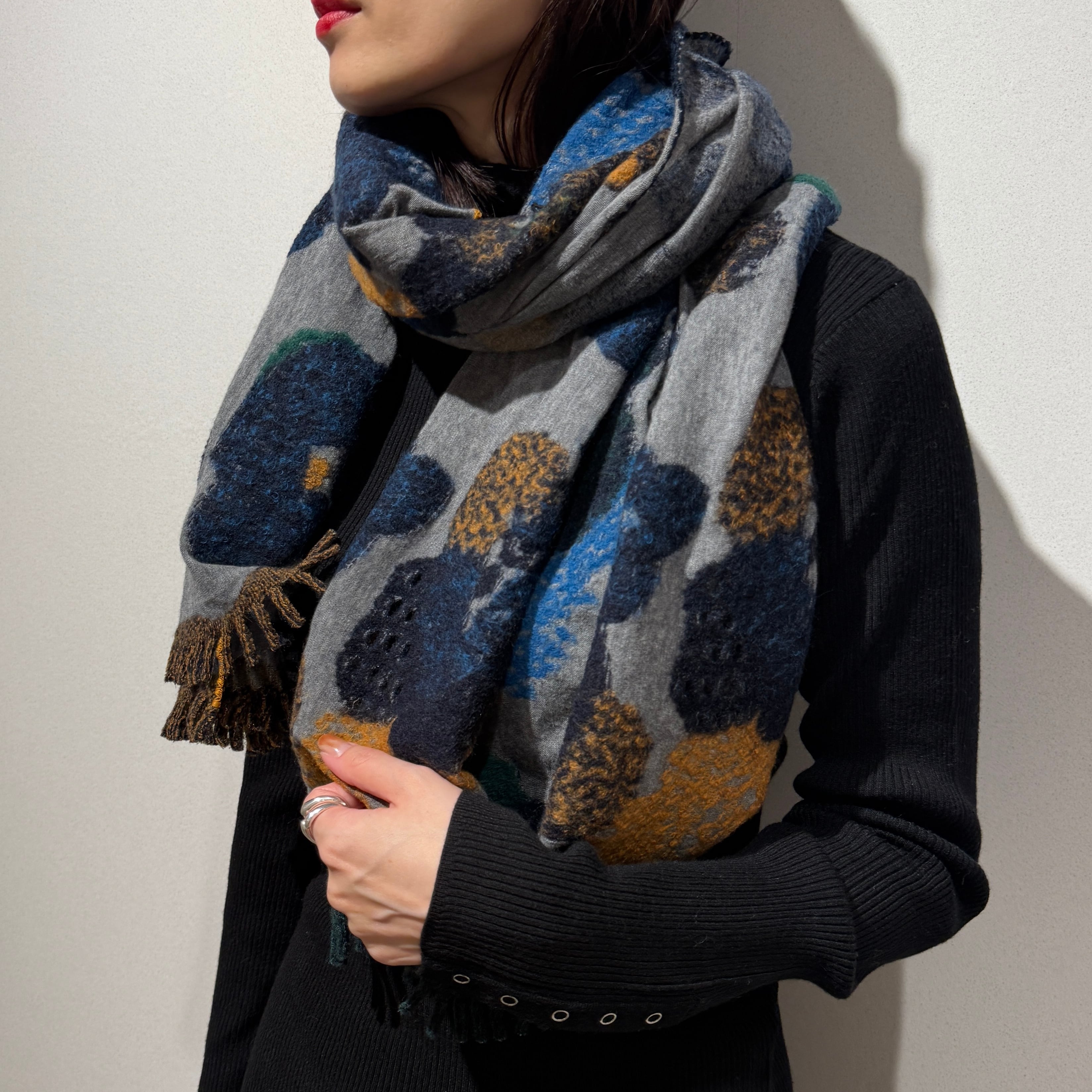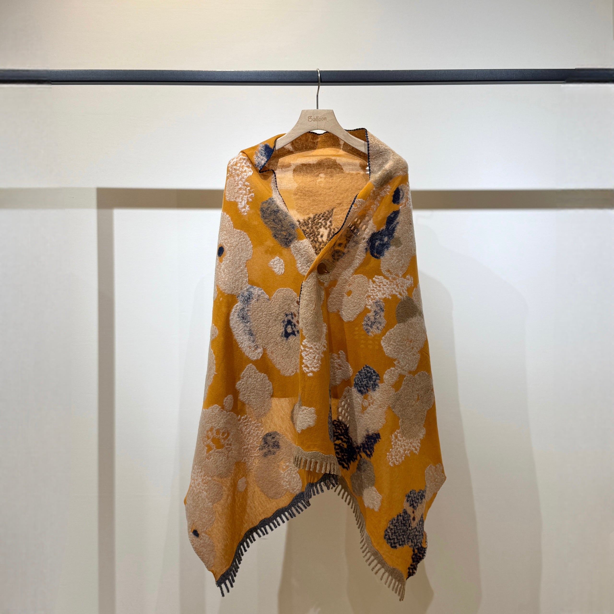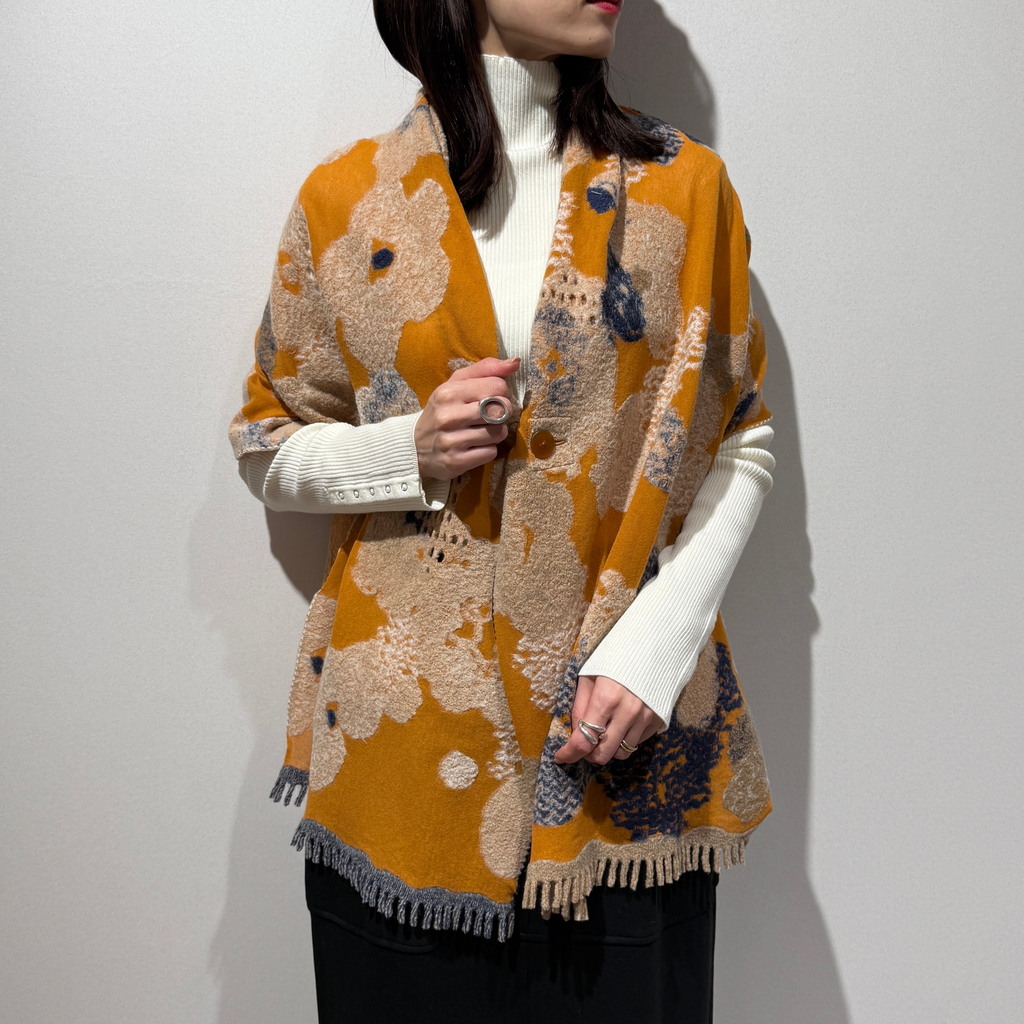 カーディガン代わりに羽織れる大判サイズのストール。