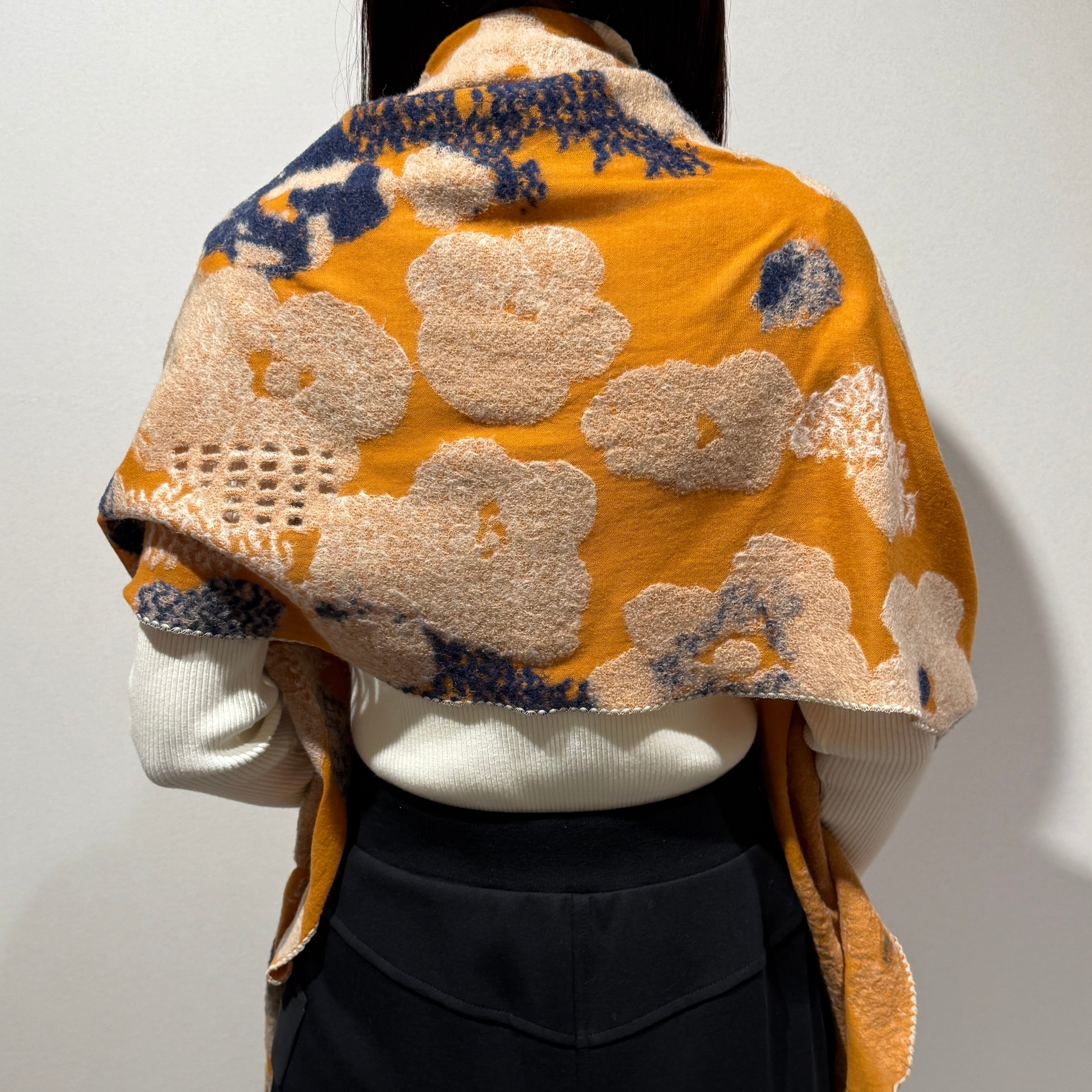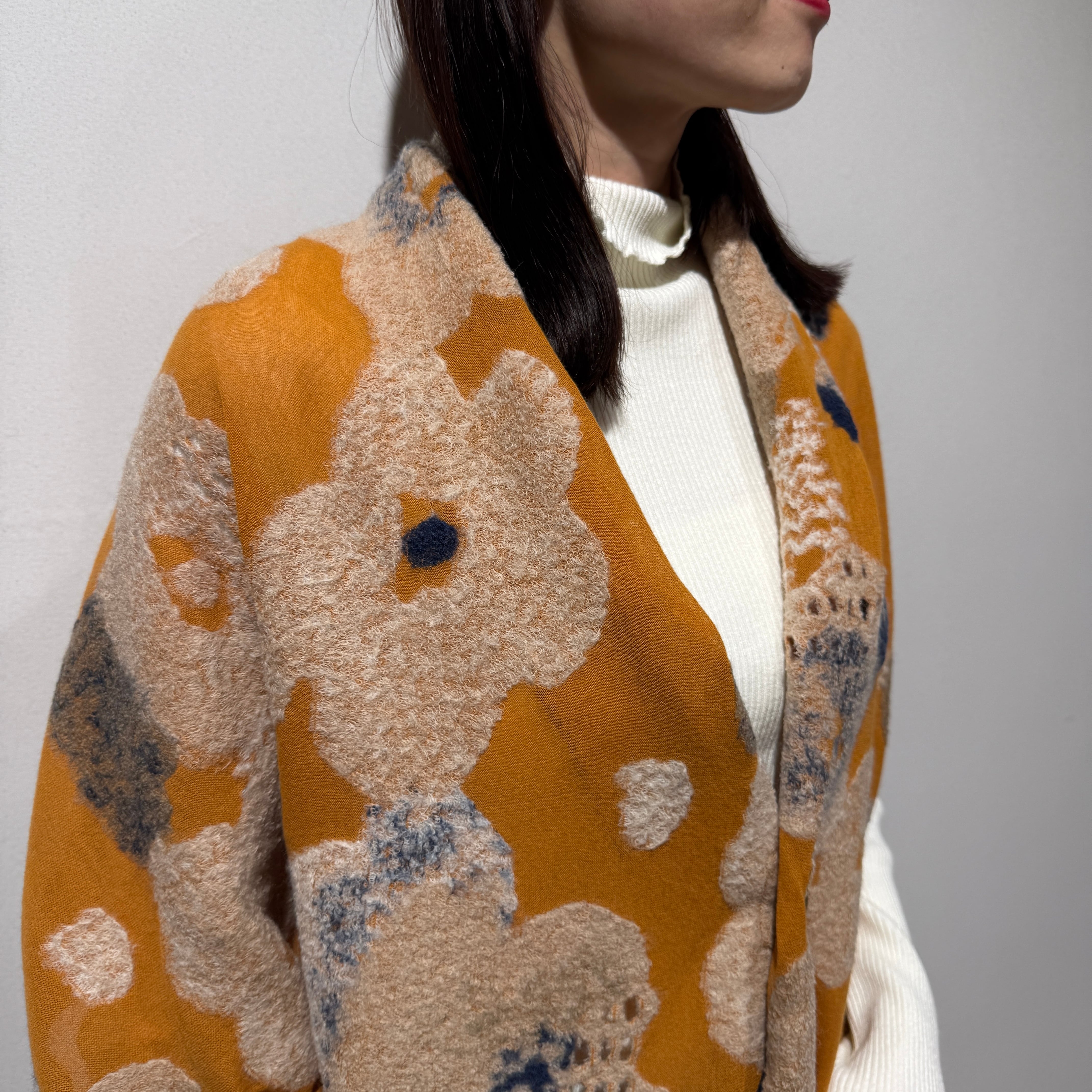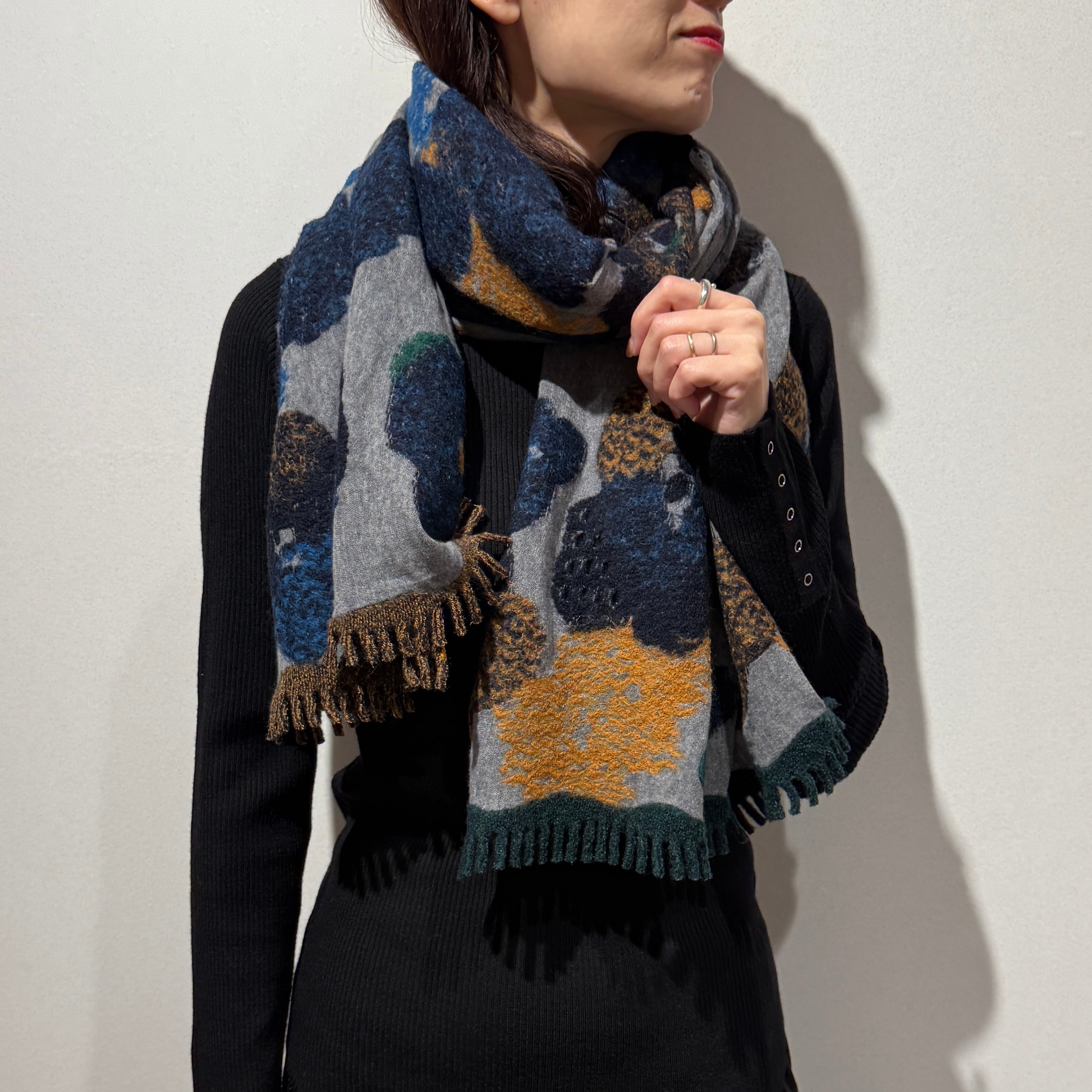 カーディガン代わりに羽織れる大判サイズのストール。