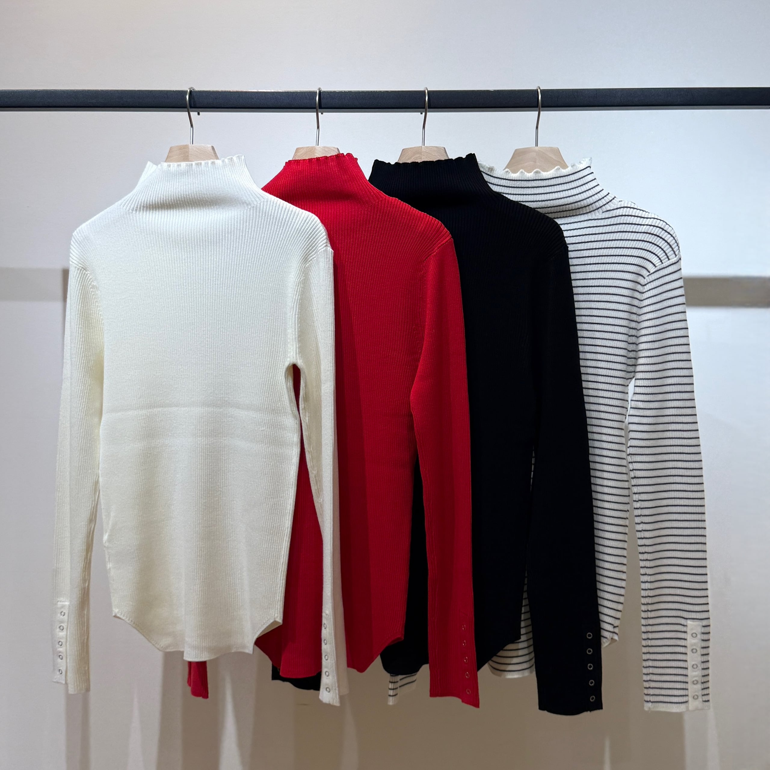 袖ボタンリブハイネックPO