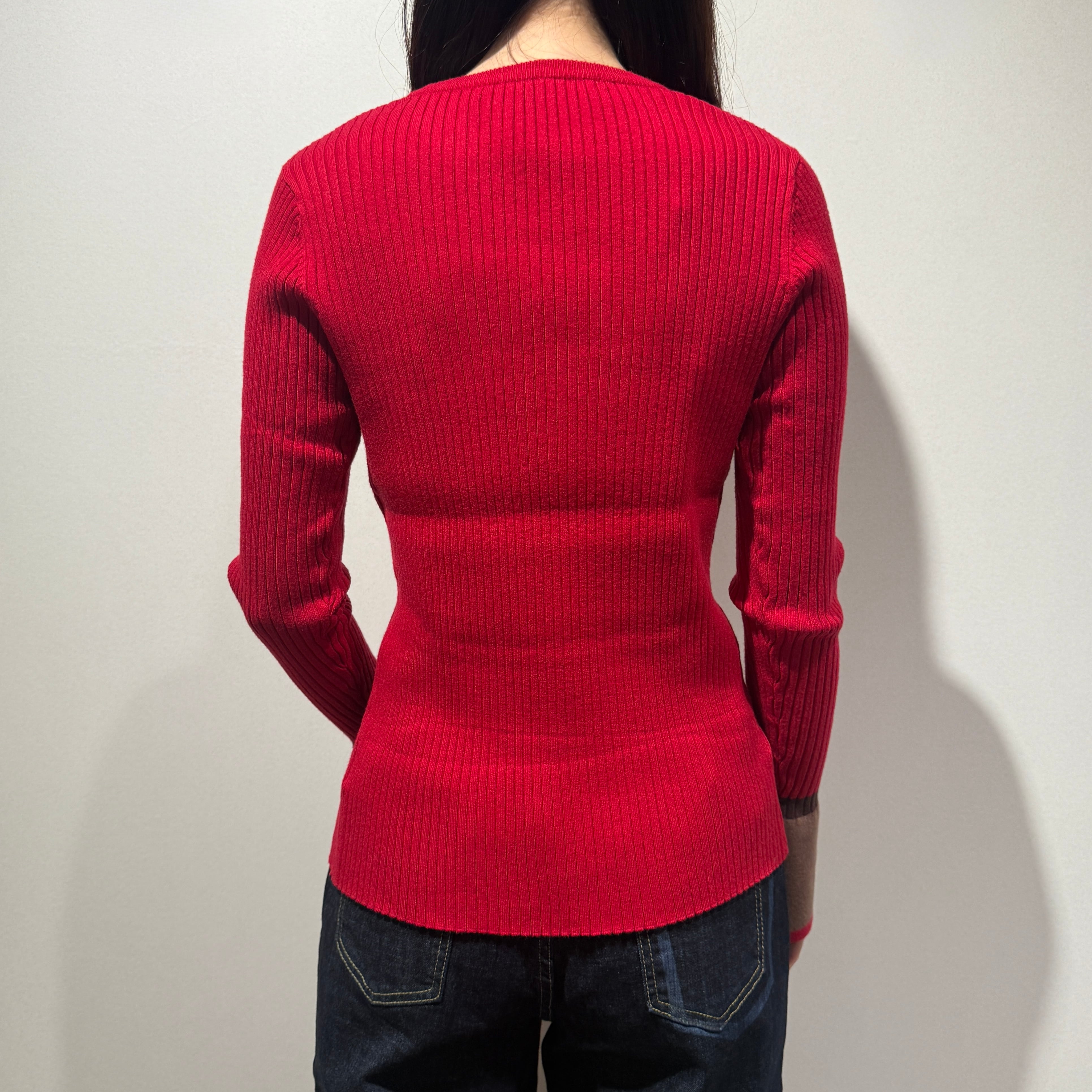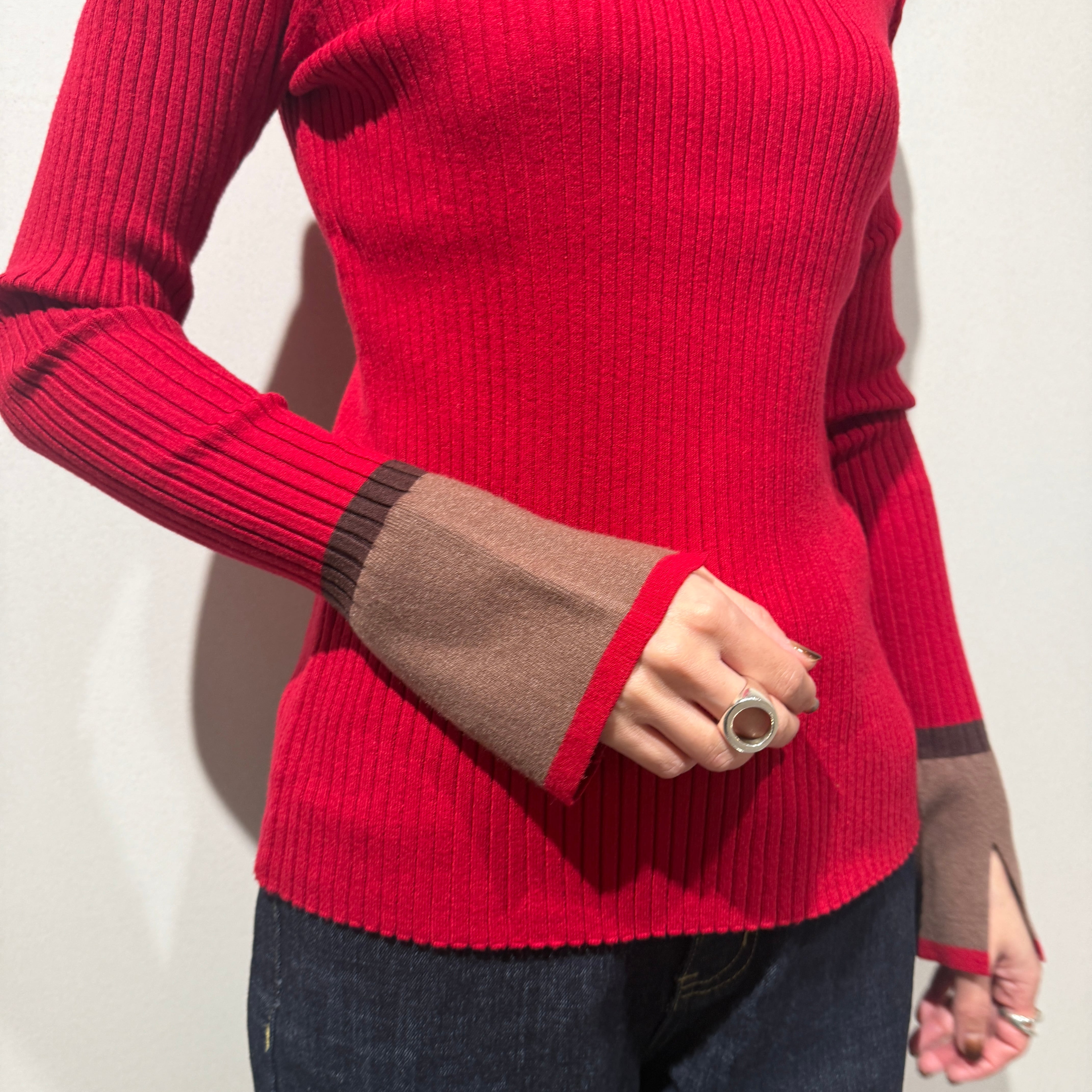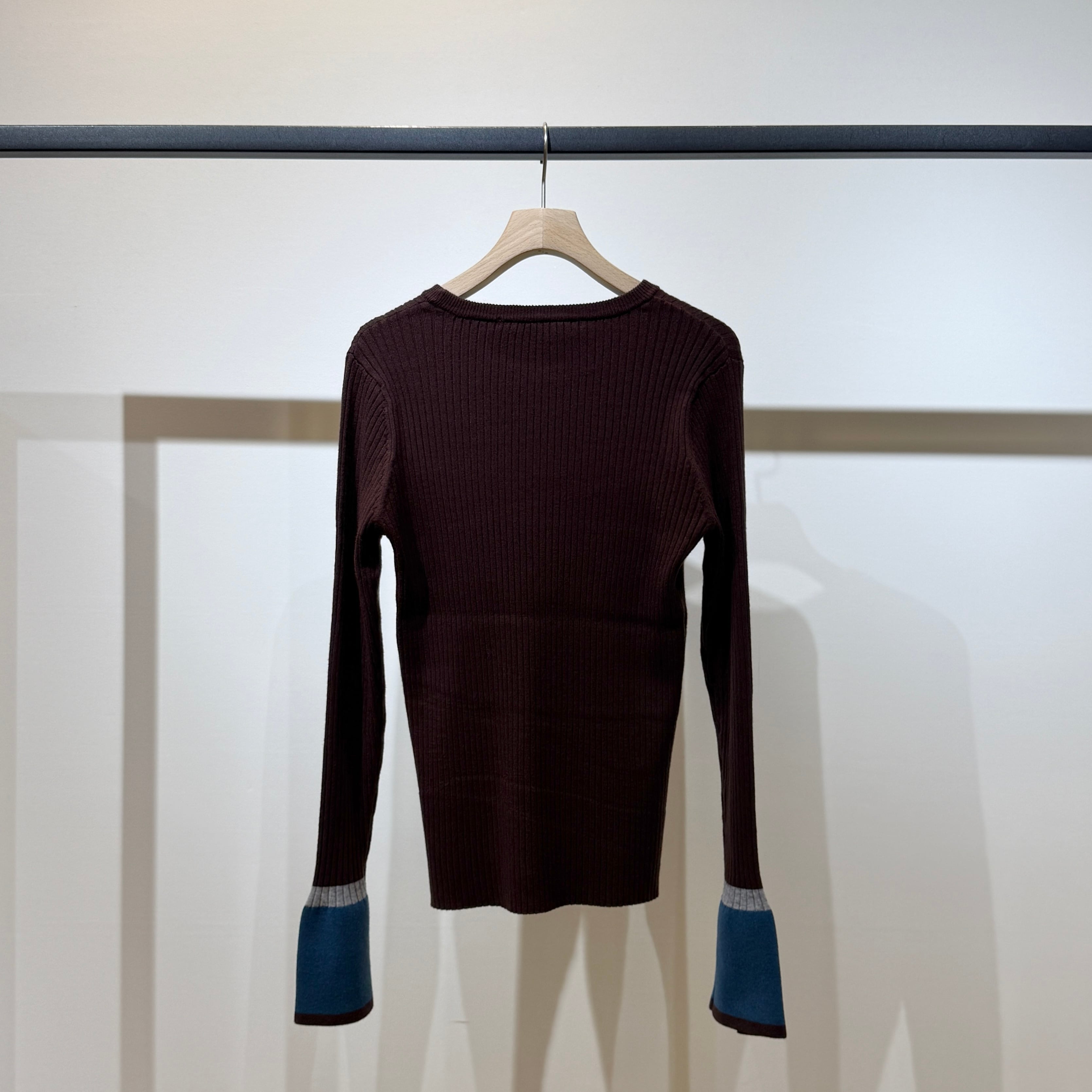 シンプルながらも袖口の配色が目を惹く、大人のためのリブニットプルオーバー。