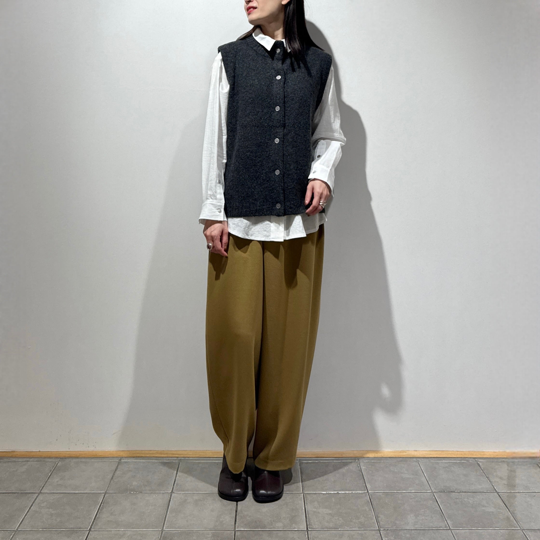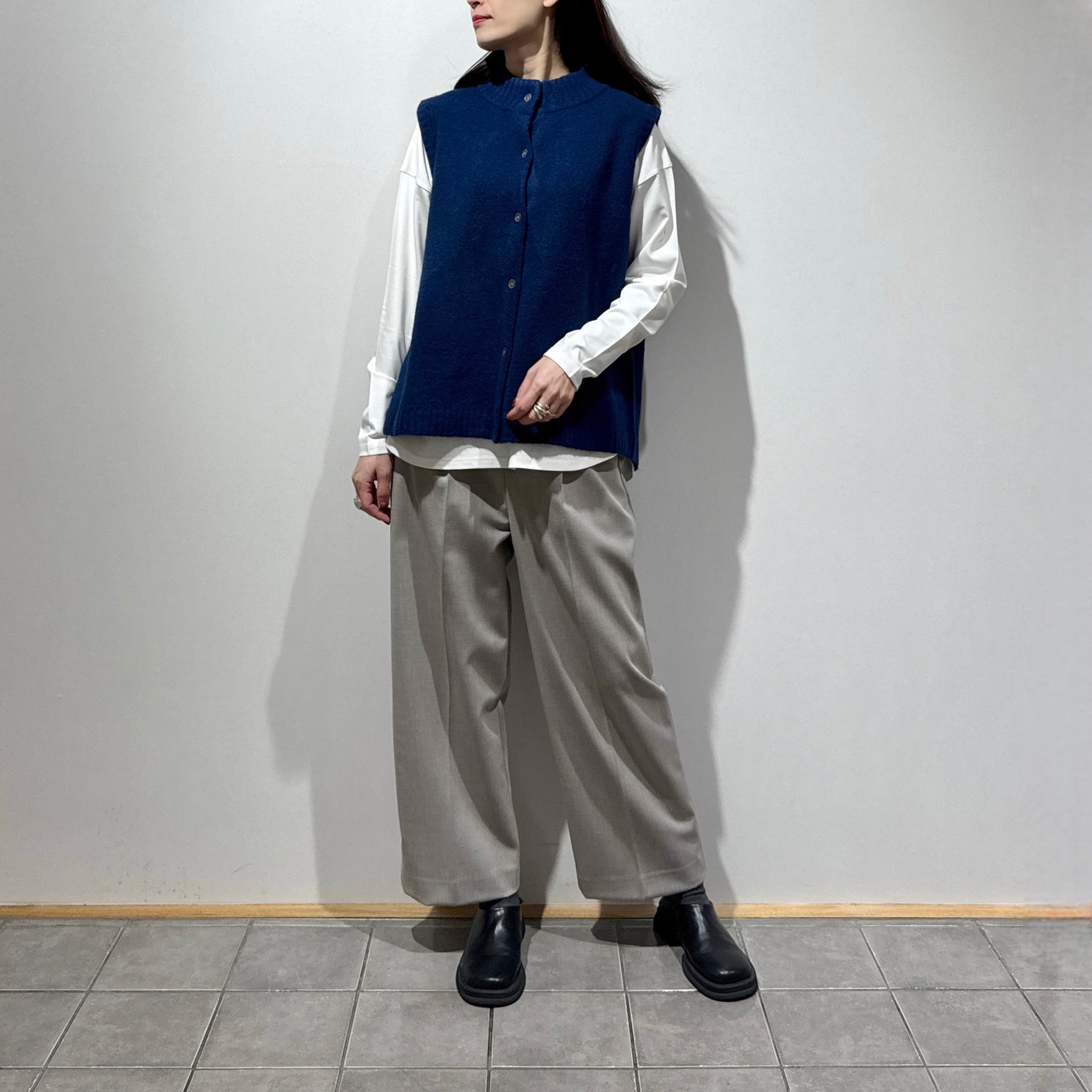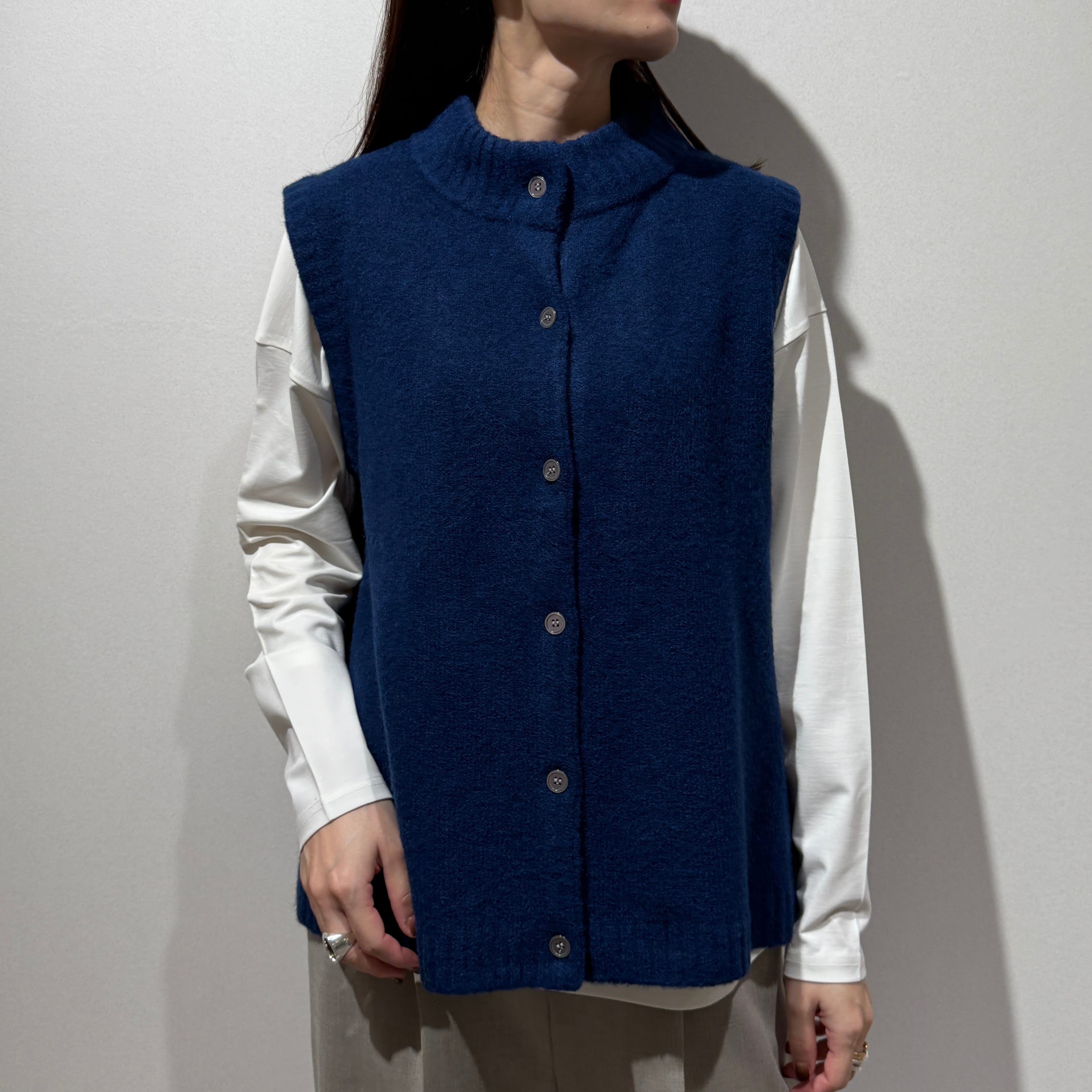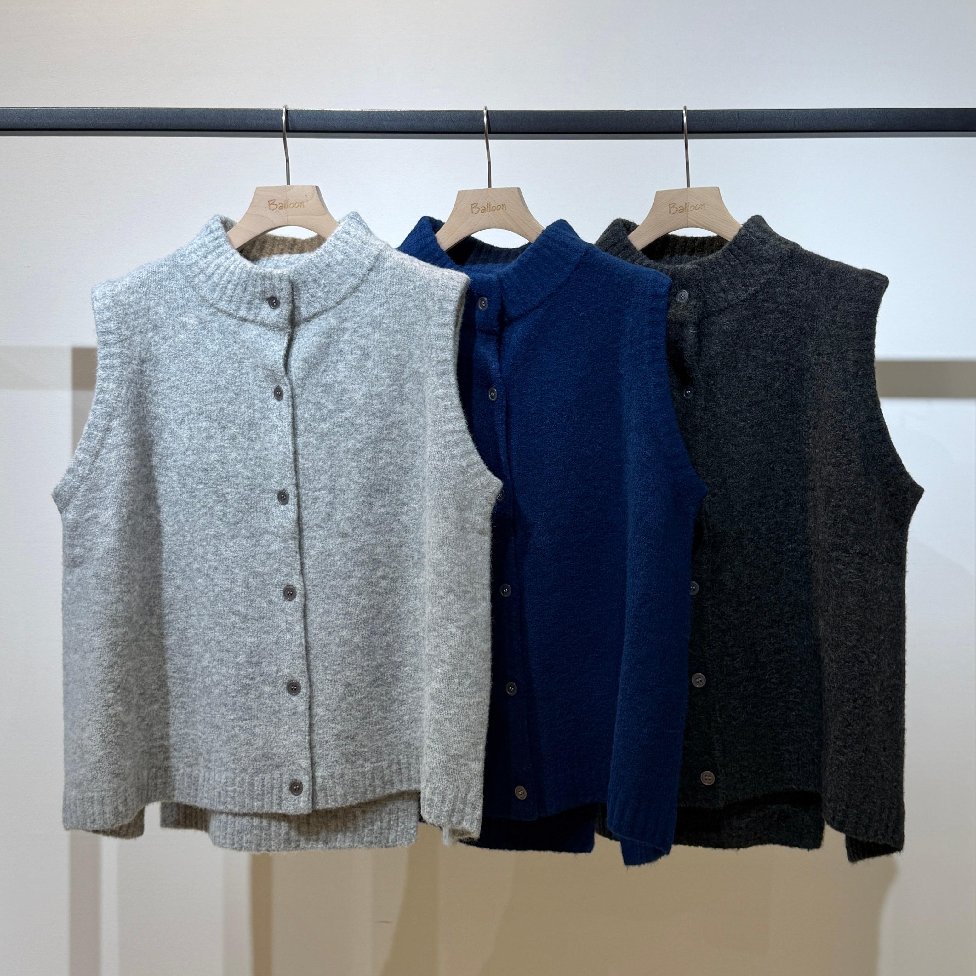 ふっくらモチモチとした肌ざわりが魅力のハイネックベスト。