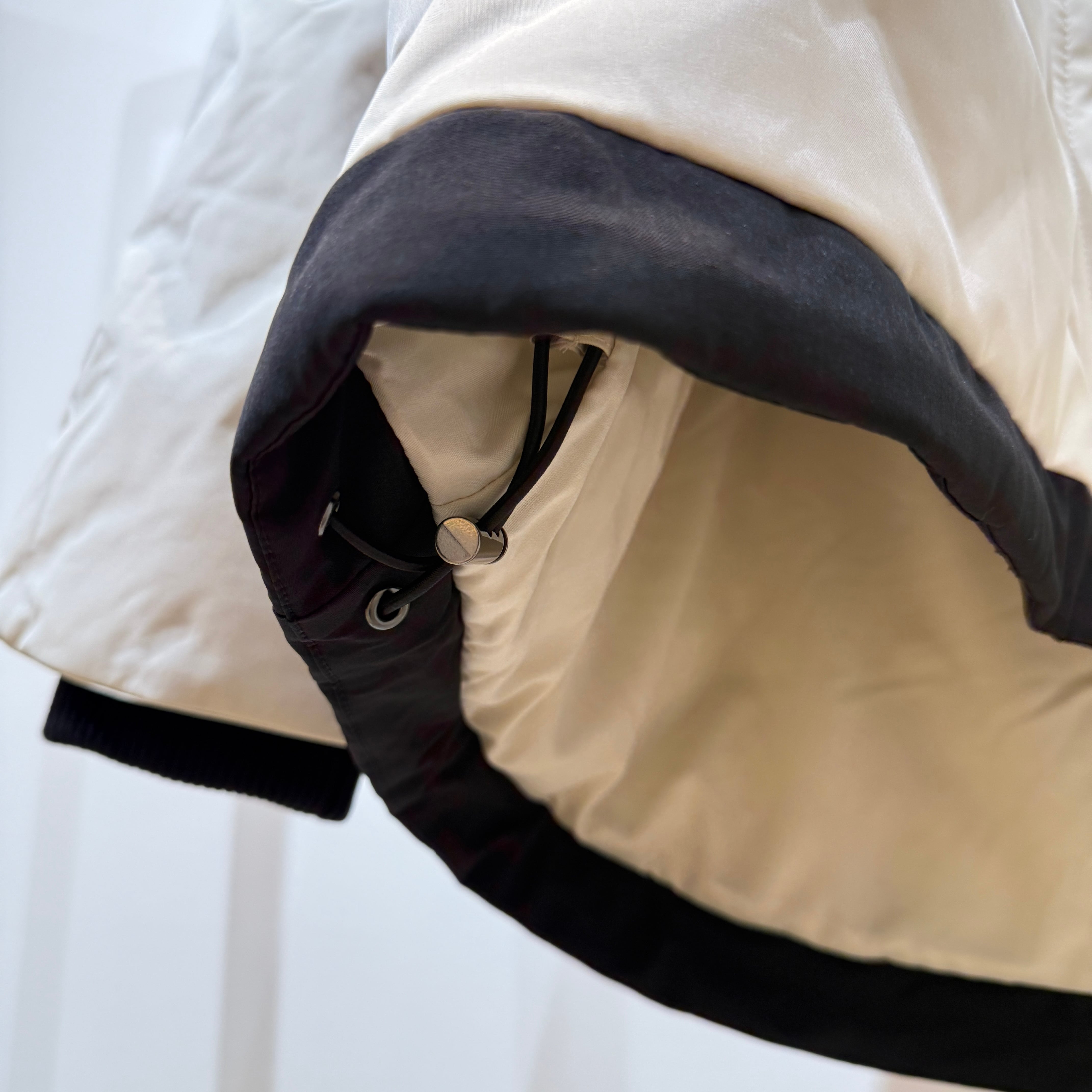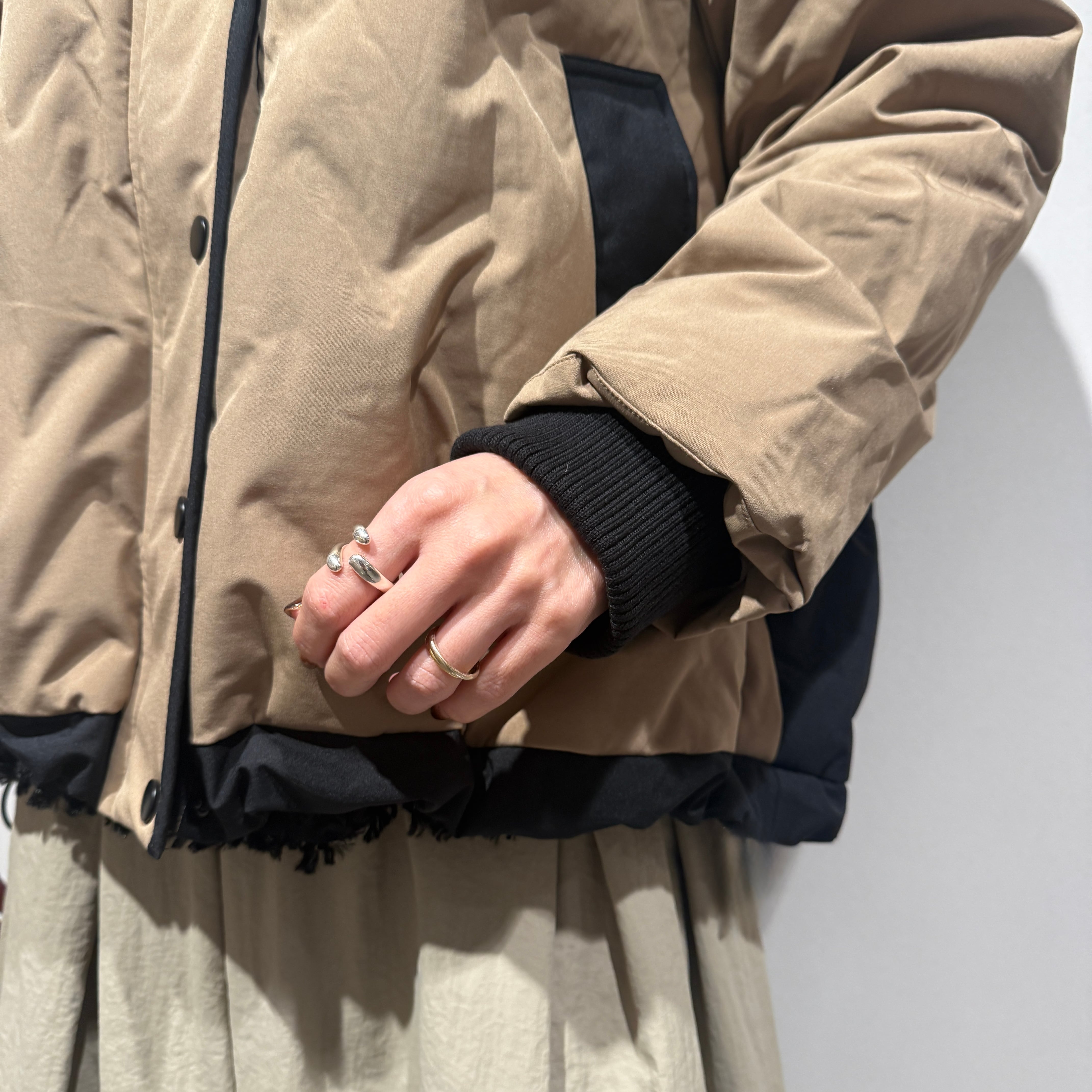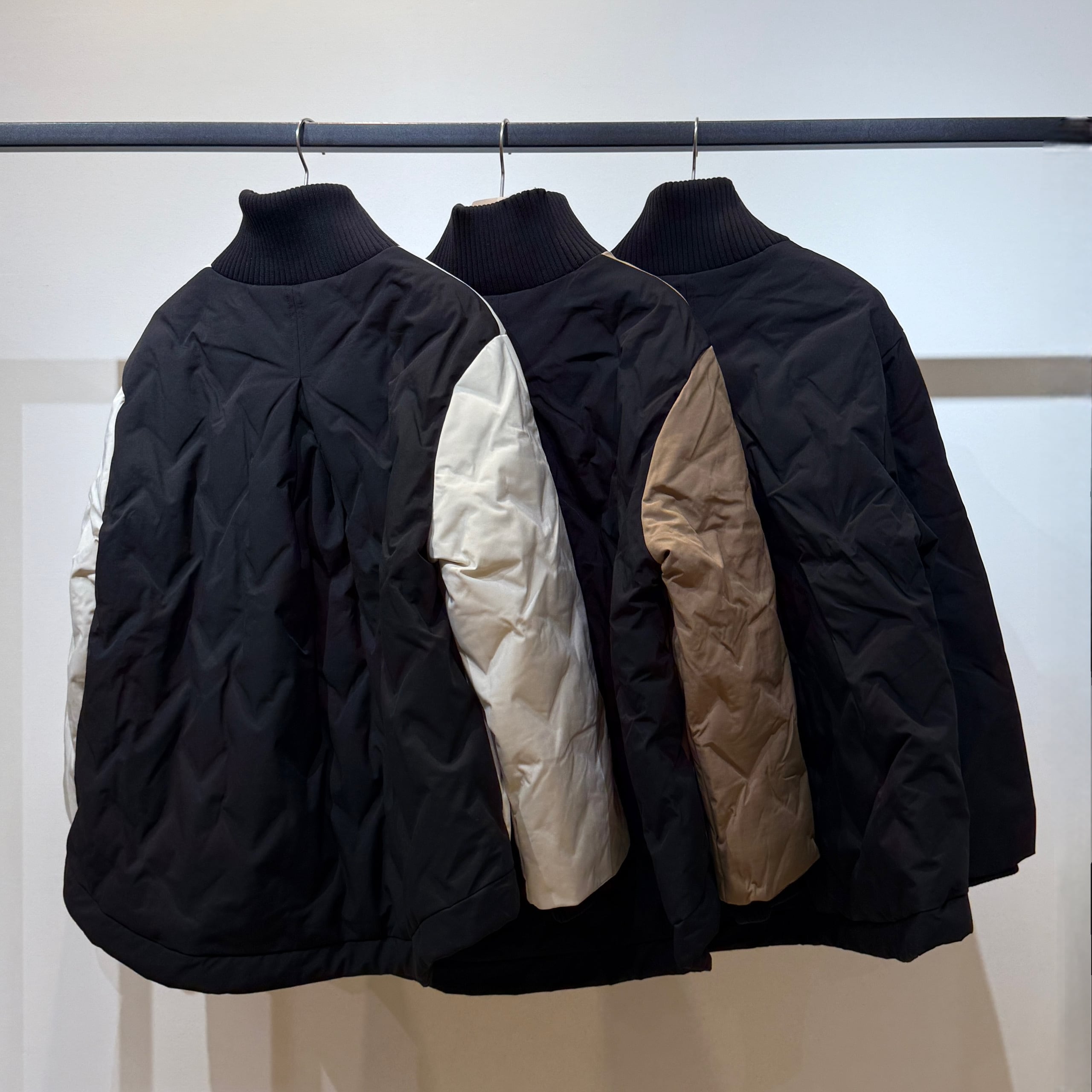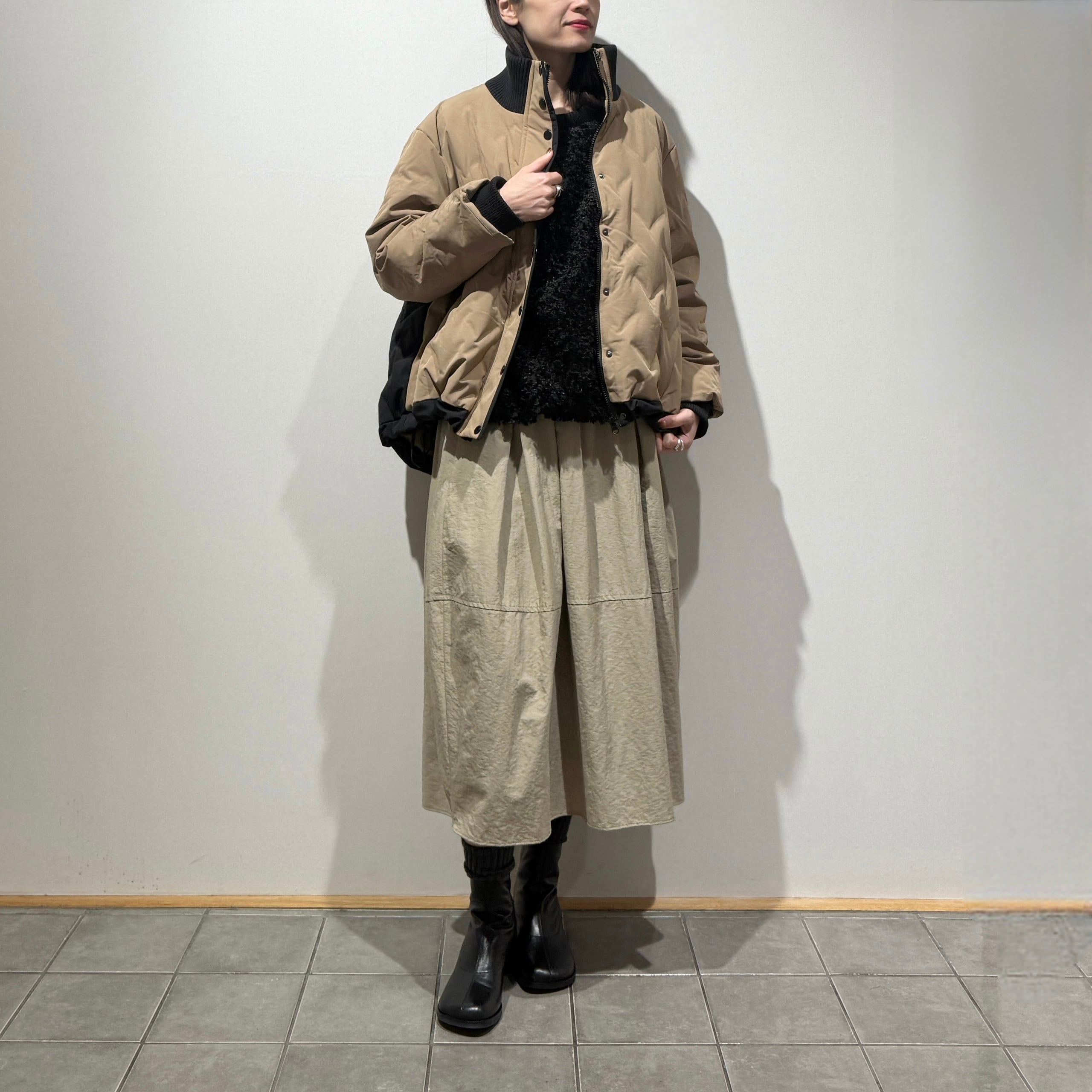 フレアシルエットですが、裾のドローコードを絞ってコクーンシルエットにも変形可能です。