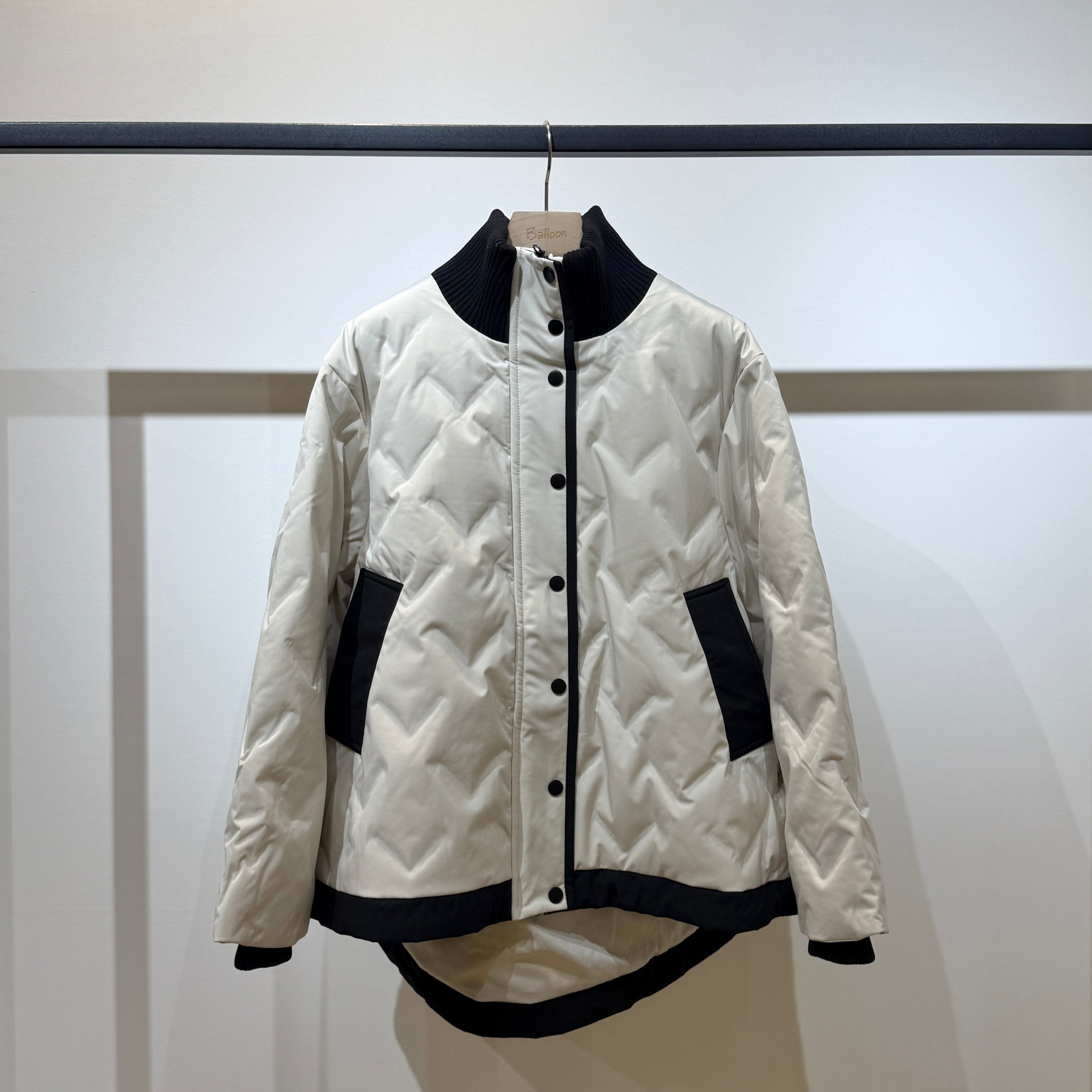 ダウン混合率90%と軽くて暖かく、首元とお袖にはリブが使用されているので防寒性も抜群です。