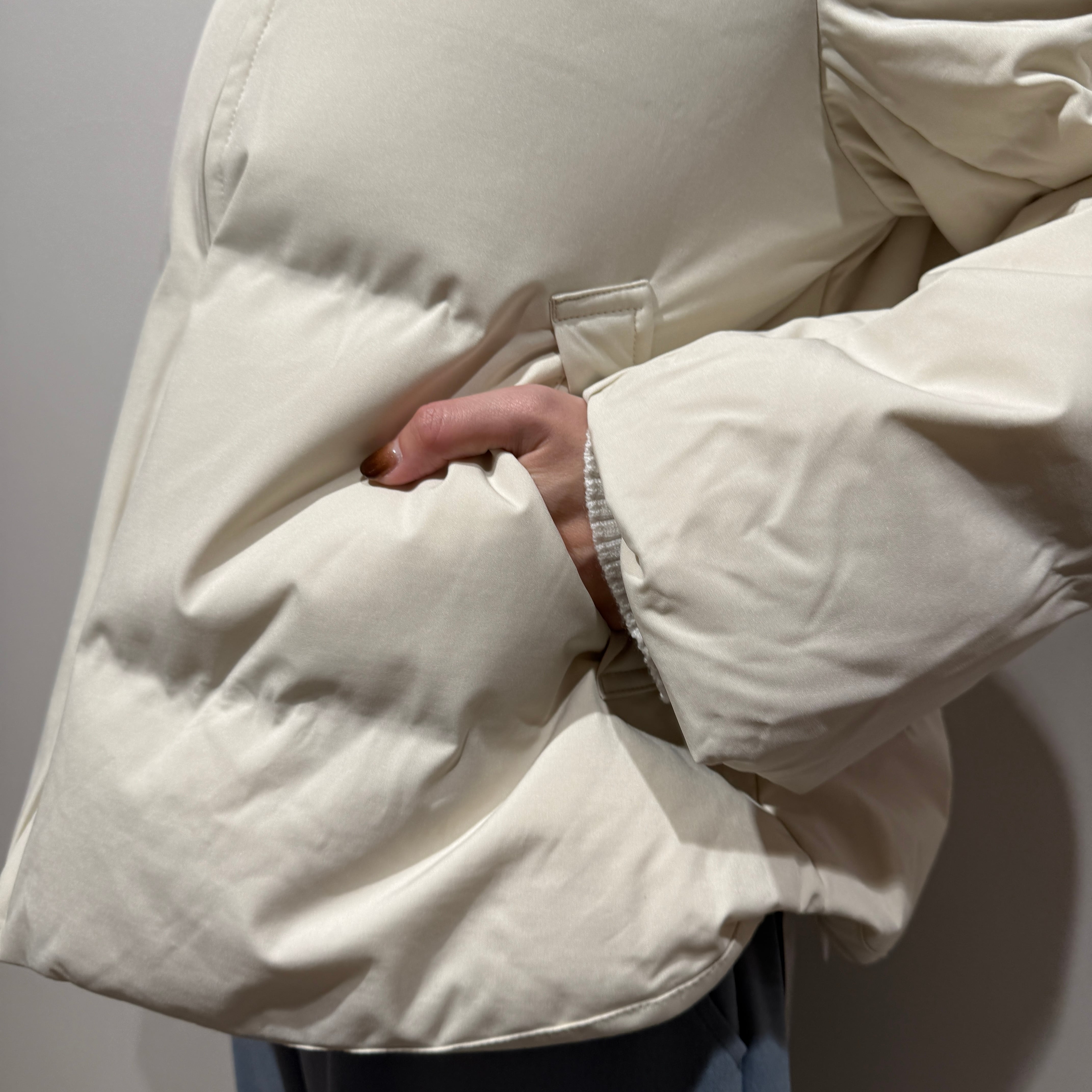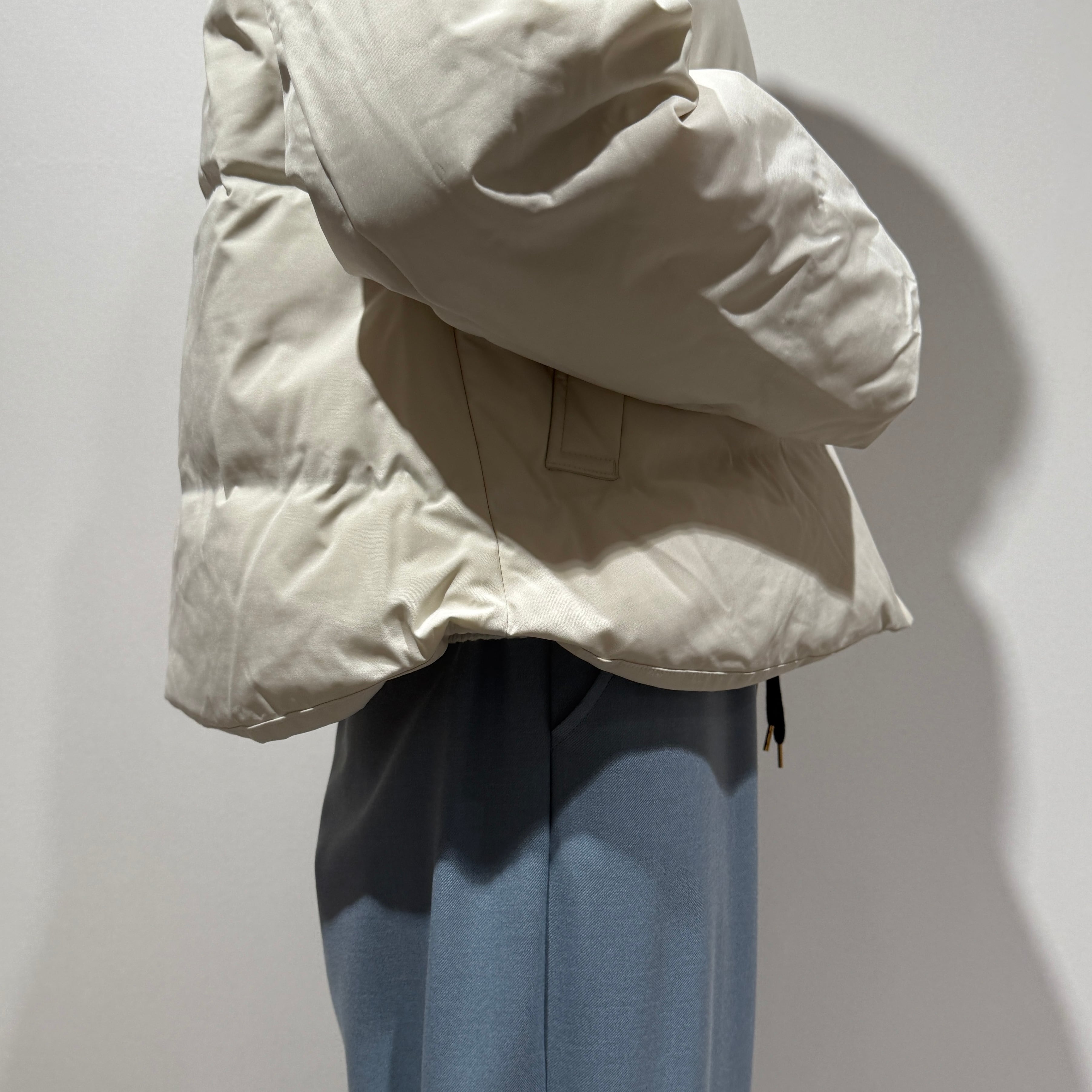 シームレス仕様でボリュームがありつつもスッキリ見えるシルエットに。ショート丈なのでバランスが取りやすく、デイリーに使いやすいデザイン。
