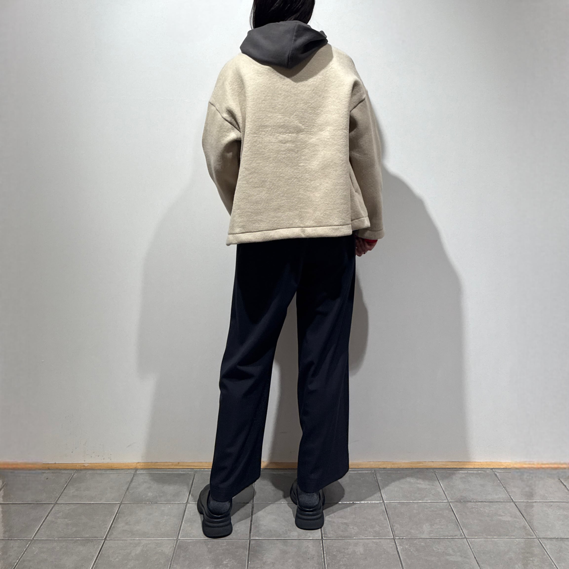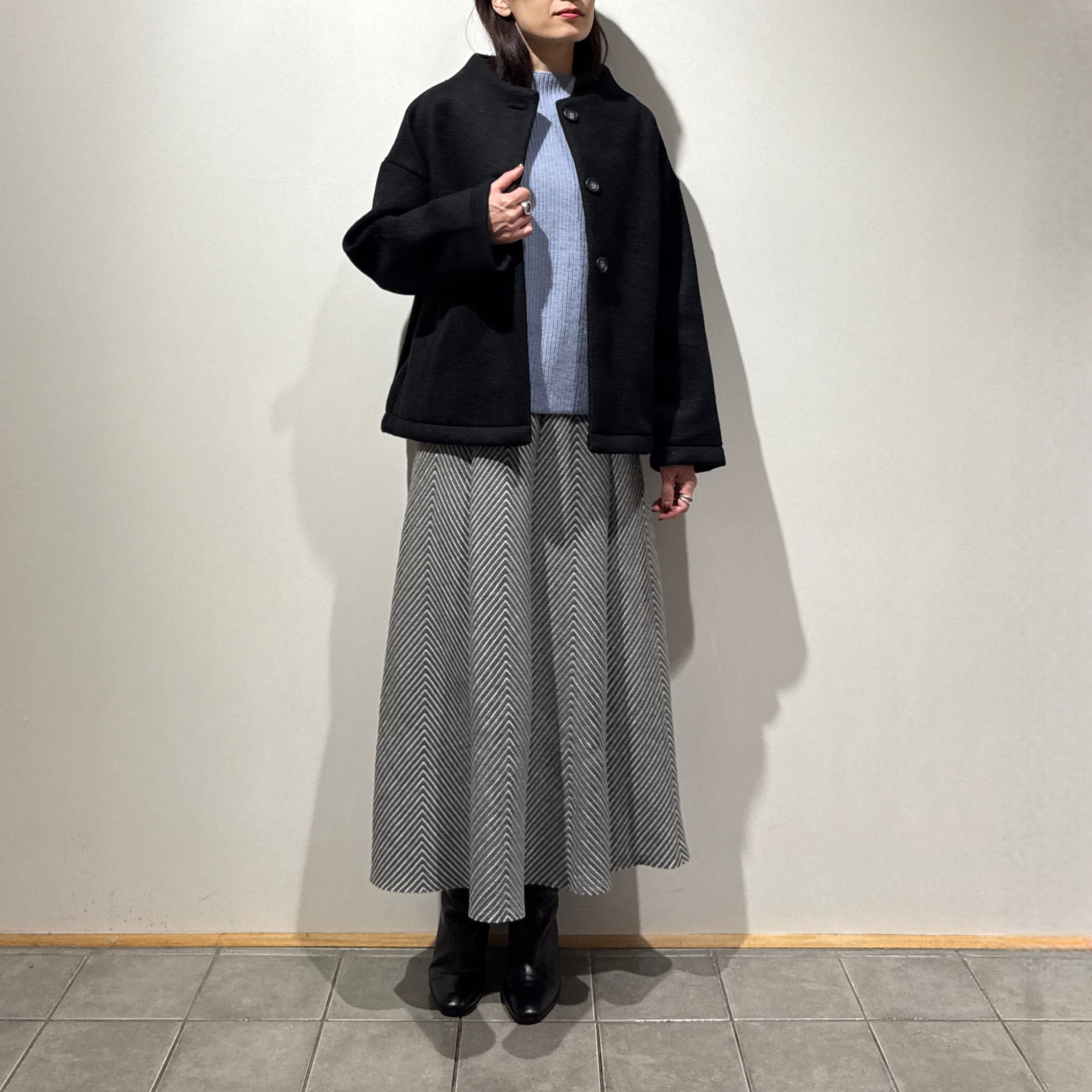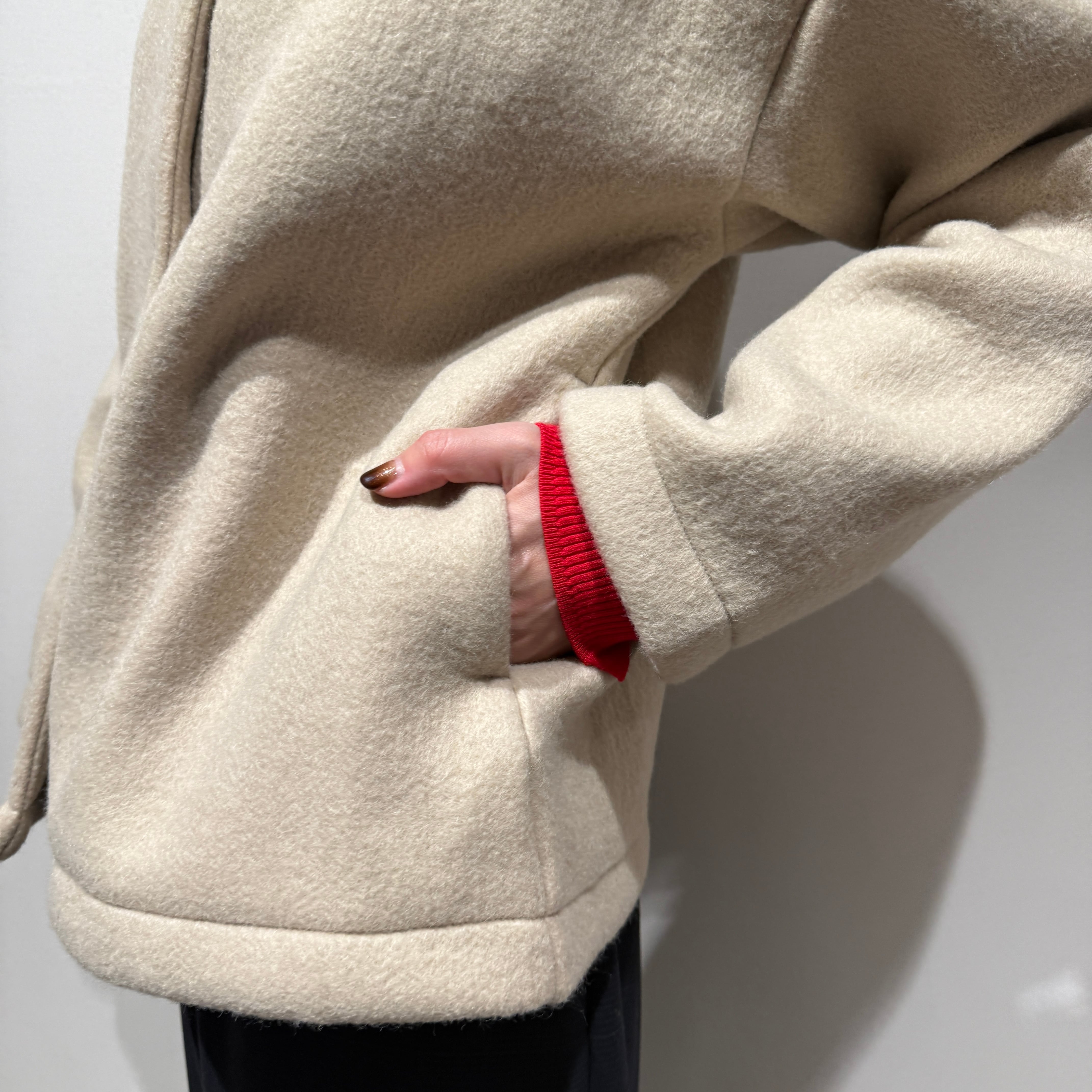 ジャージー素材ですが、メルトンのようなしっかりとした厚みがあり、布帛のような上品な見た目なのでジャケットにピッタリです。