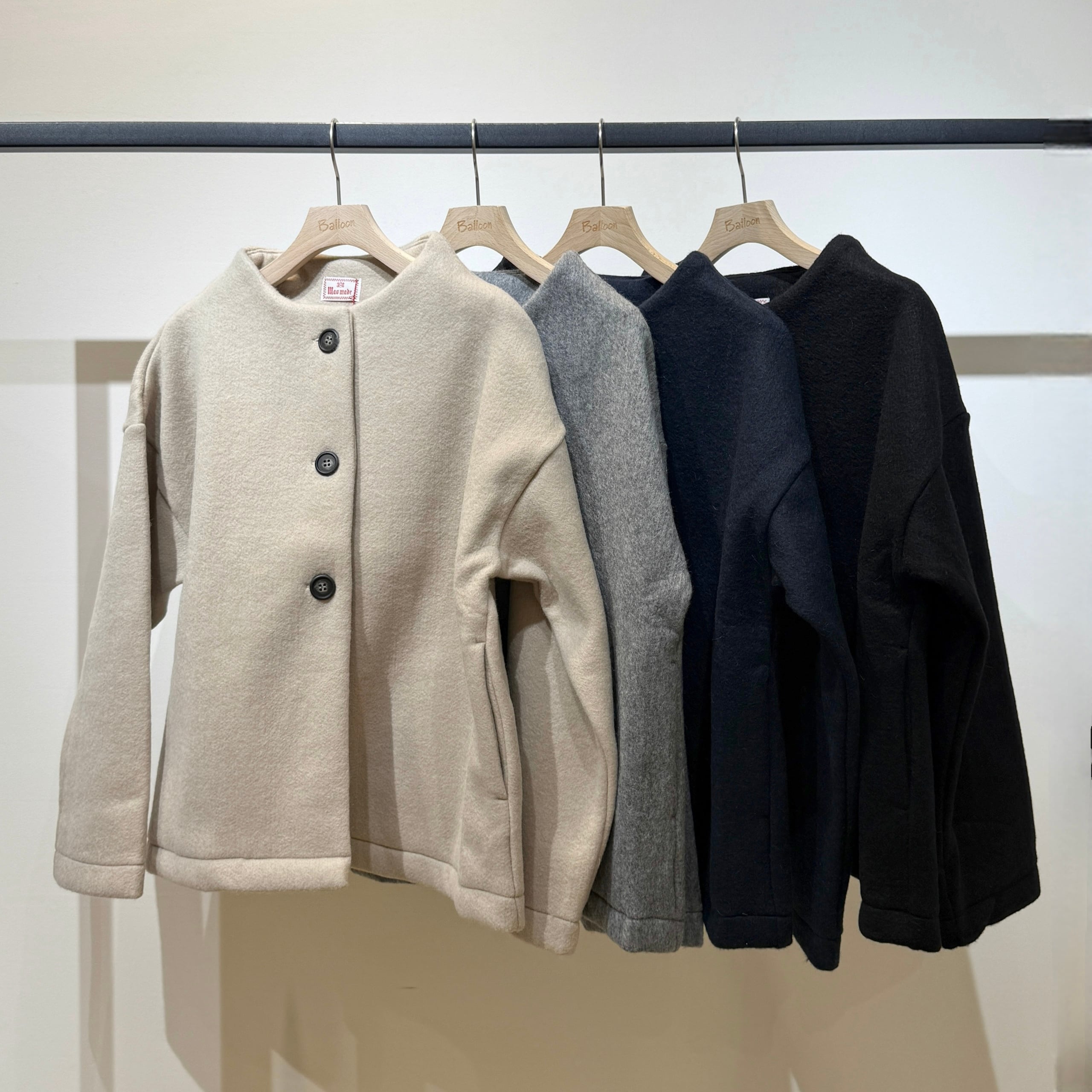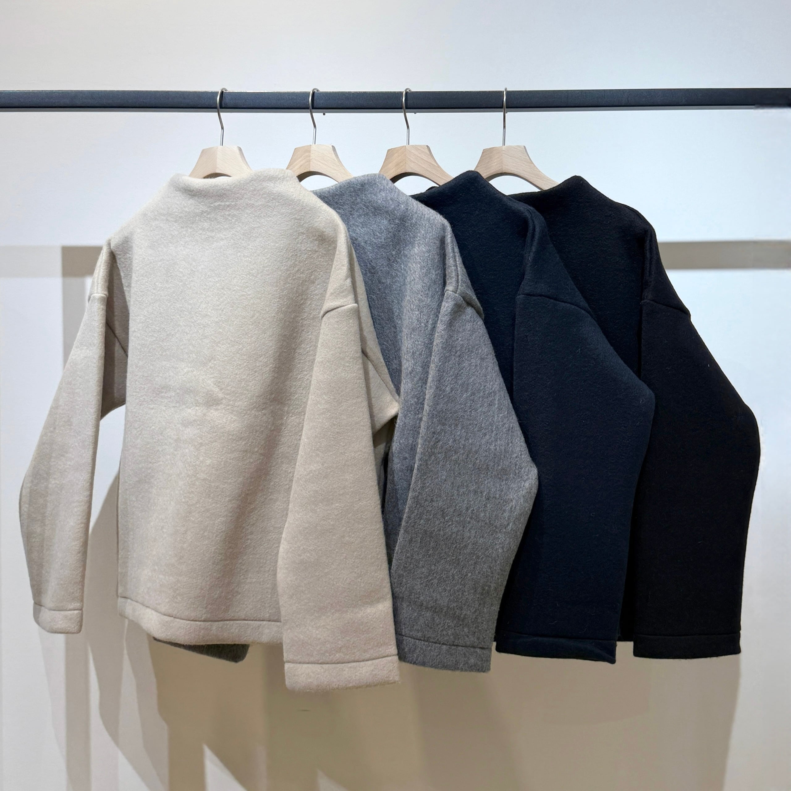 やわらかな肌触り、軽い着心地、抜群の暖かさを兼ね備えたMADE IN ITALYのウール&モへヤ素材を使用したモックネックシャケット。