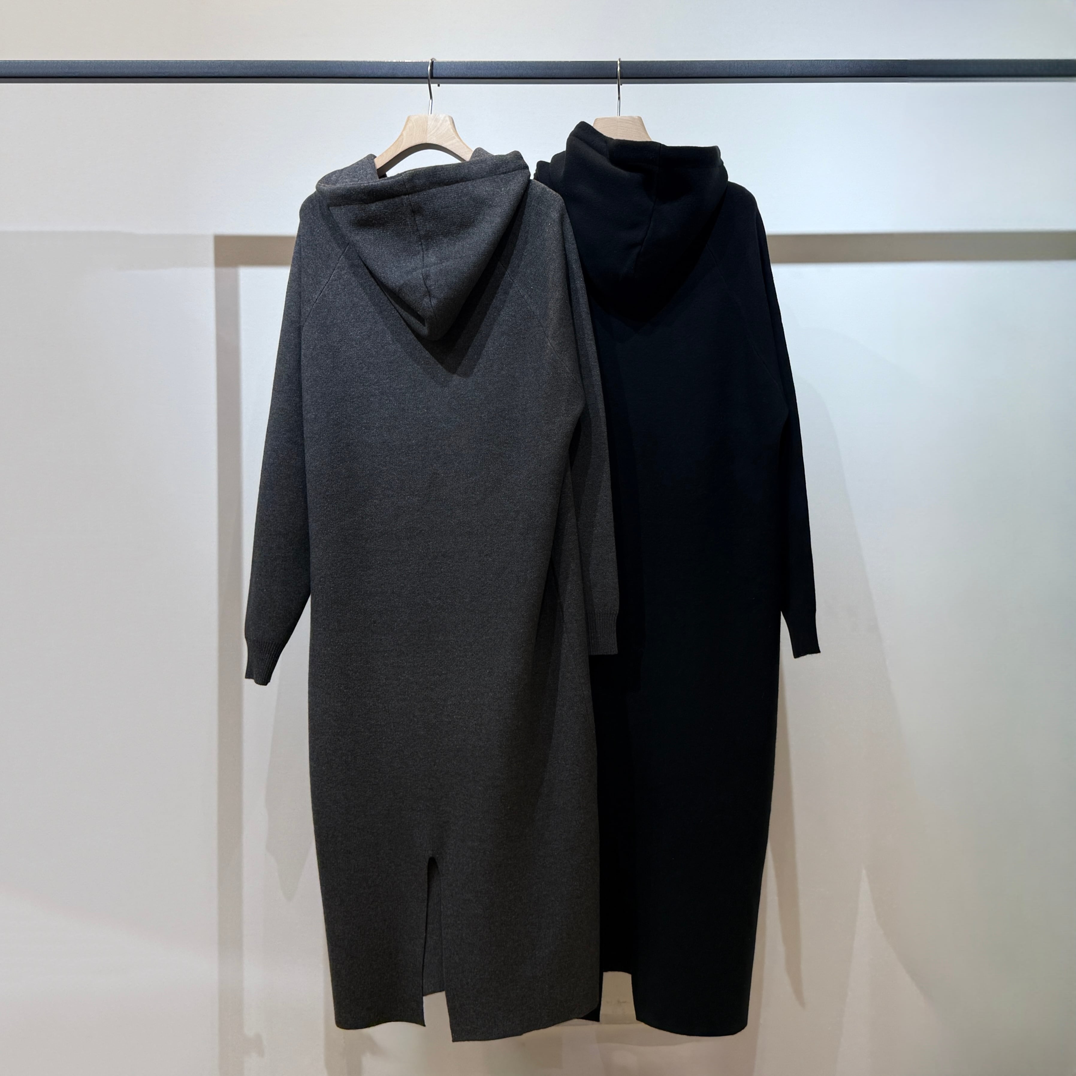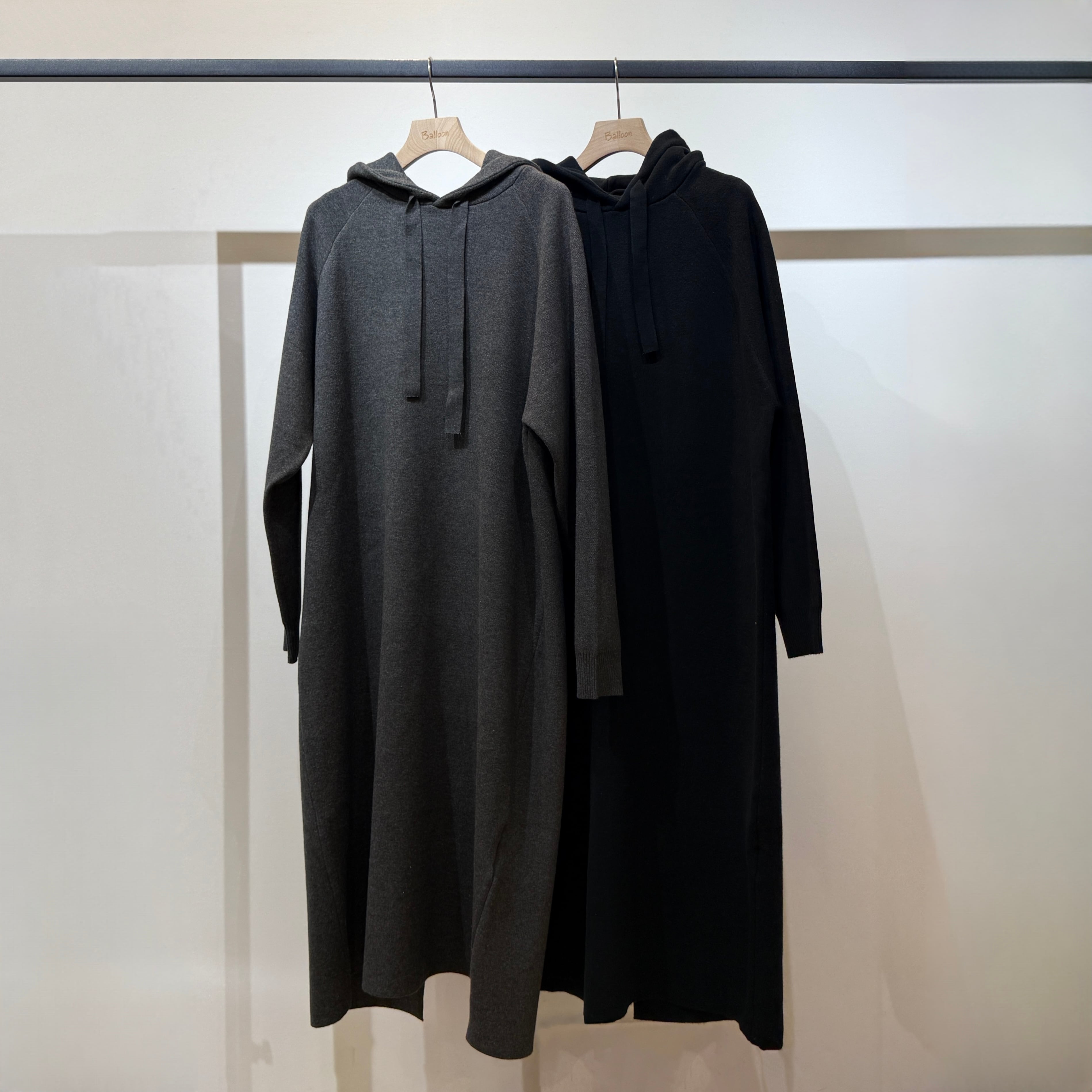一枚でさらりと着られる、ゆったりシルエットのフーディニットワンピース。