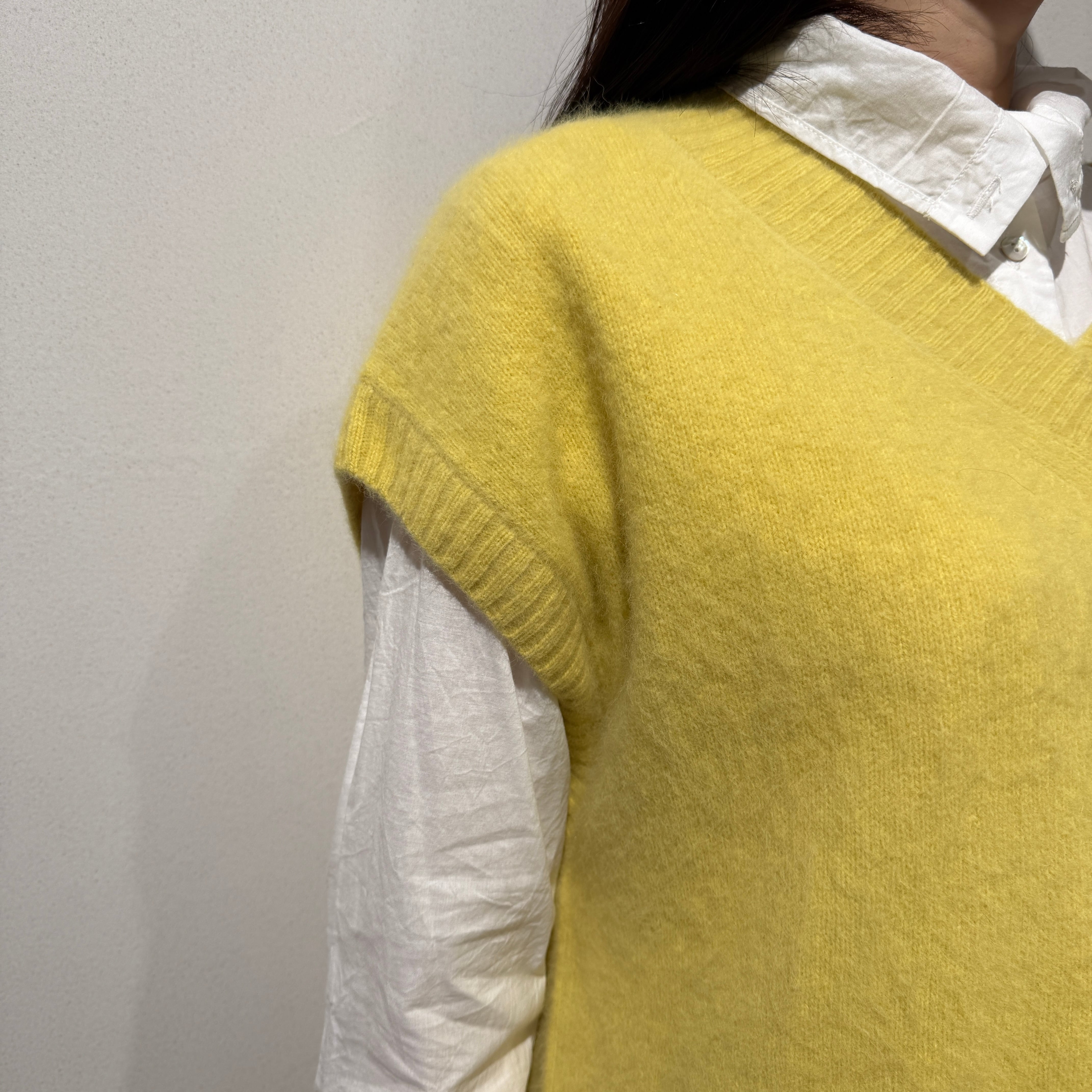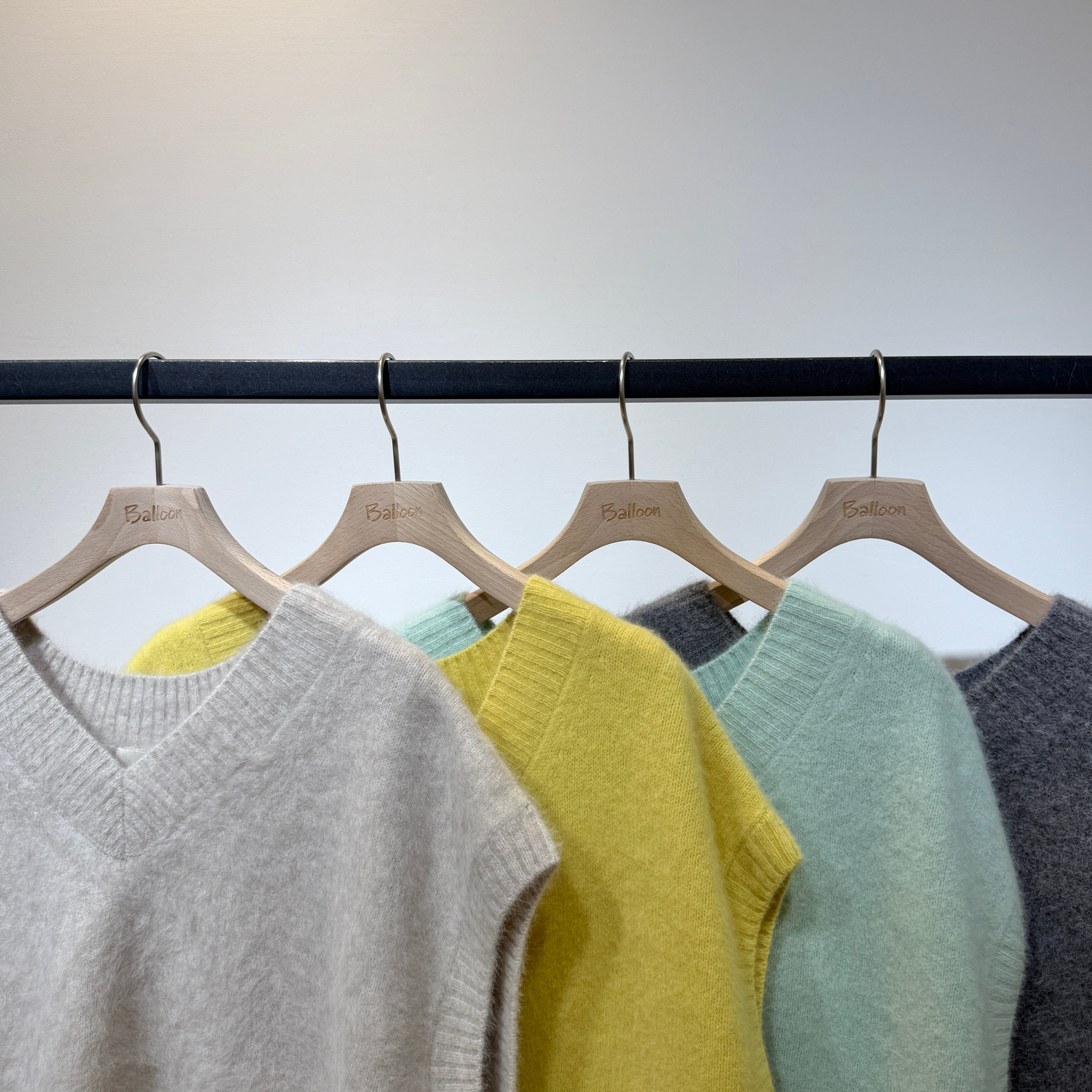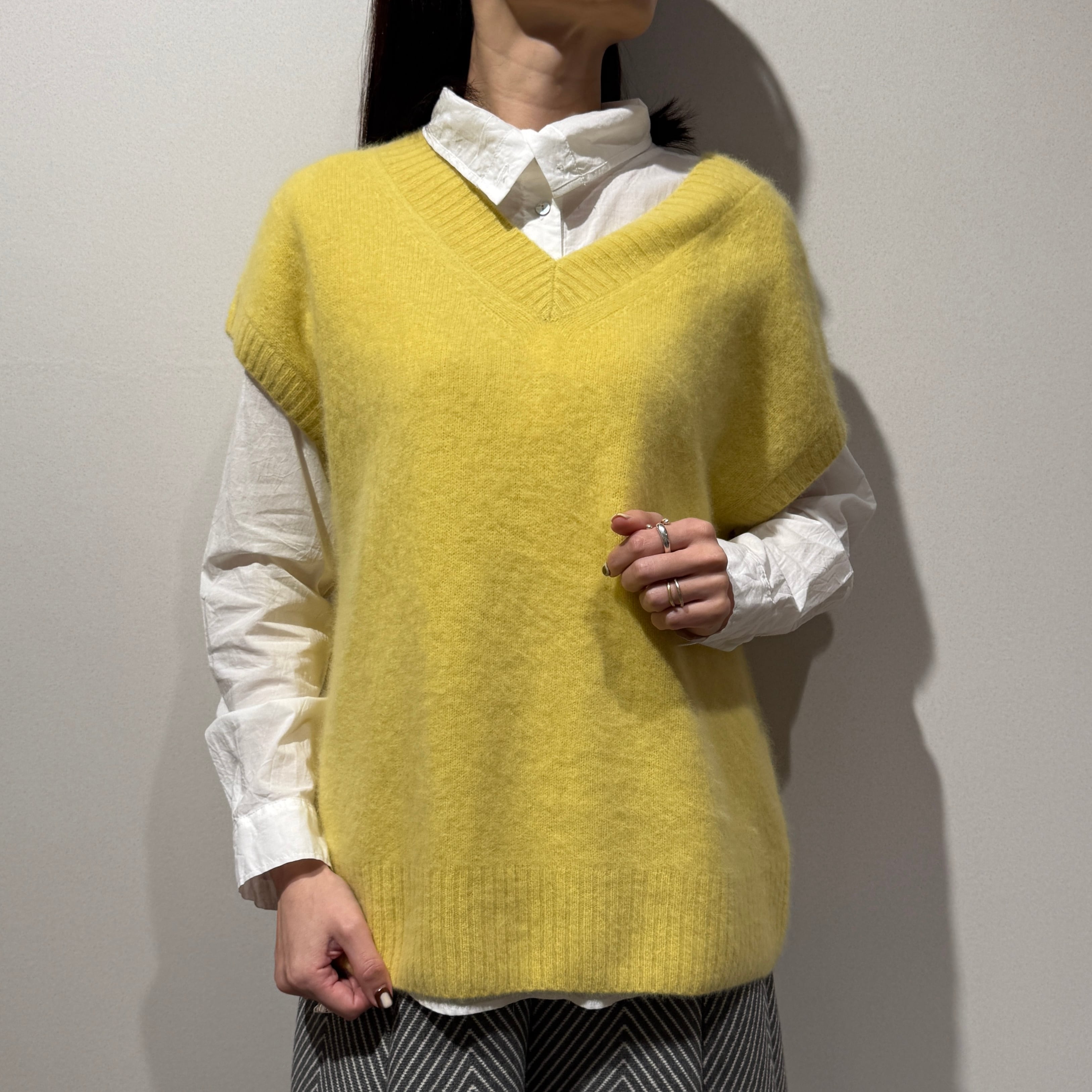 ふんわりと包み込むような、ノースリーブのVネックニットベスト。