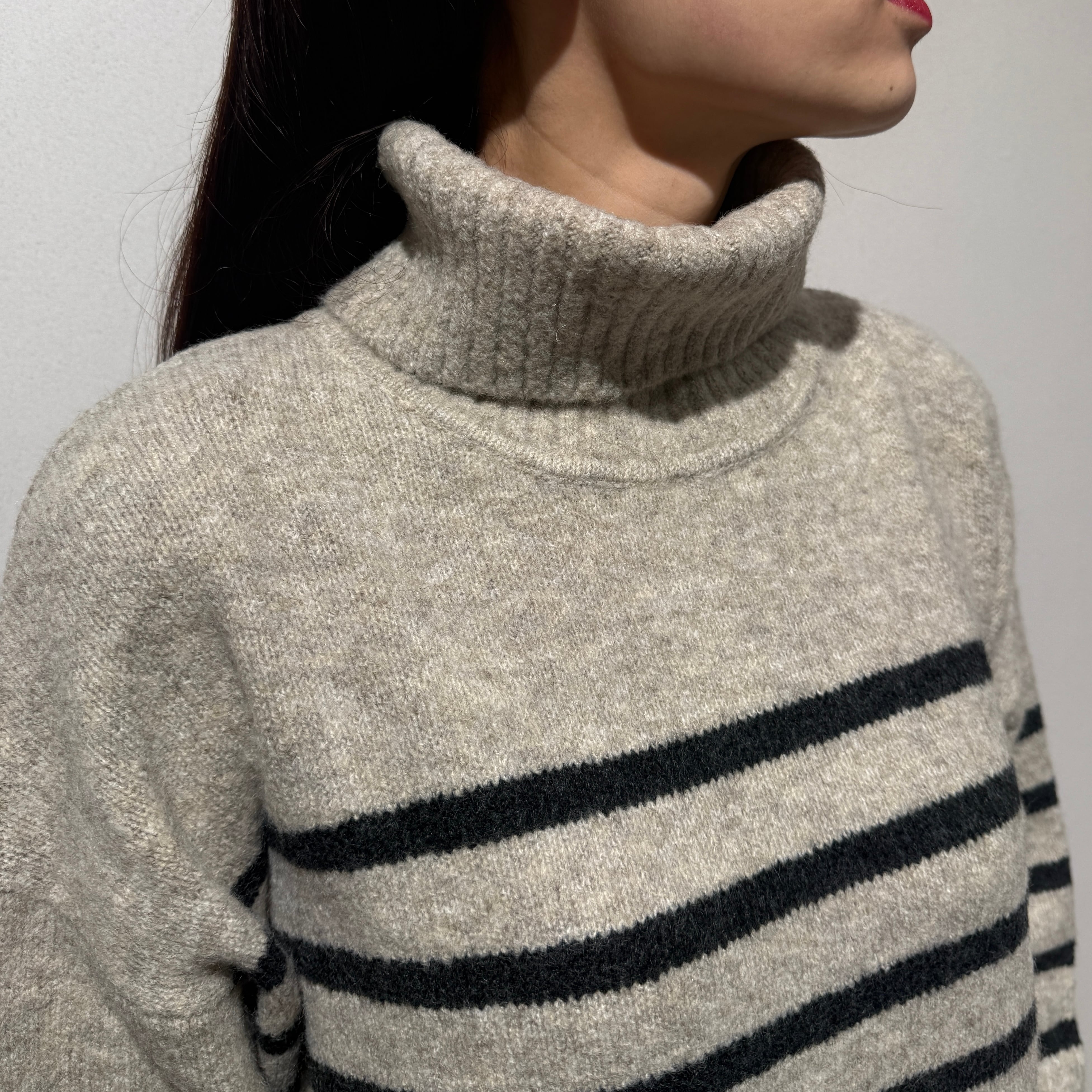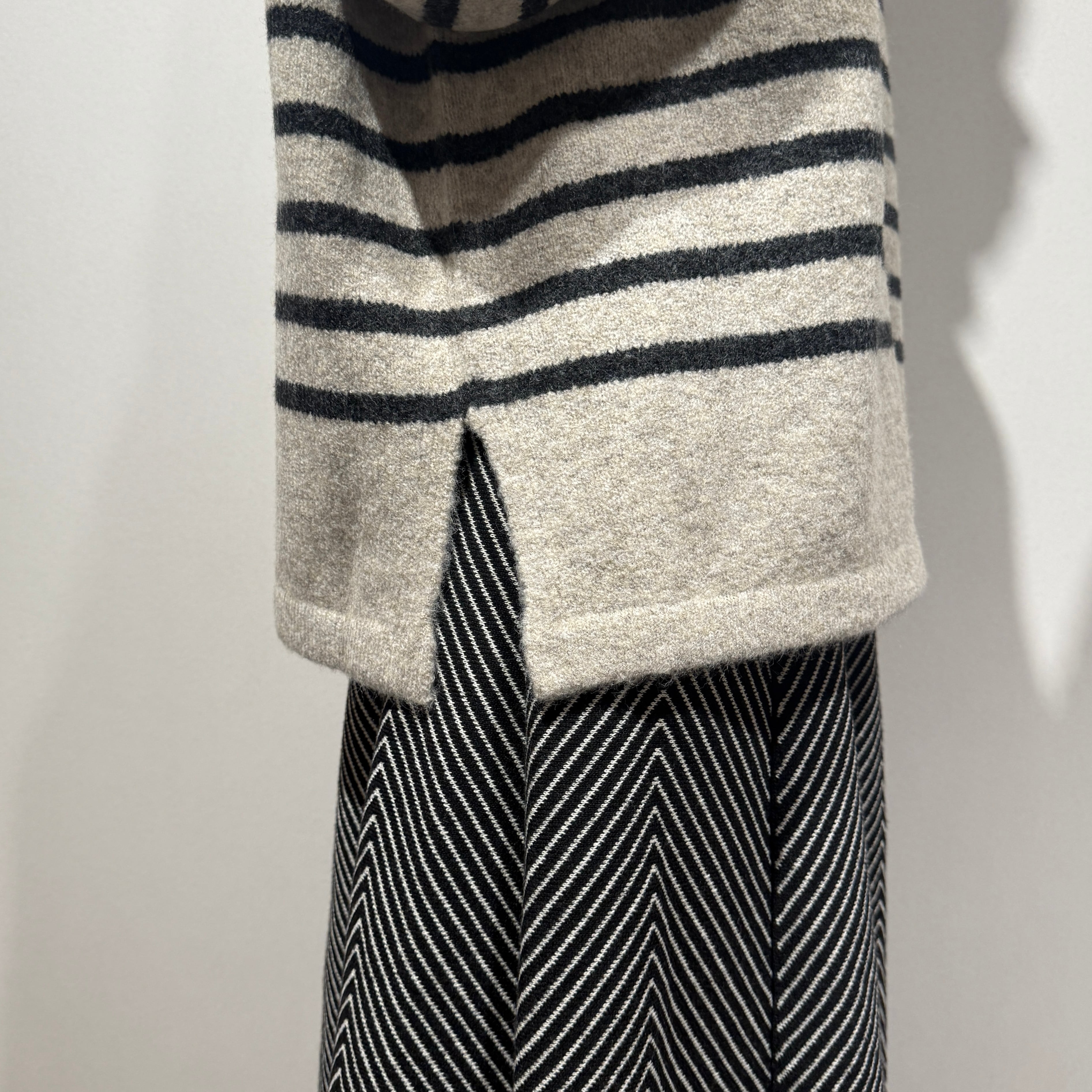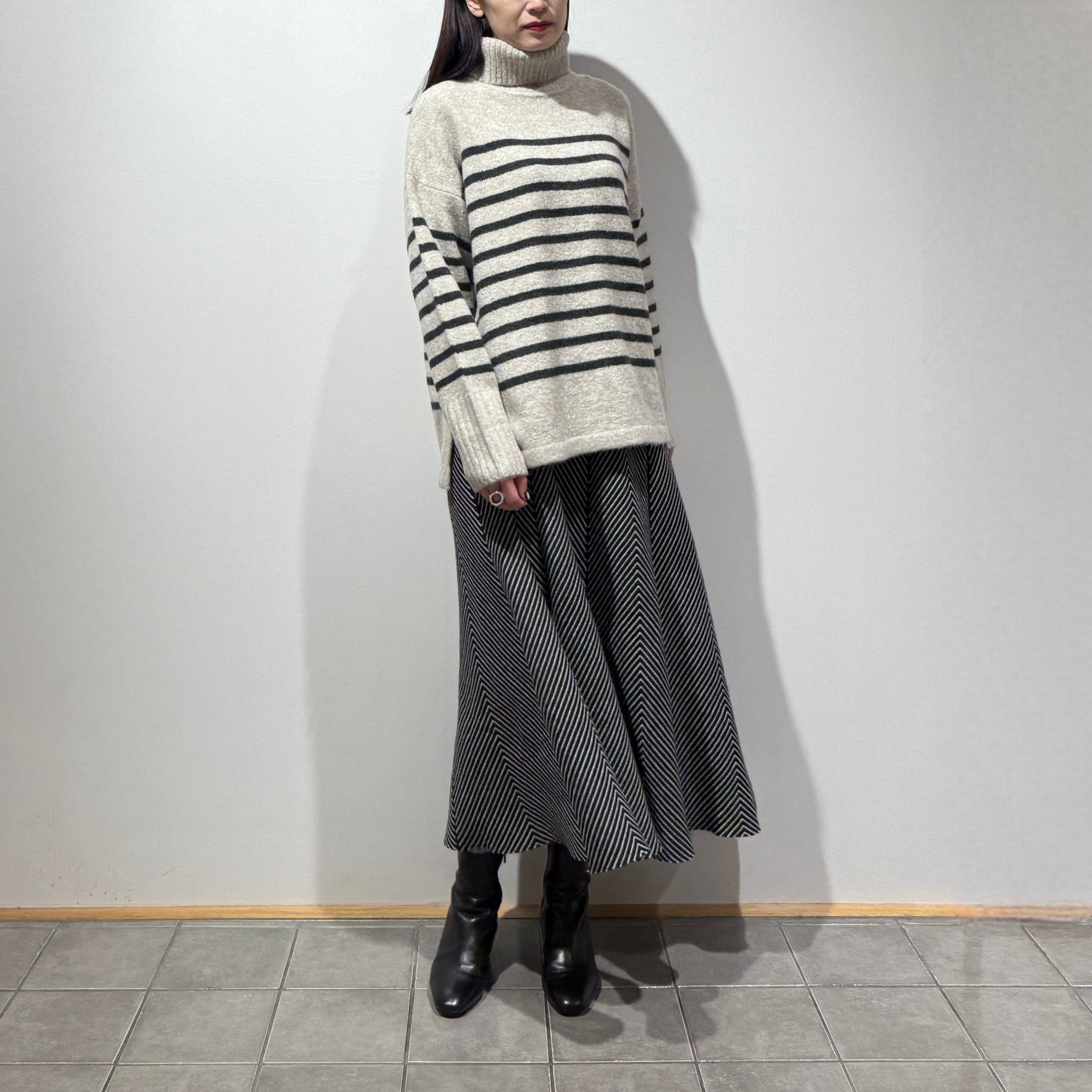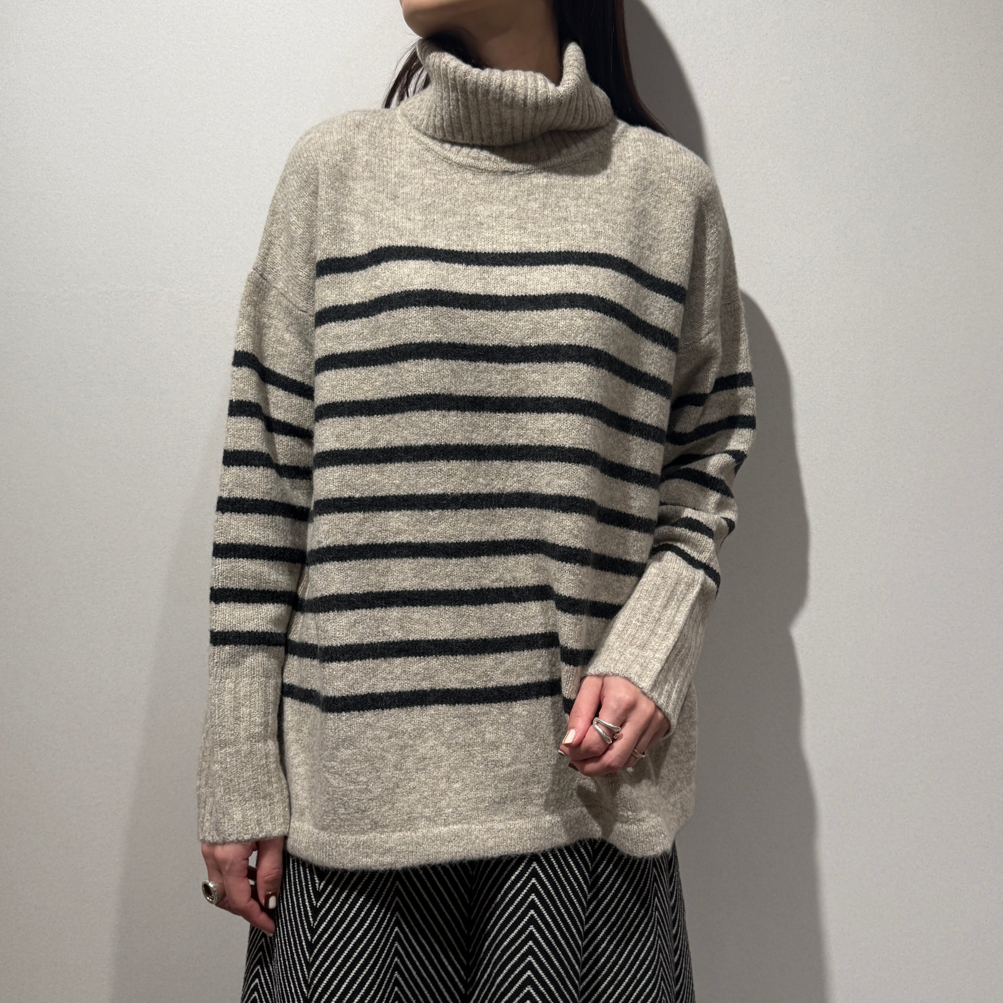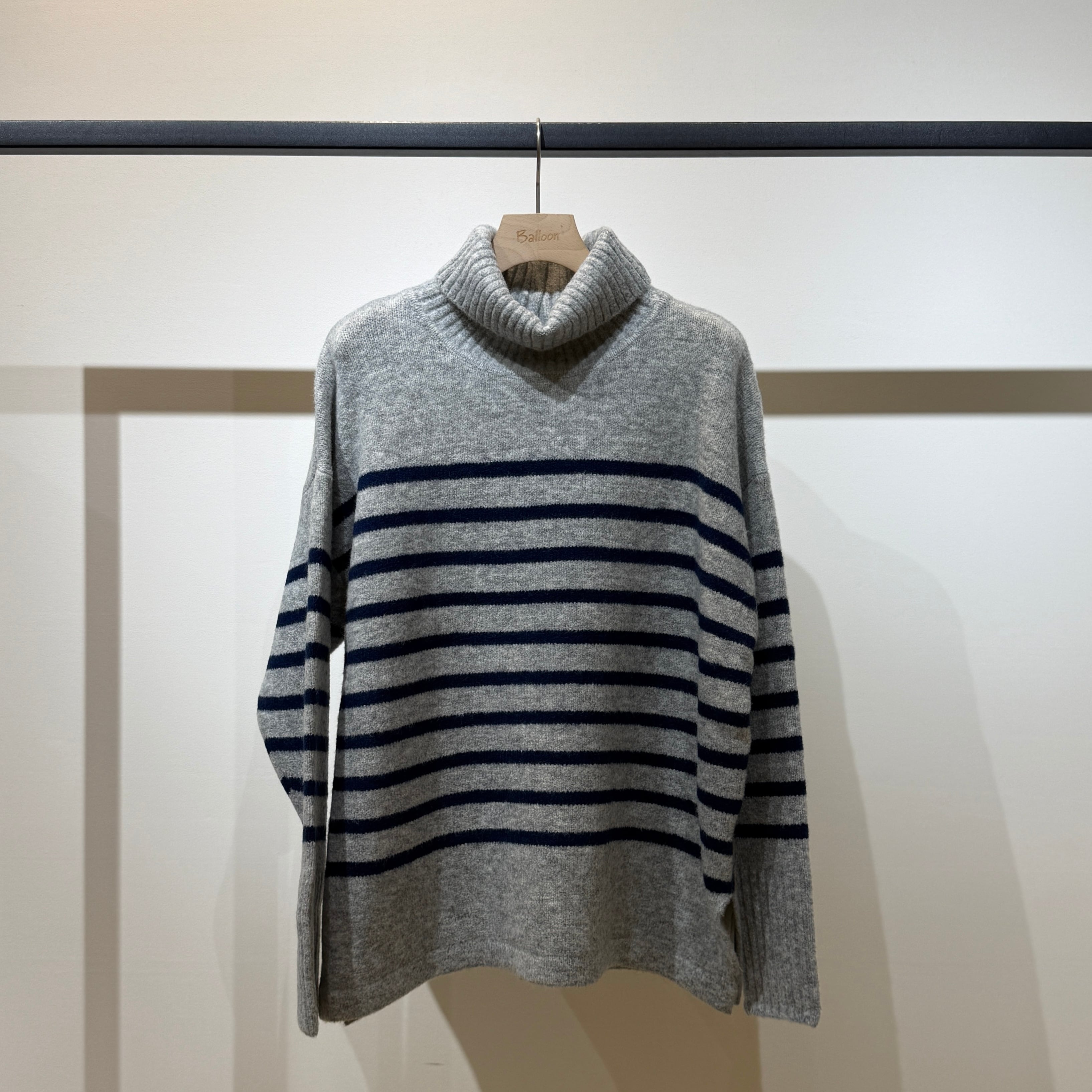 身幅を程よく調整したボックスシルエットで、ゆとりがありつつワイドすぎず、品良くカジュアルに着こなせます。しましまの配色デザインで視覚的にもアクセントに◎