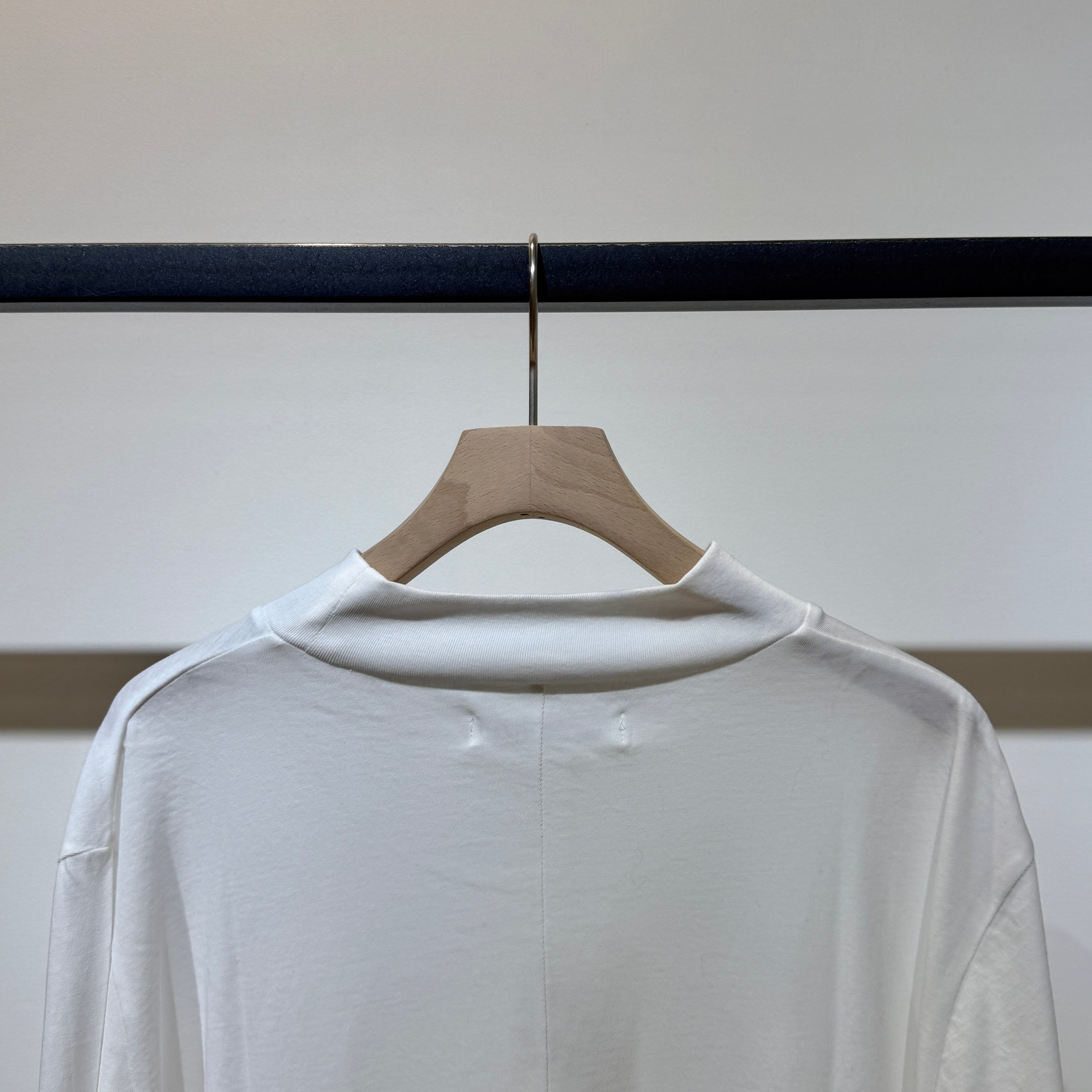 程よい透け感とドレープが美しい、ハイネックデザインのリラックスロンT。