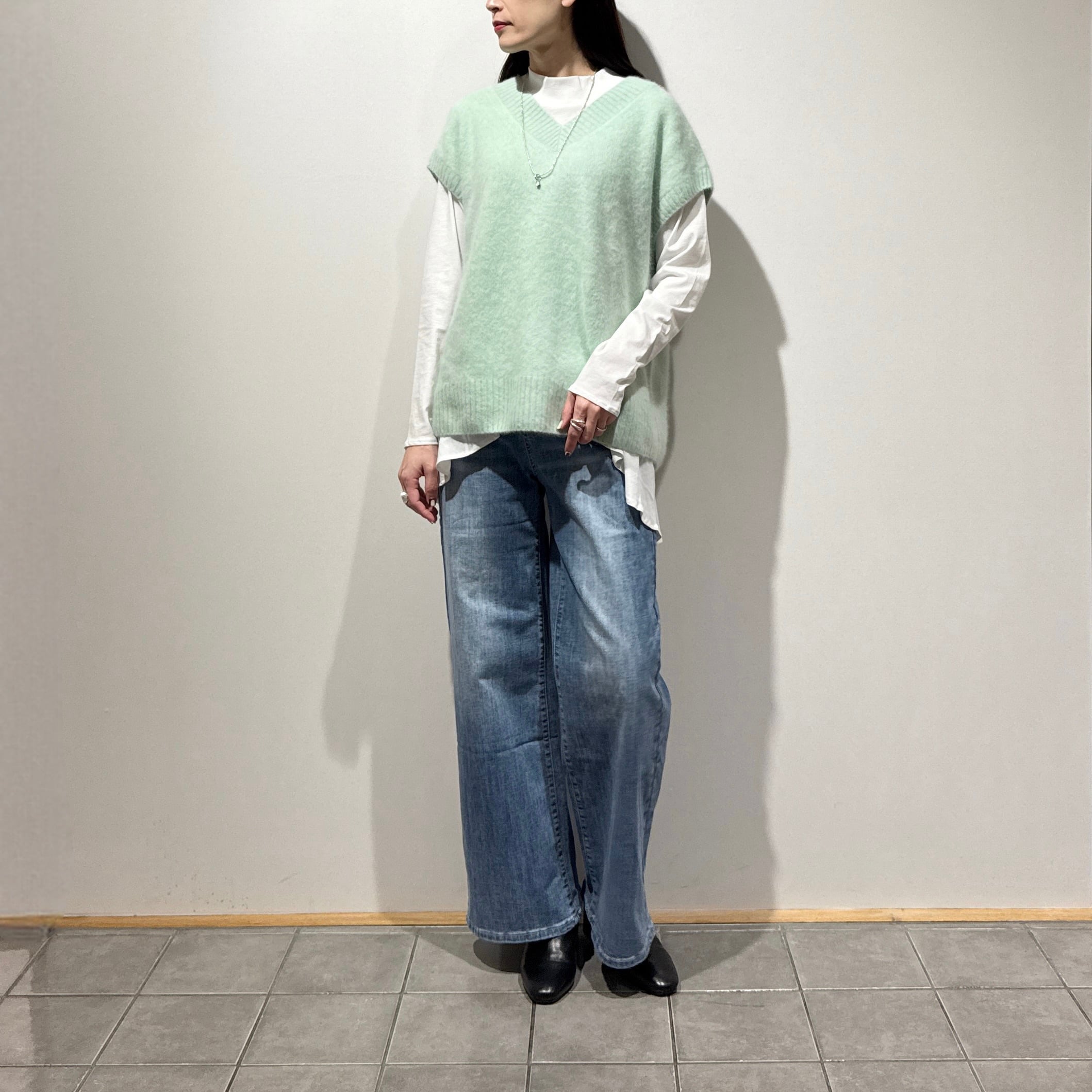デニムやワイドパンツでカジュアルに、スカートと合わせて女性らしく。アウターのインナーとしても着映えするアイテムです。