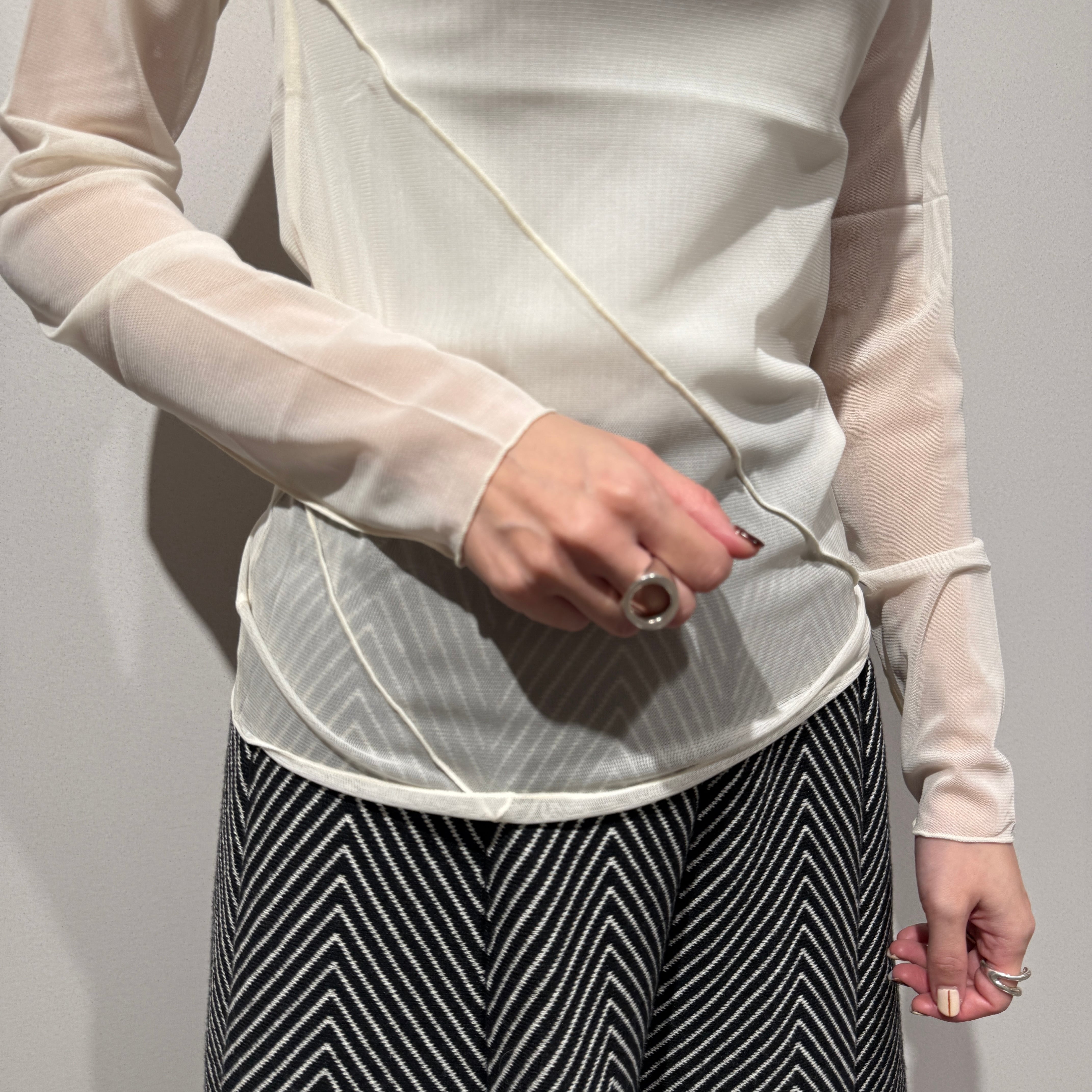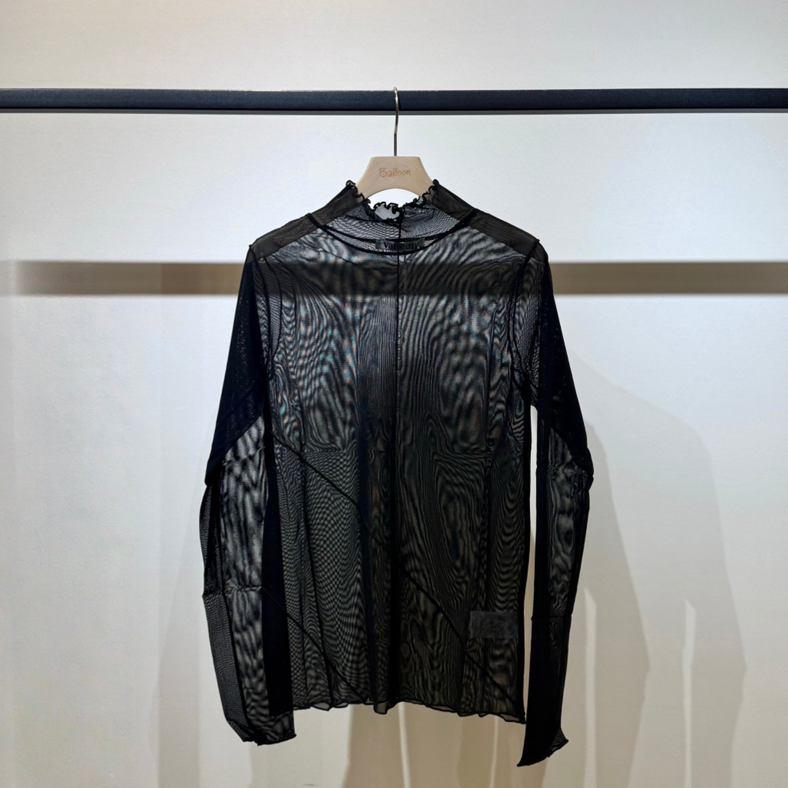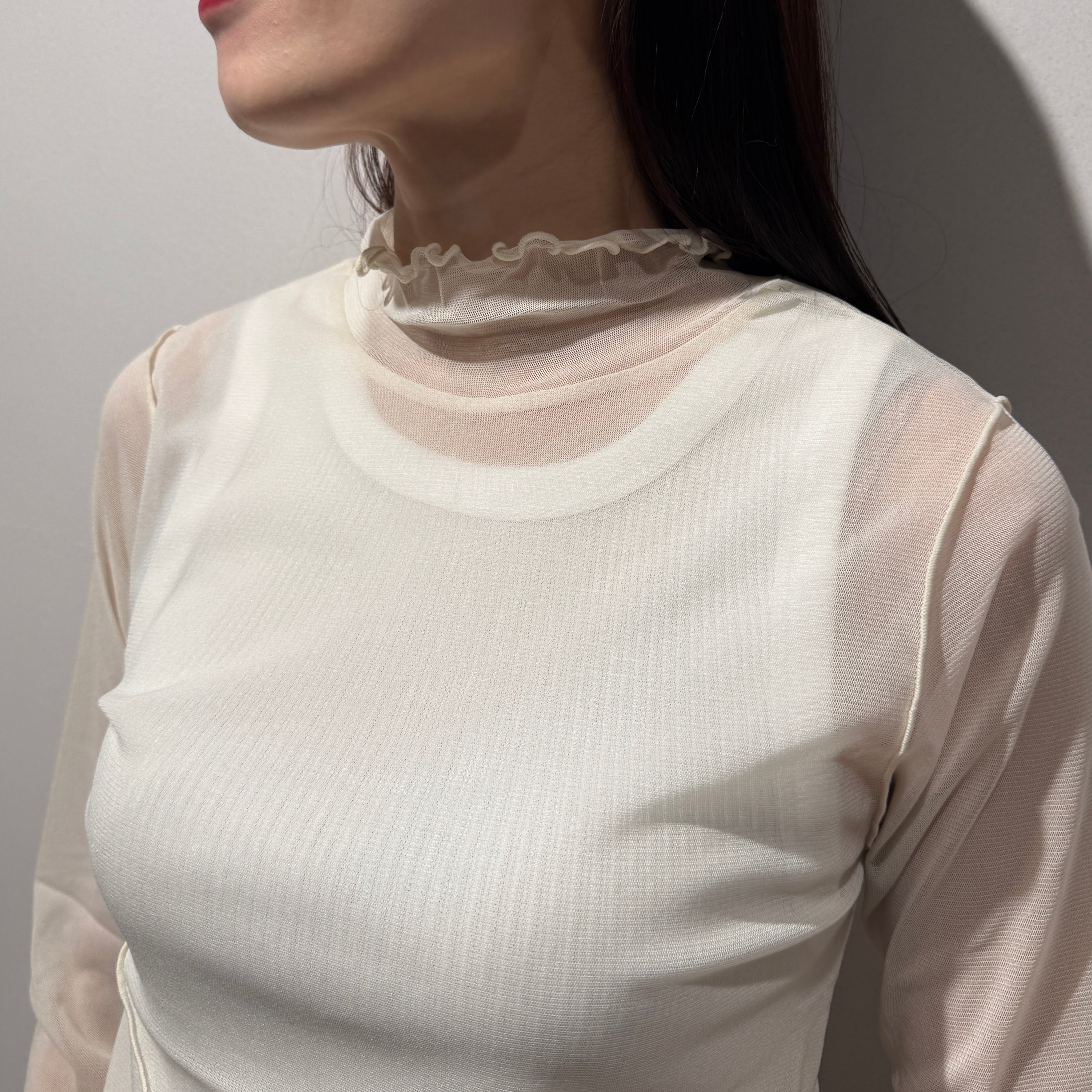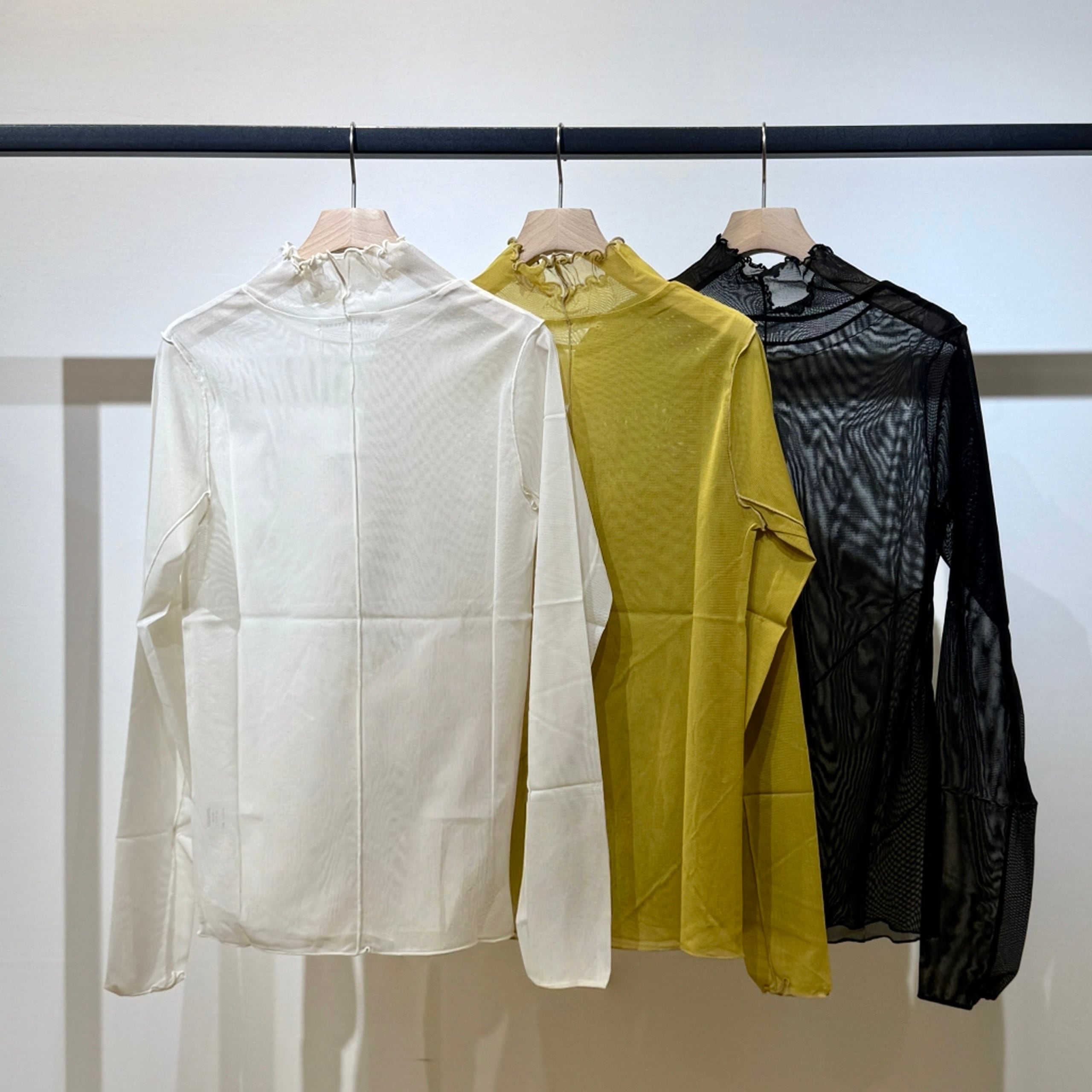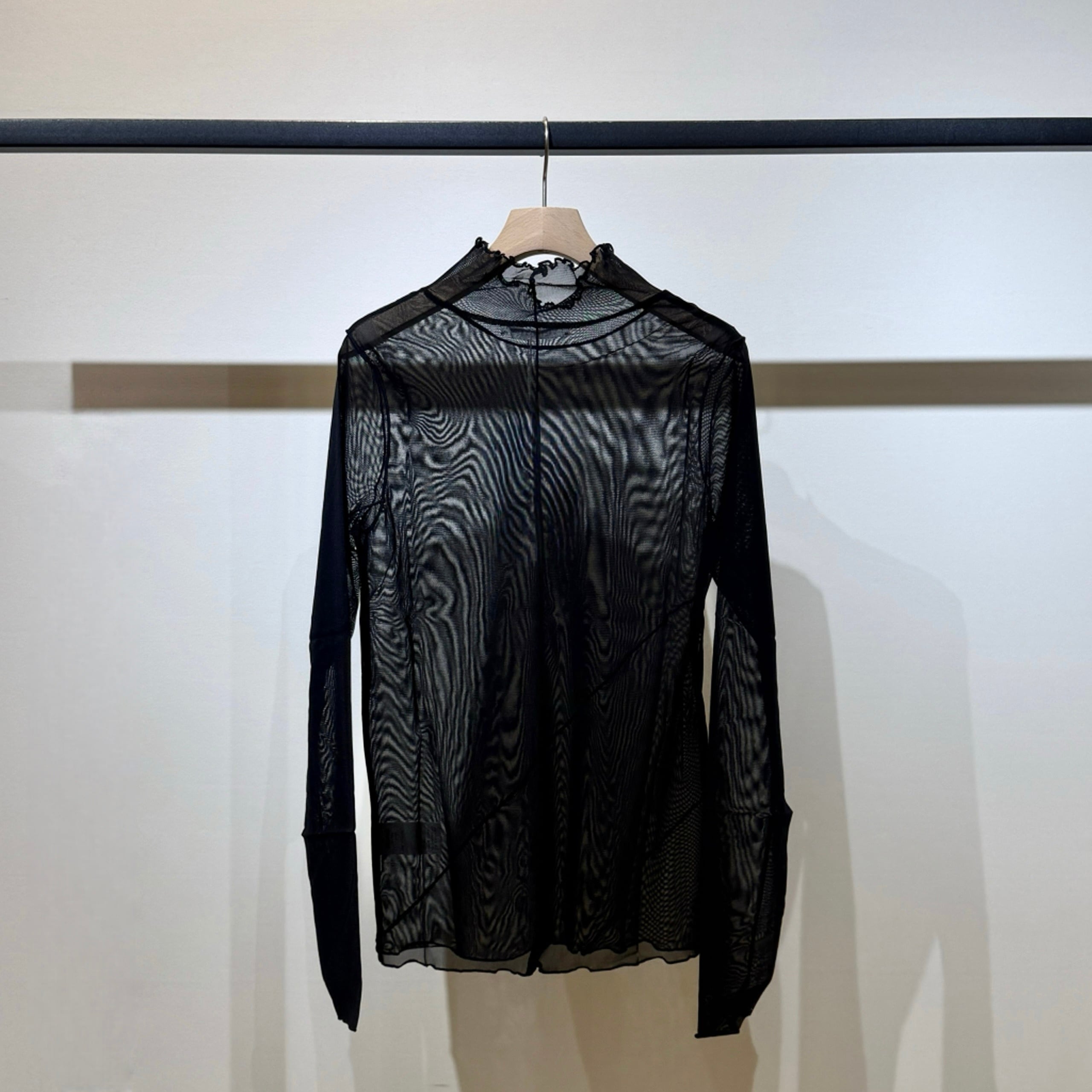 透け感をアクセントに楽しめる、デザインハイネックトップス。