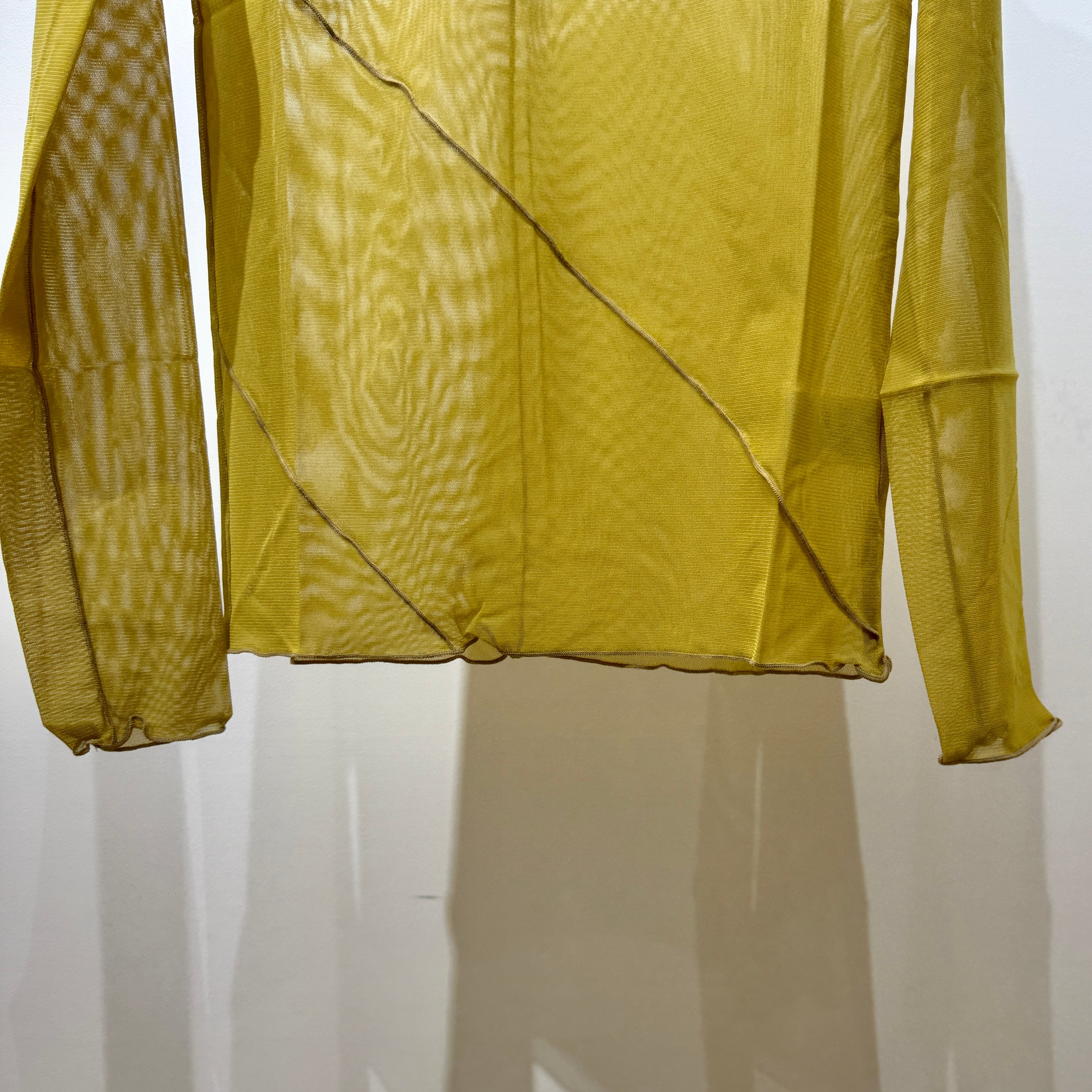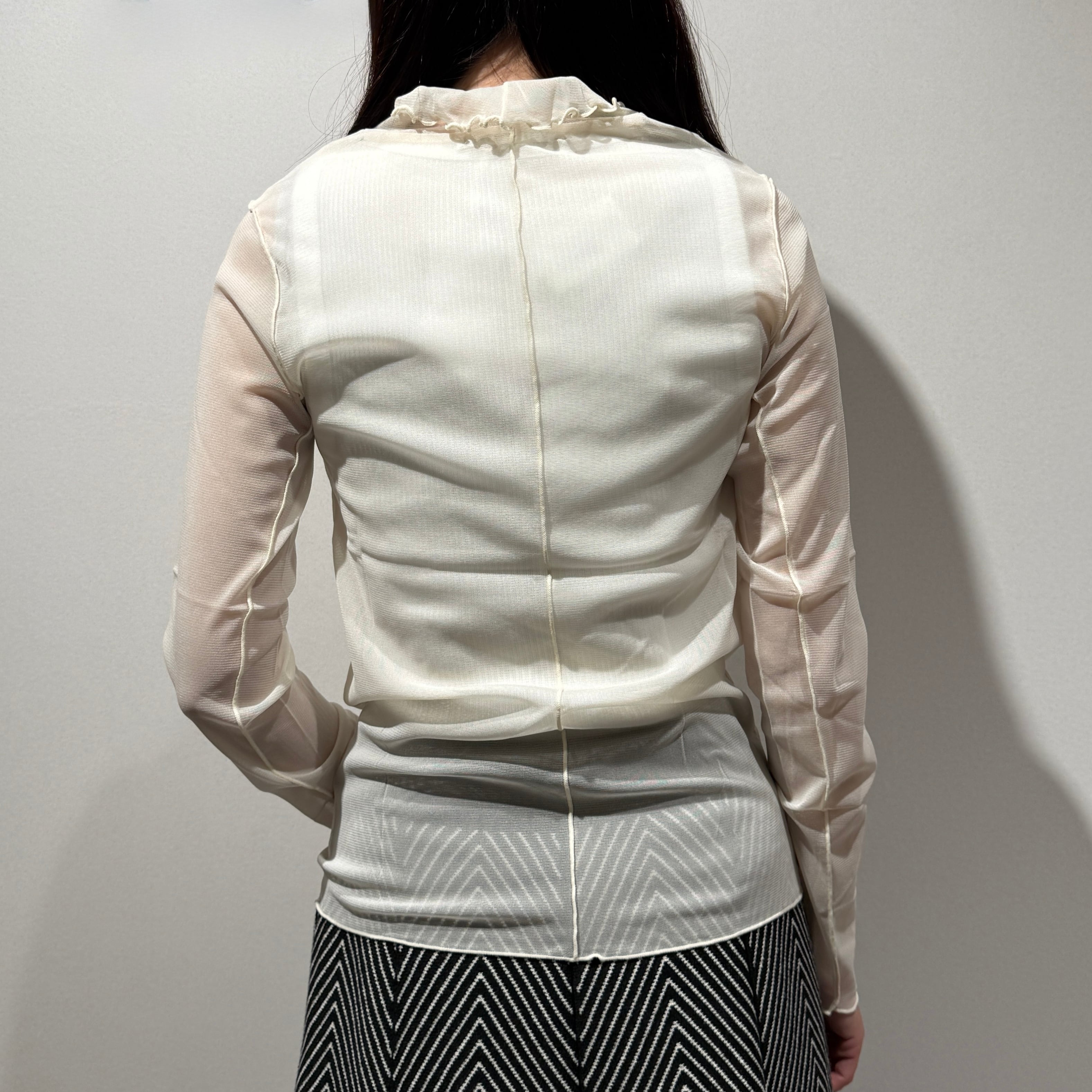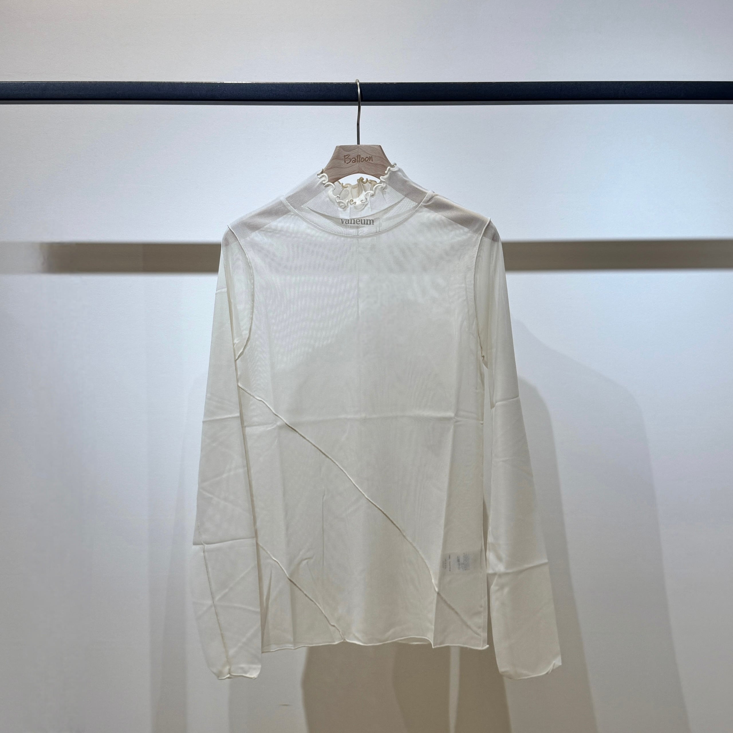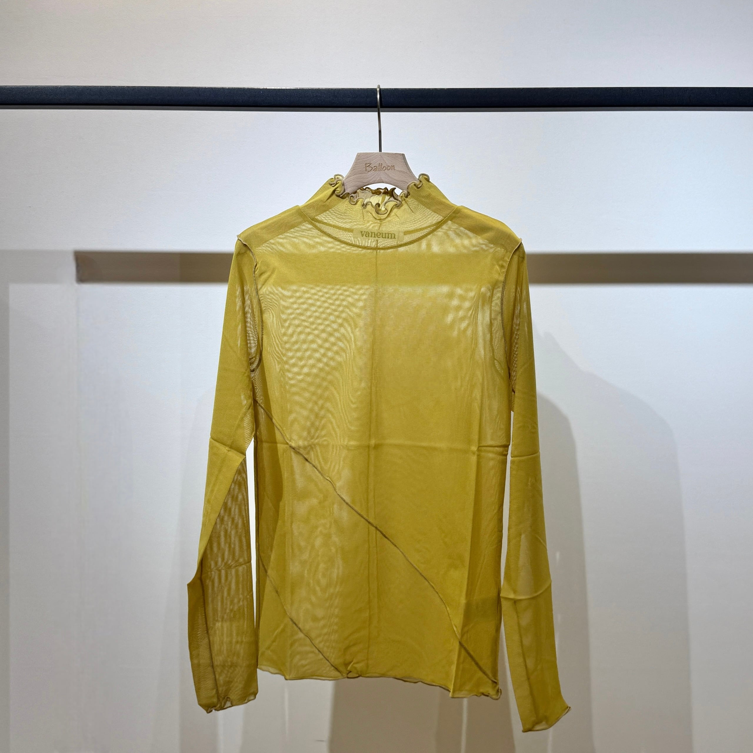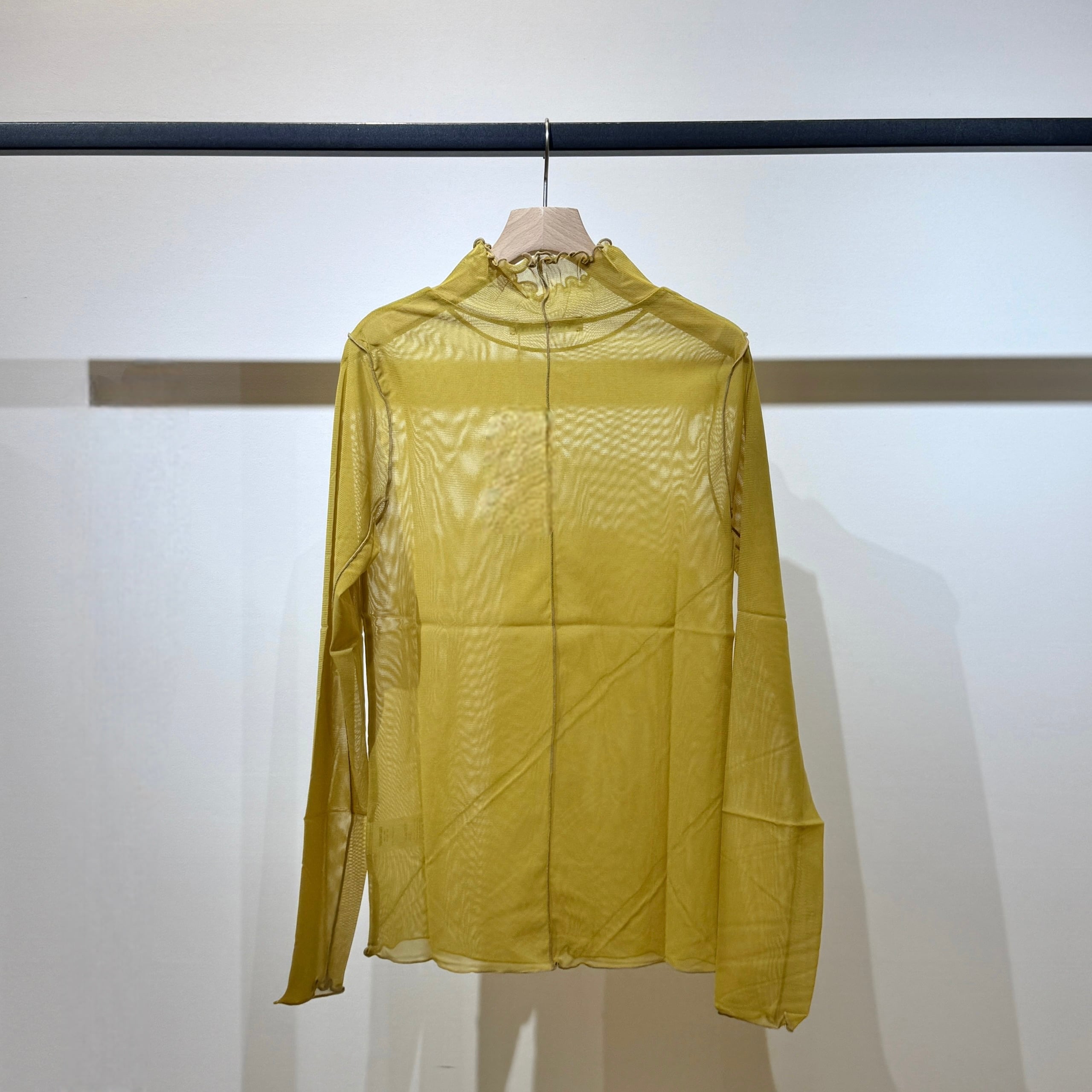 透け感をアクセントに楽しめる、デザインハイネックトップス。