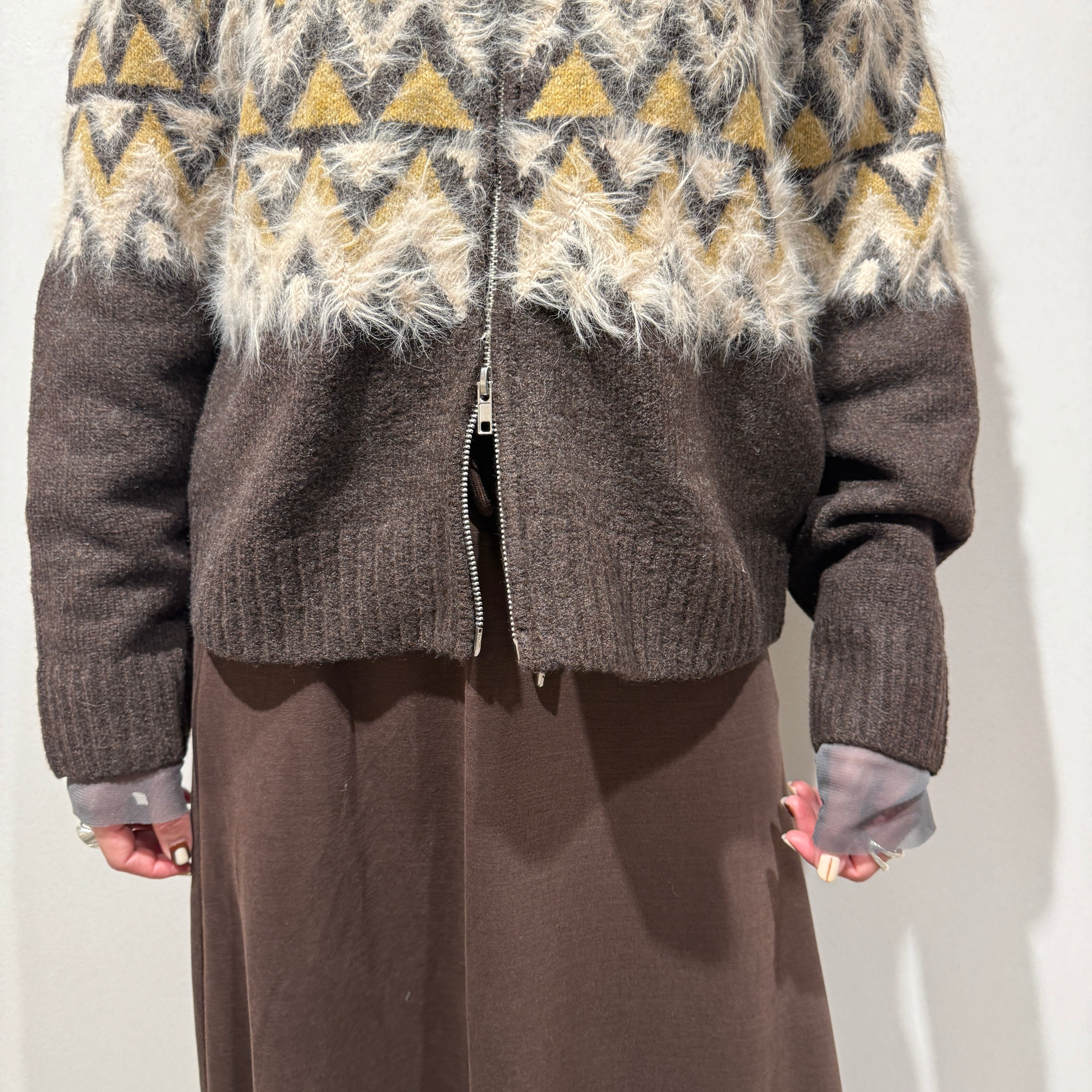 季節感たっぷりのノルディック柄が目を惹く、軽く羽織れるジップタイプのニットブルゾン。