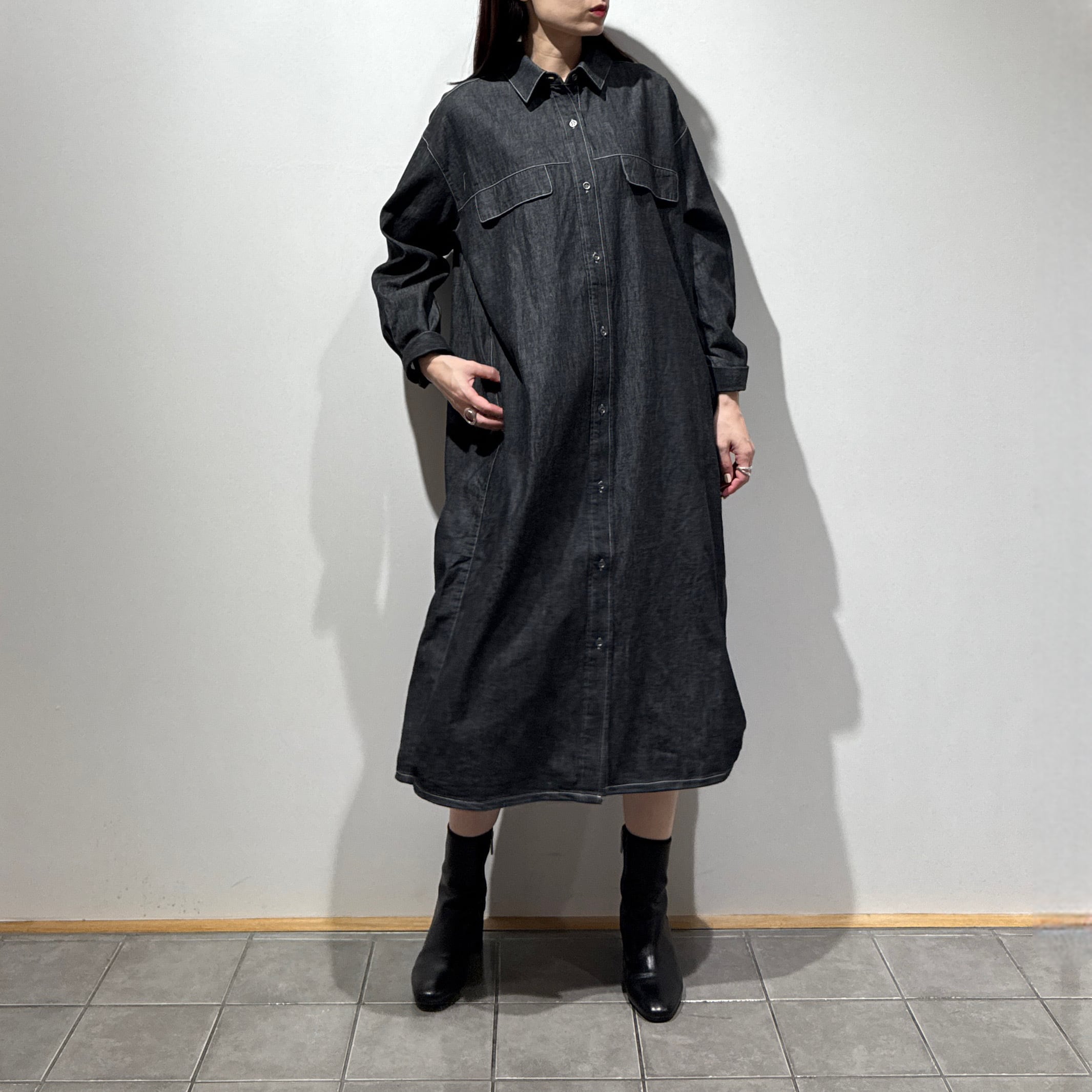 軽やかさと程よいハリを兼ね備えたデニムシャツワンピース。
