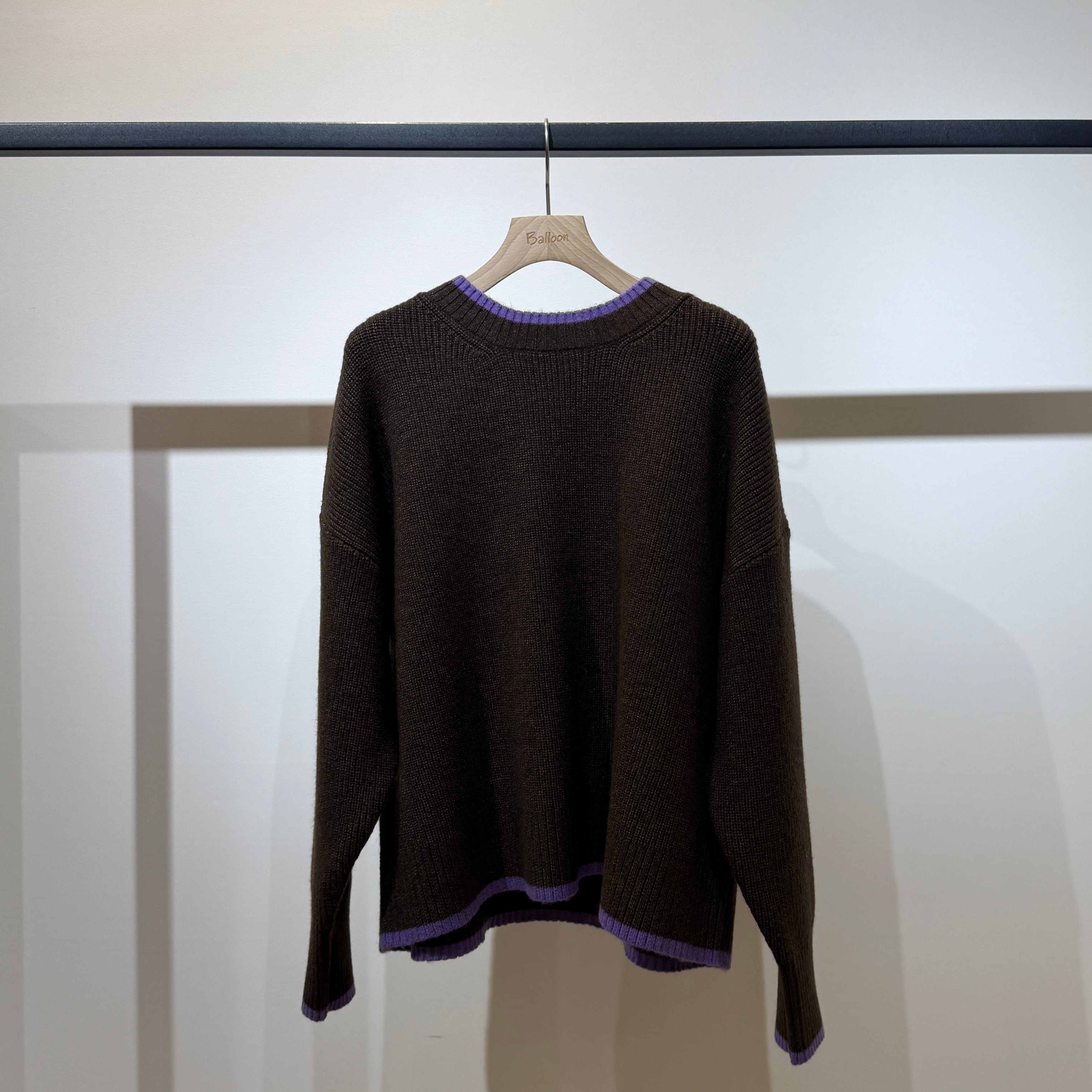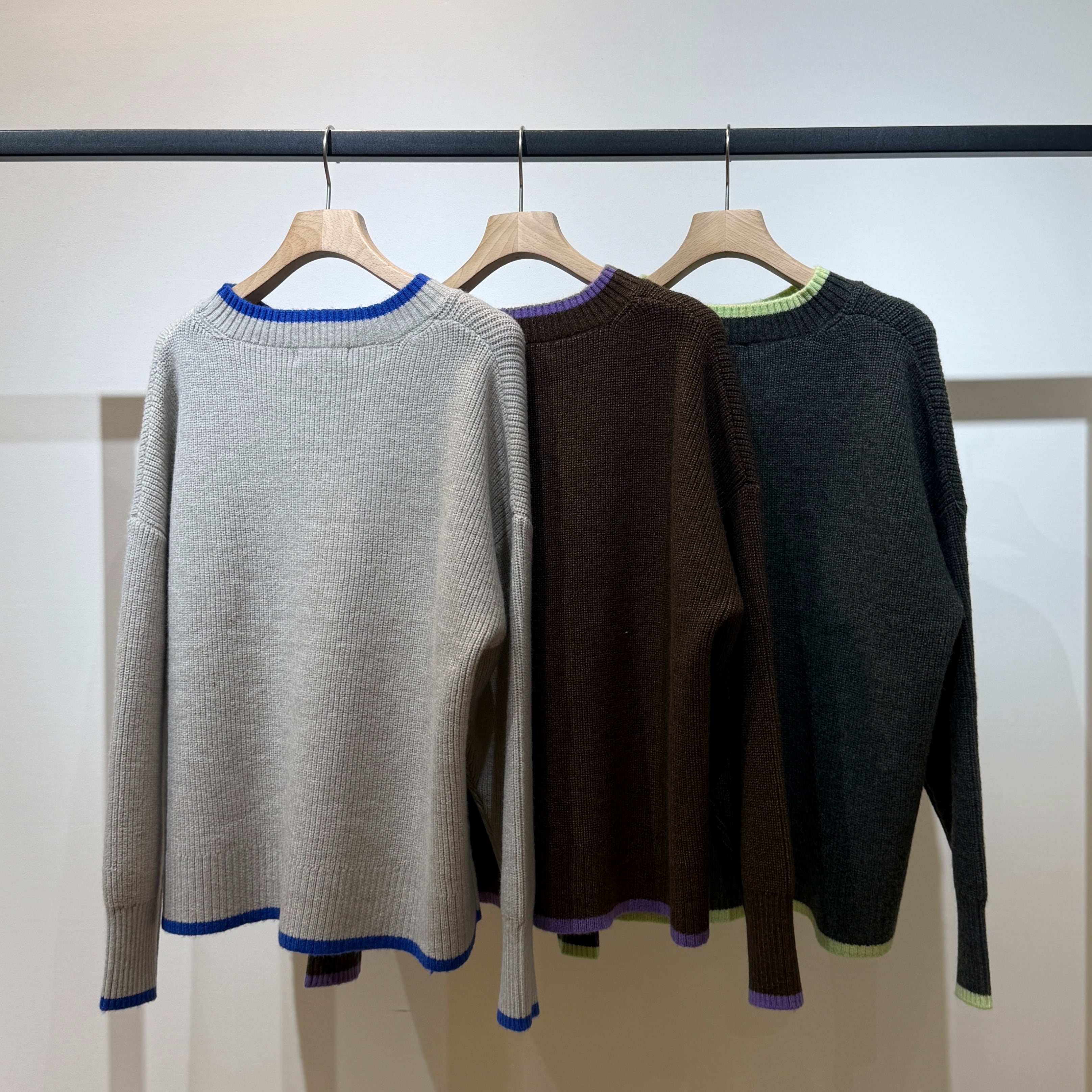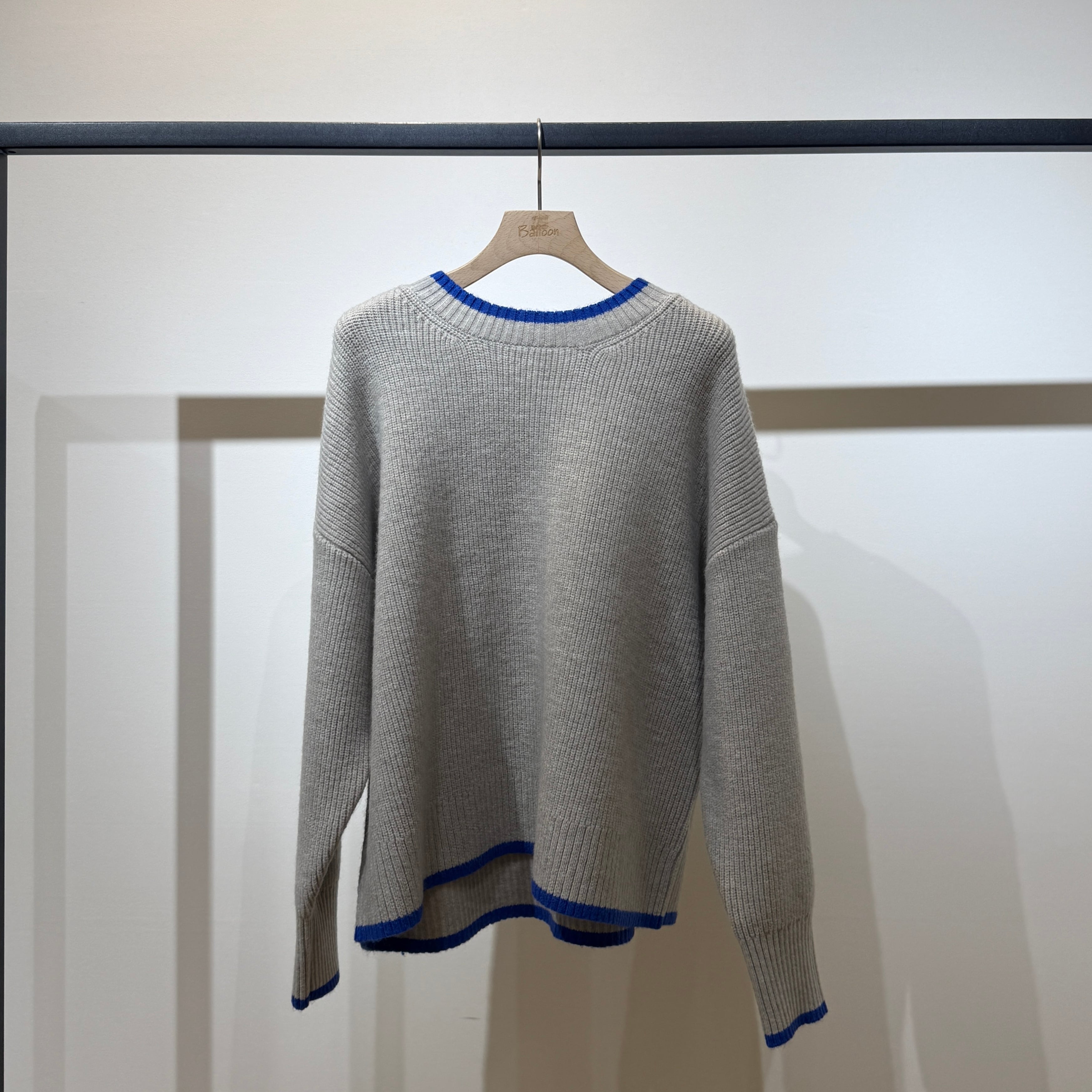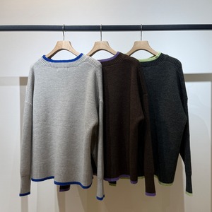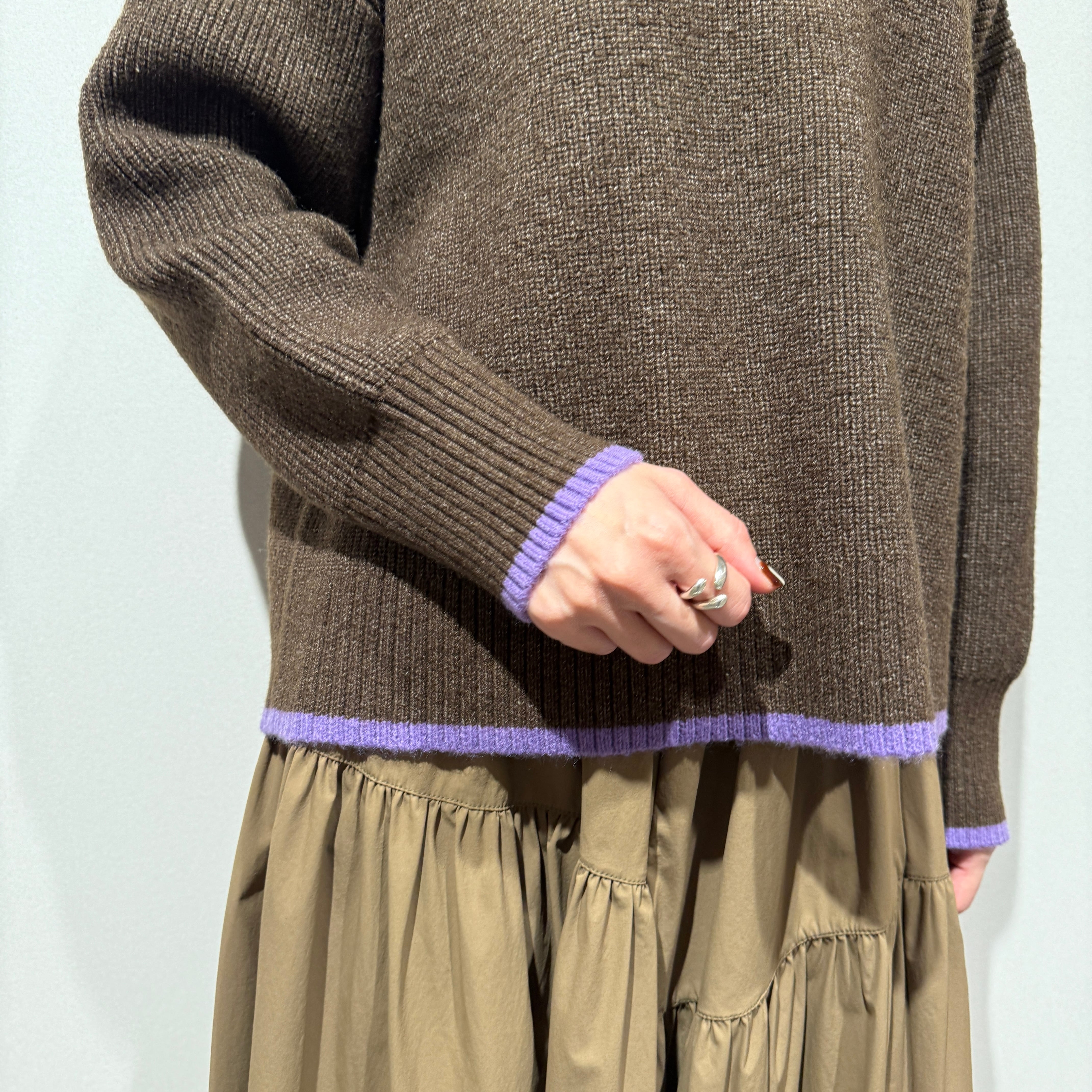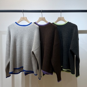 ポップなバイカラーラインが目を惹く、畦編みワイドニットプルオーバー。