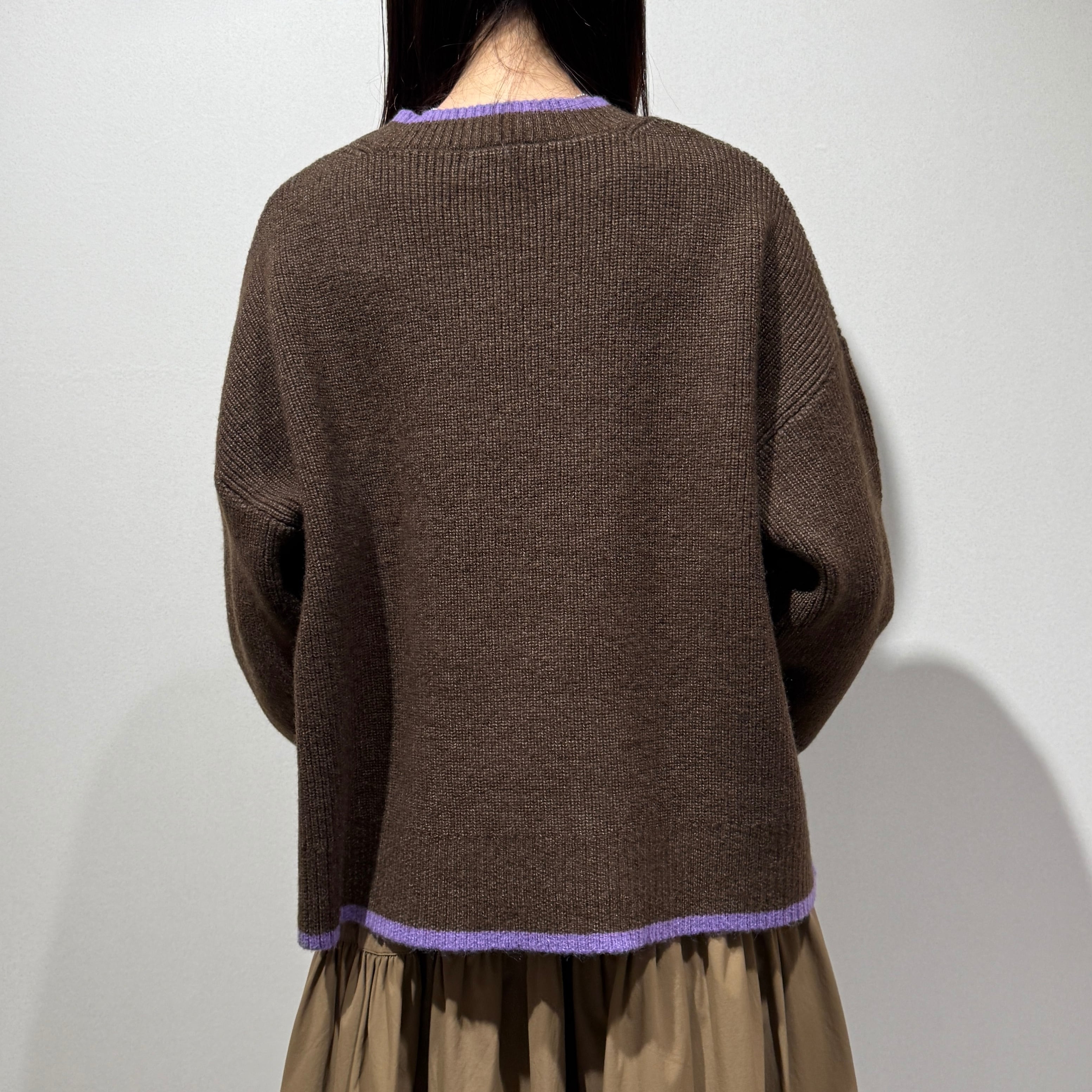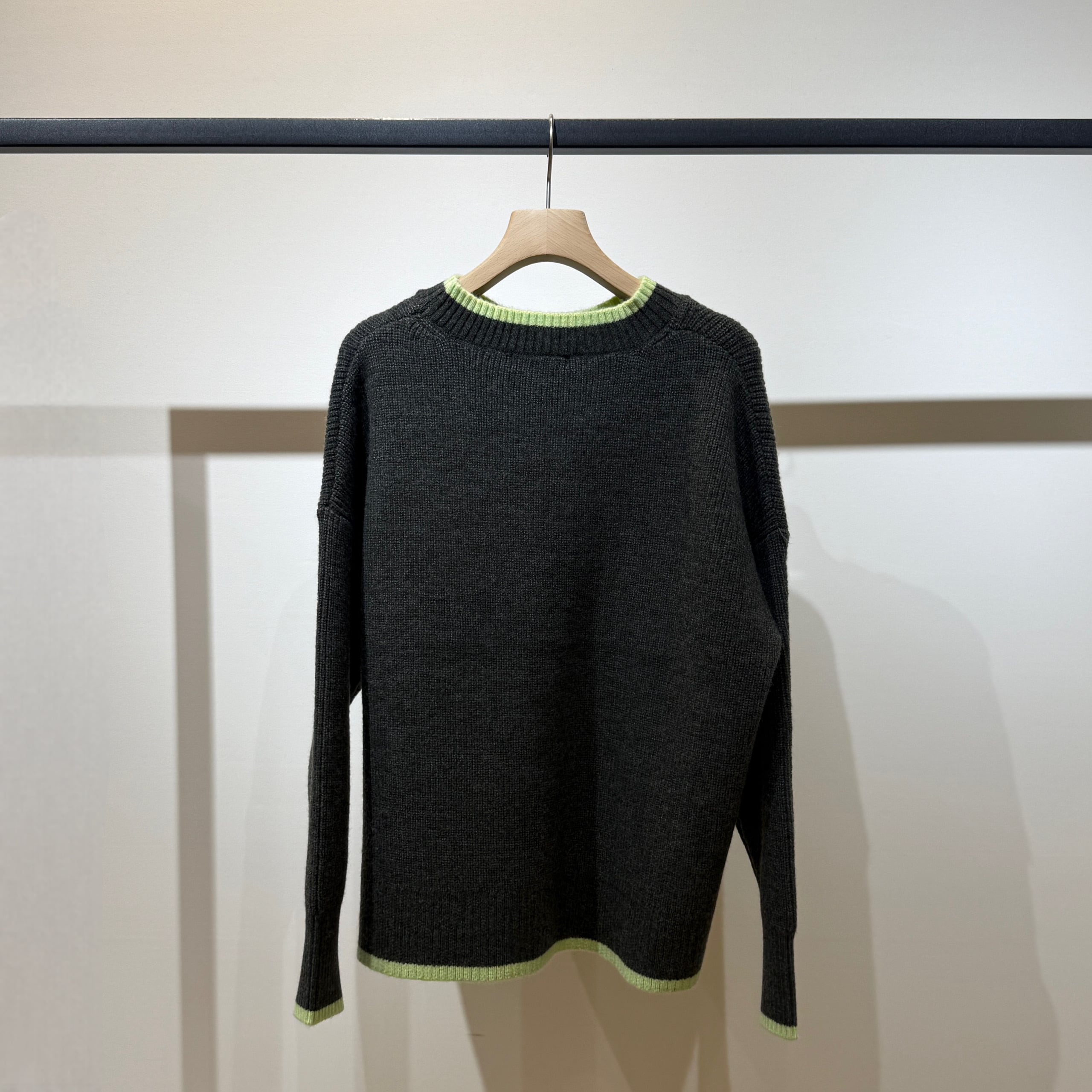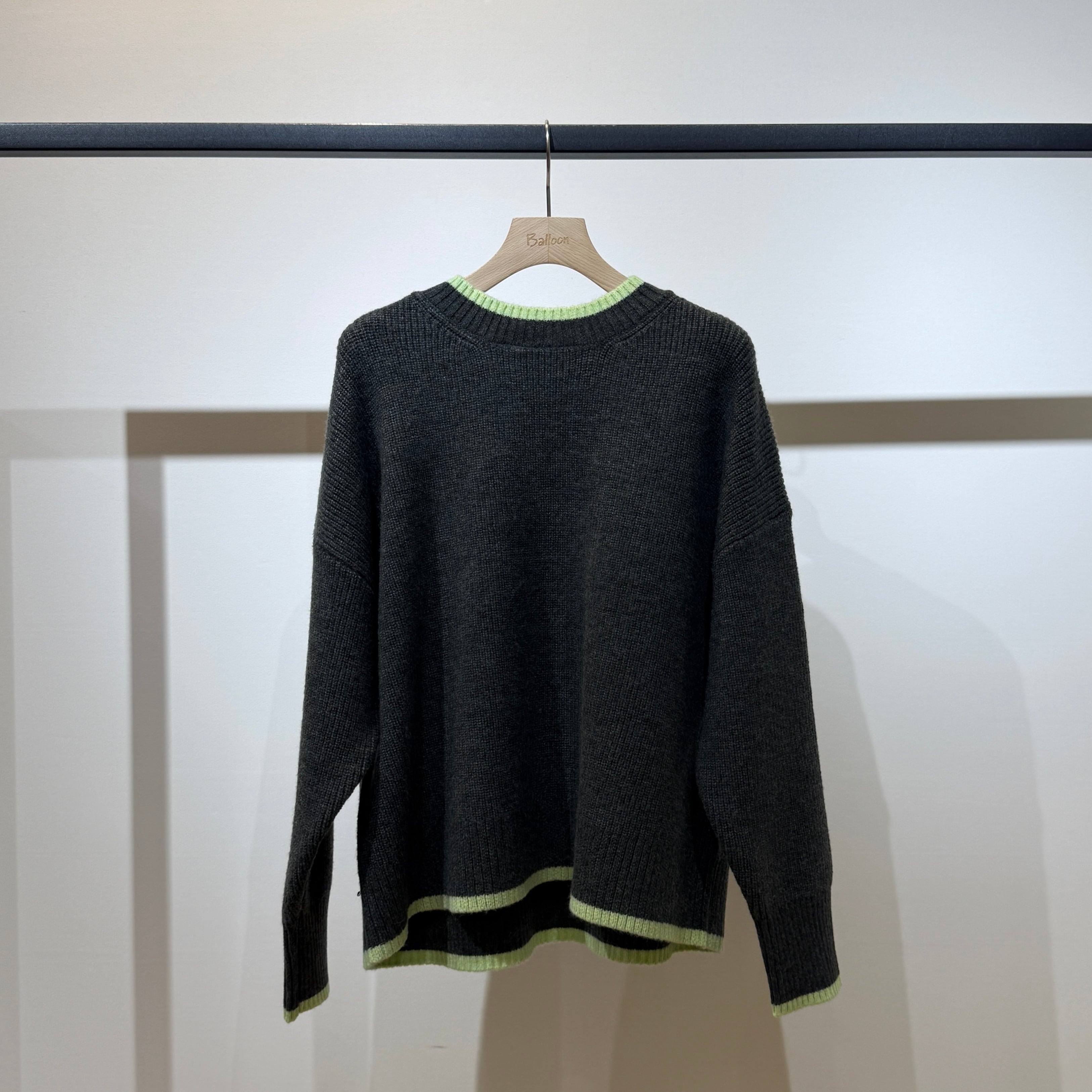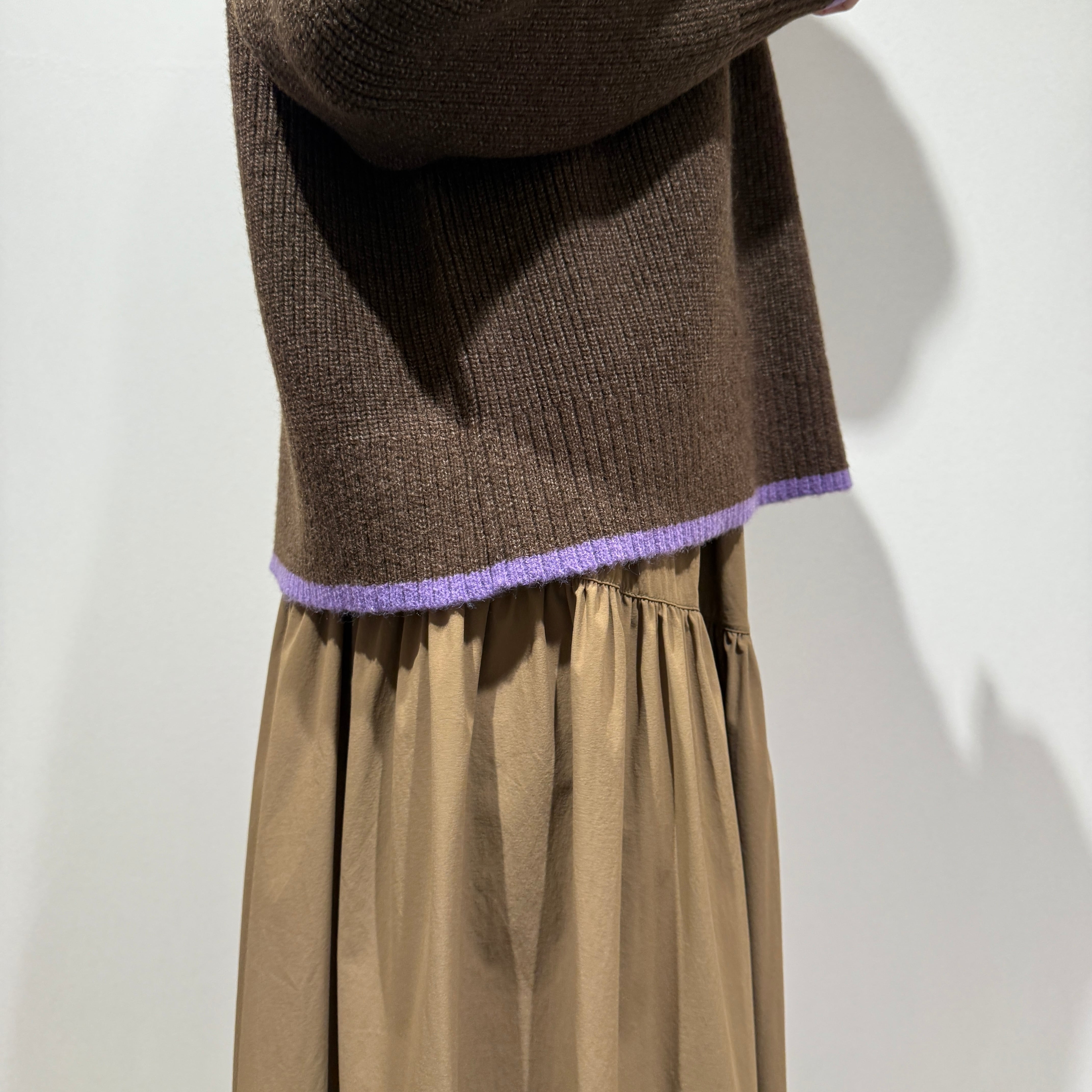 ポップなバイカラーラインが目を惹く、畦編みワイドニットプルオーバー。