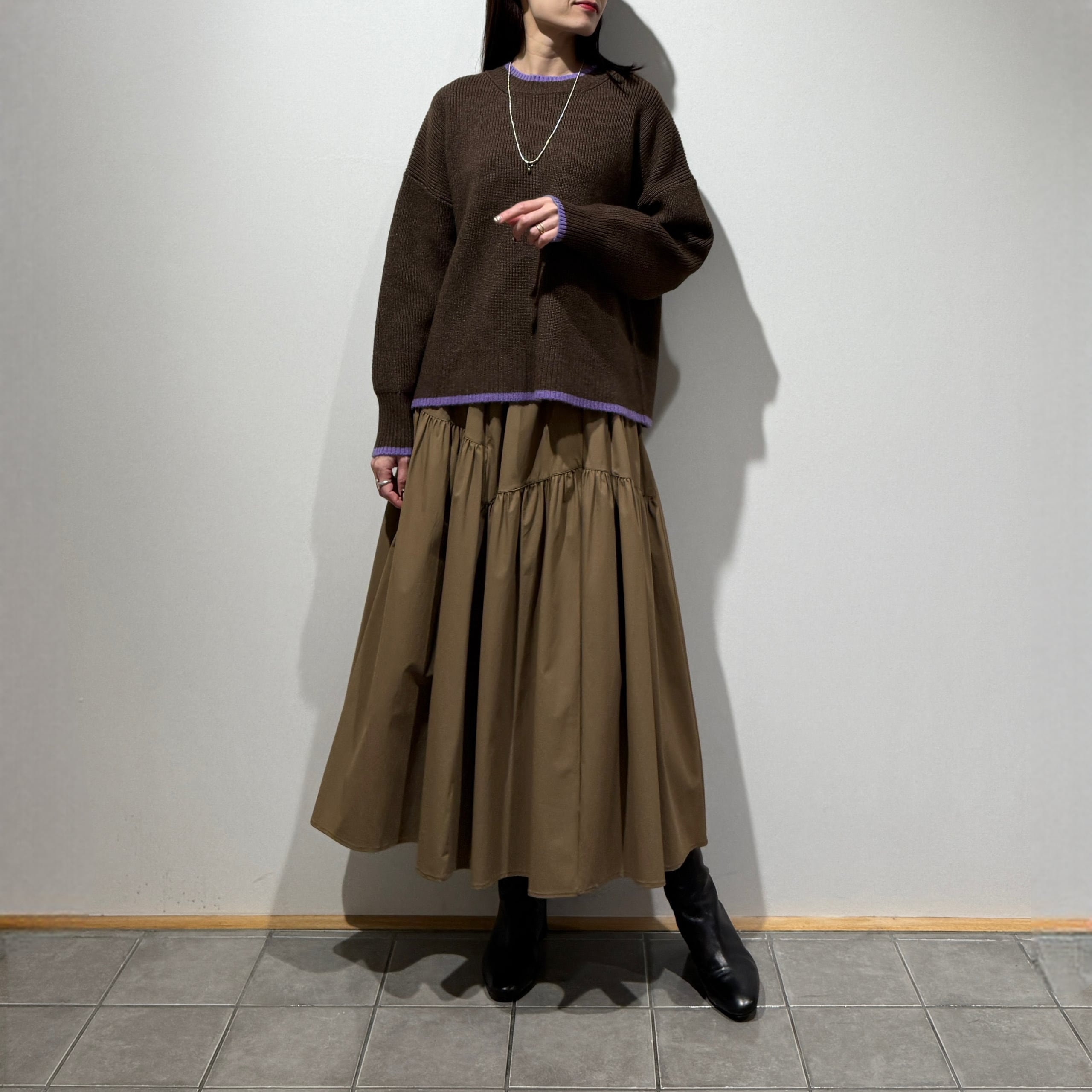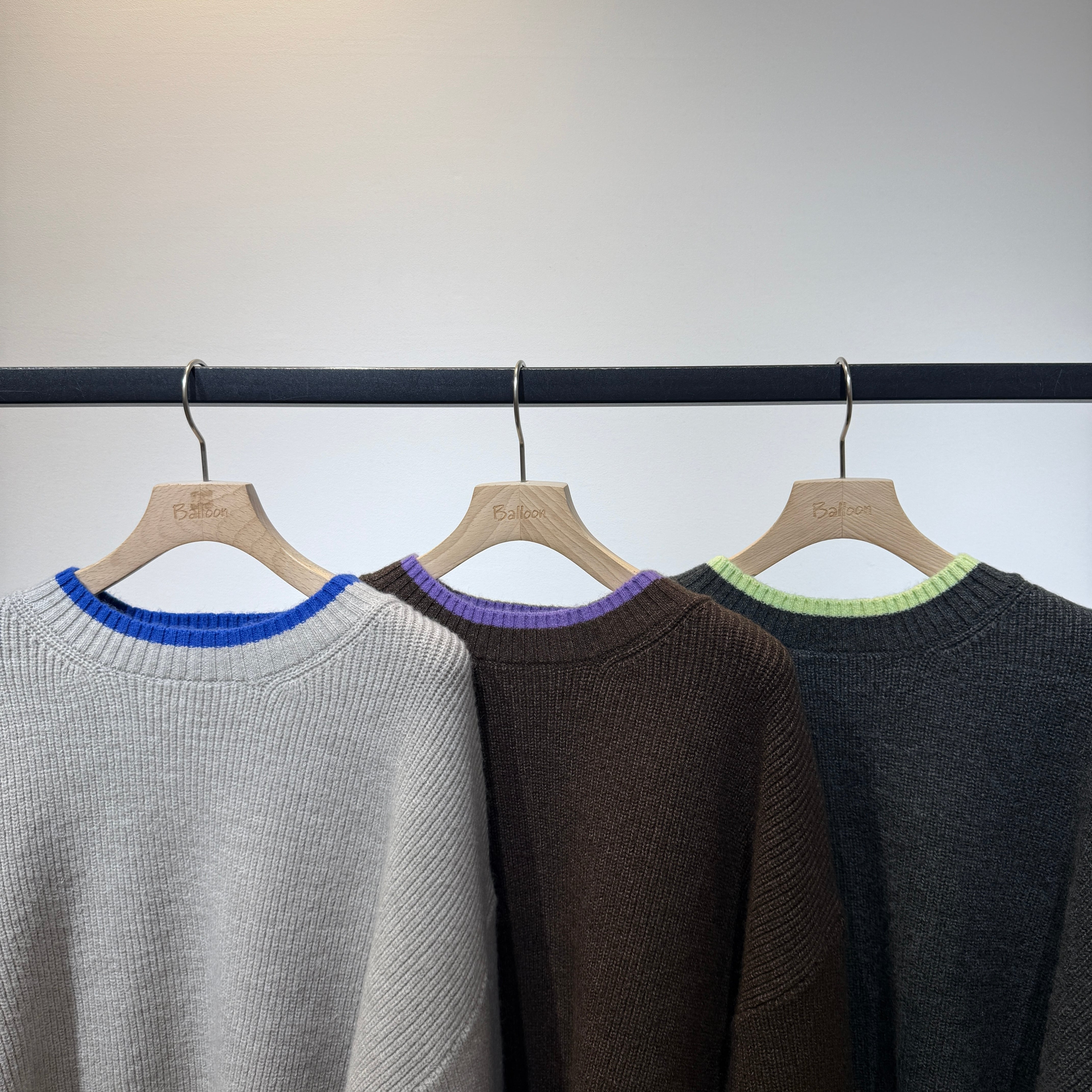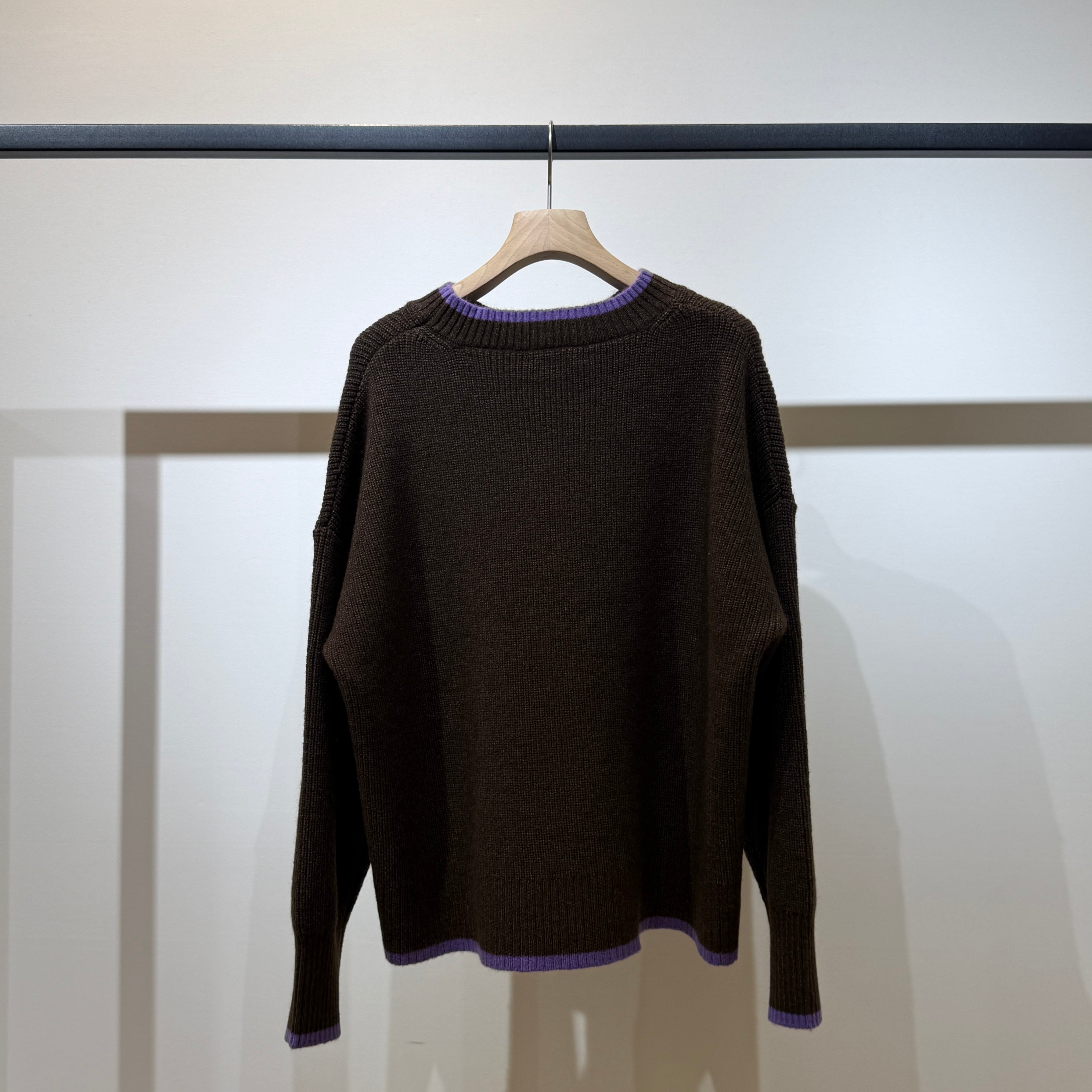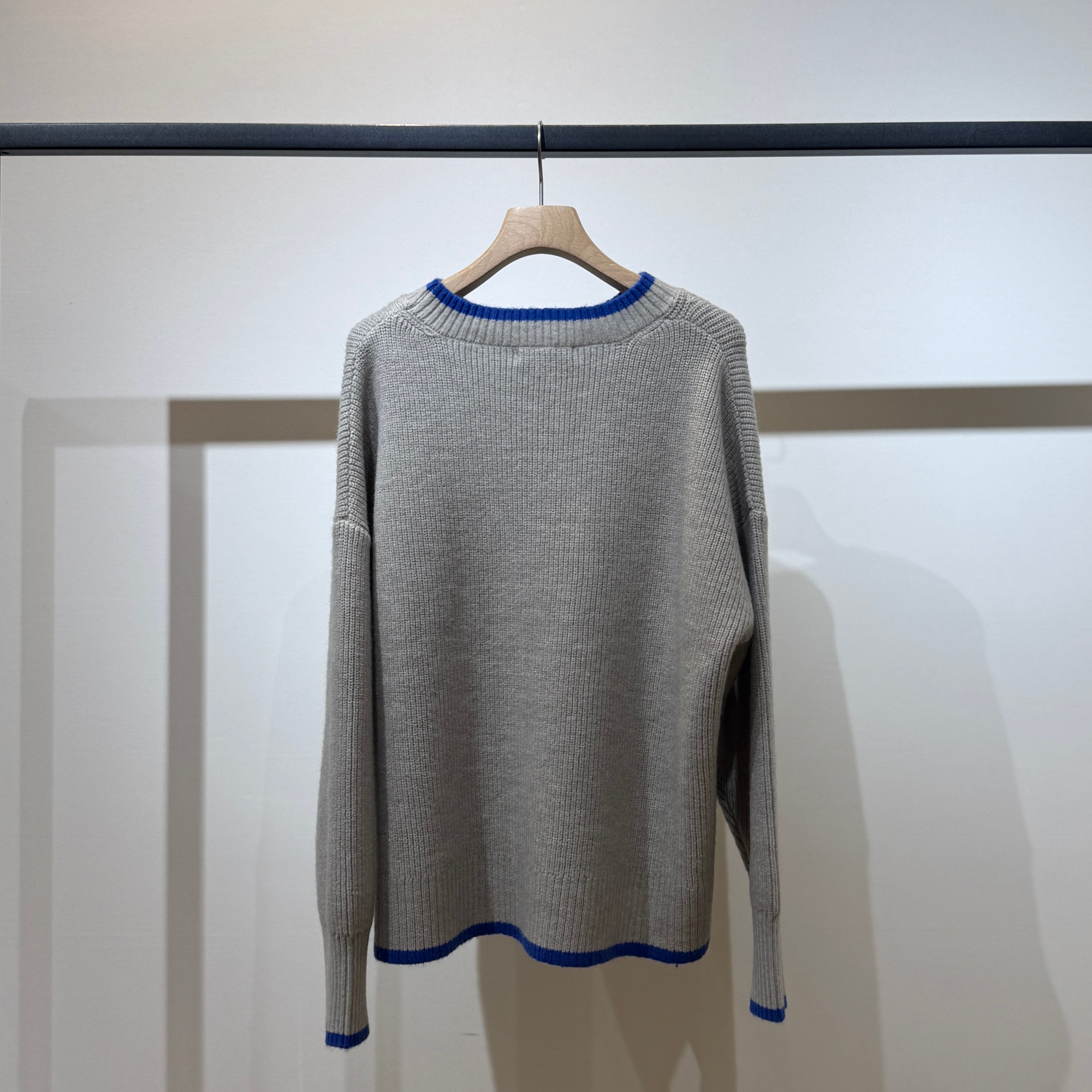ポップなバイカラーラインが目を惹く、畦編みワイドニットプルオーバー。