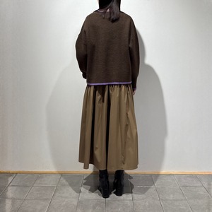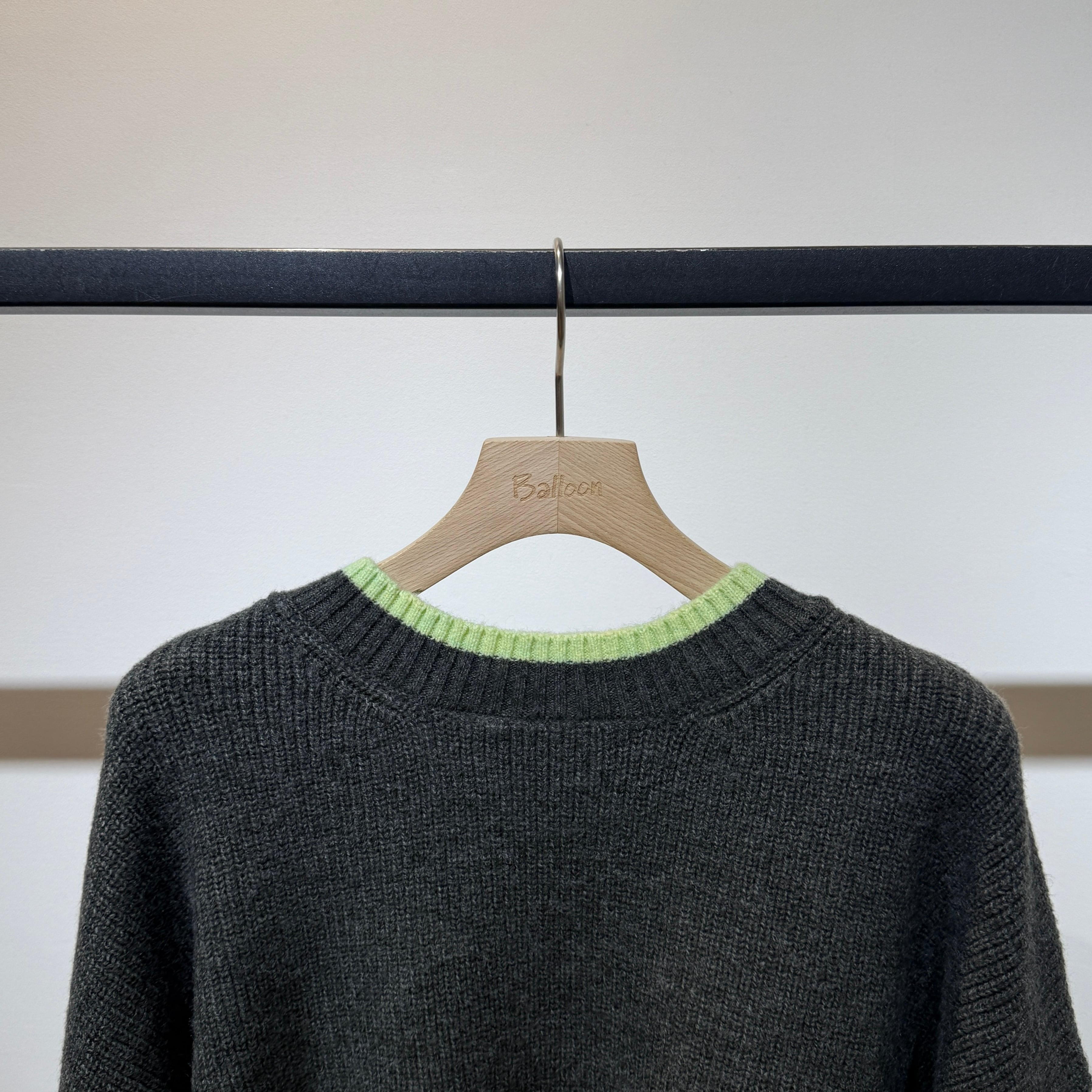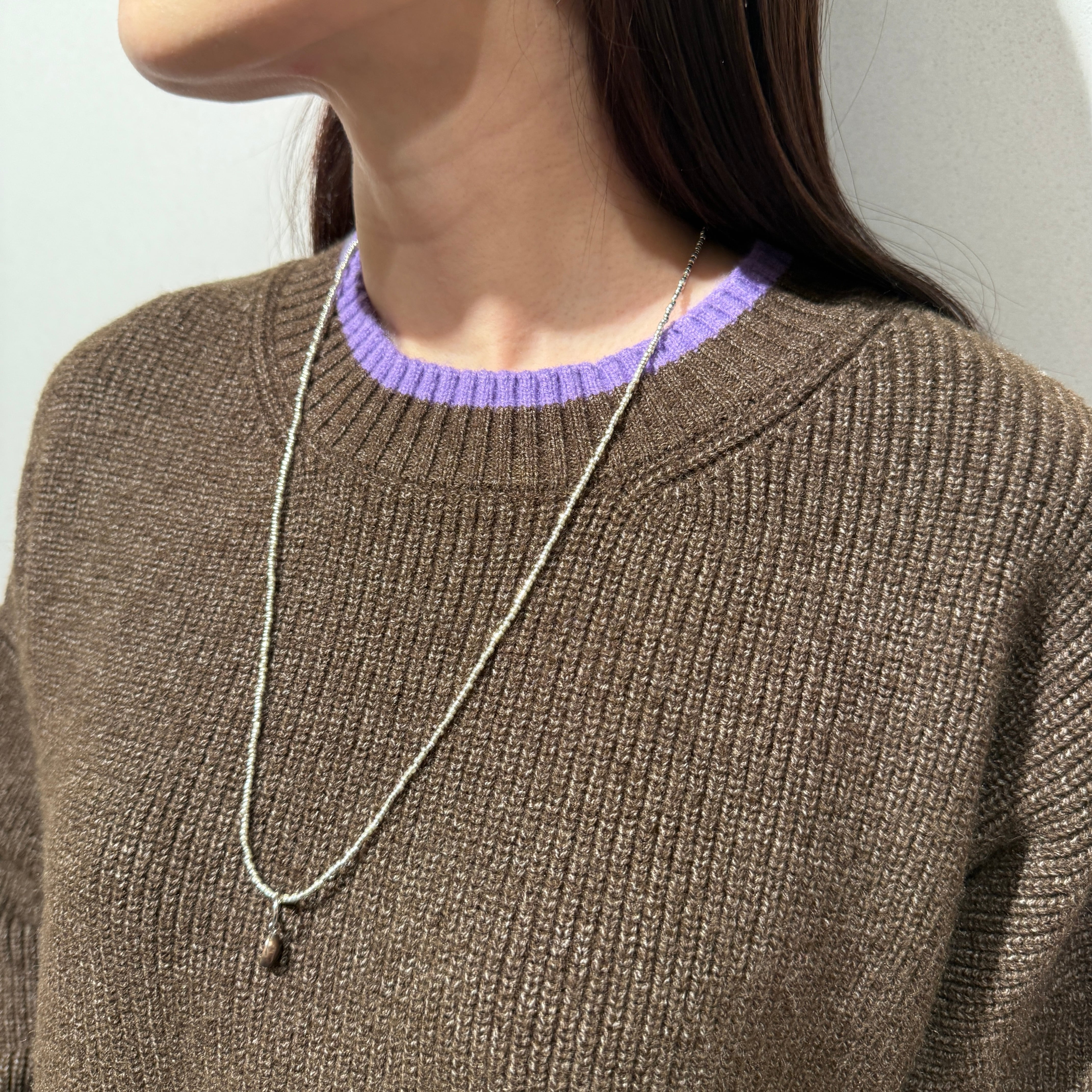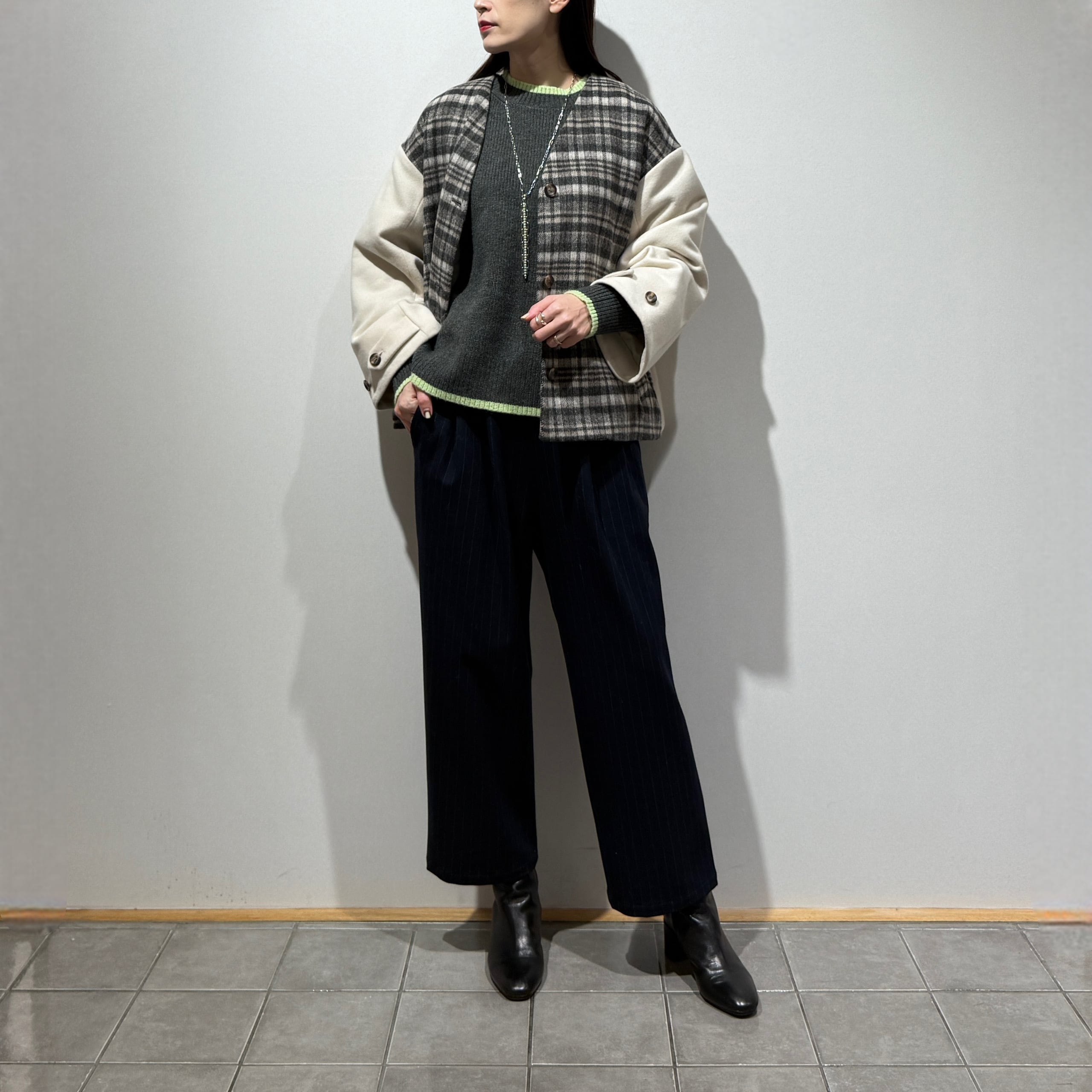 ボディはベーシックカラーなのでスタイリングに取り入れやすく、白シャツなどのインナーレイヤードも楽しい1着です。