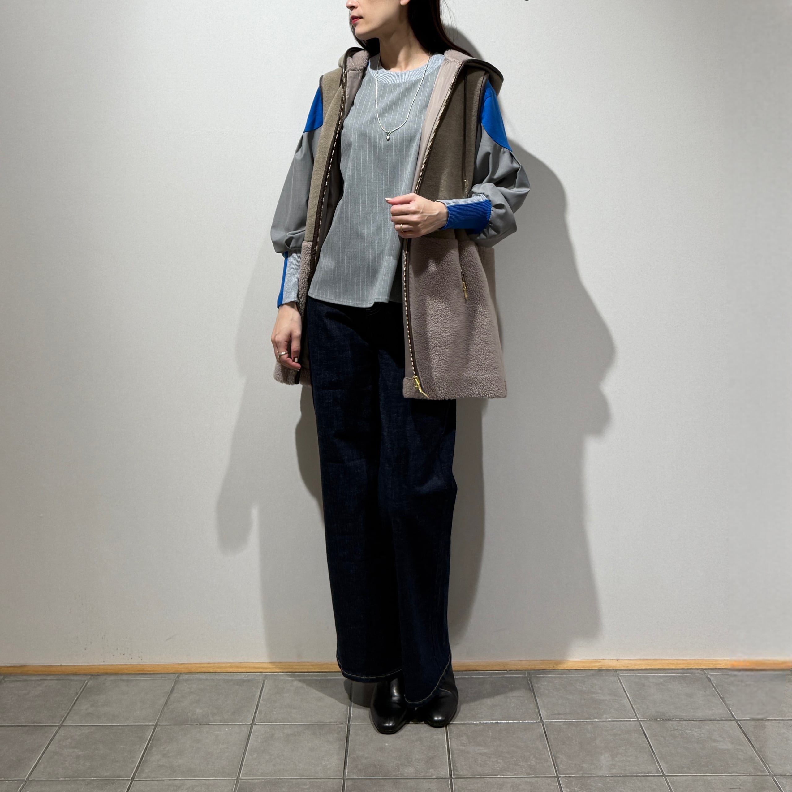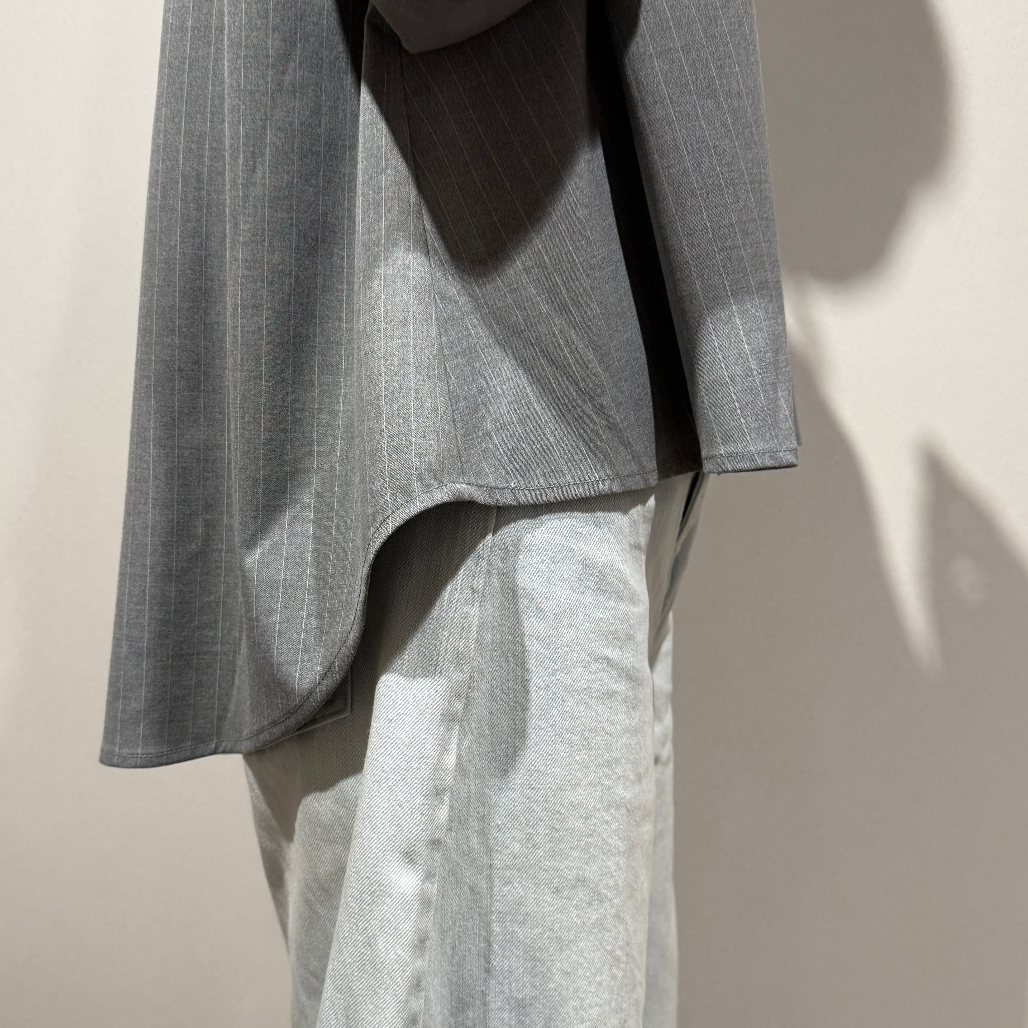 身頃は程よくハリのあるストライプ素材で、きちんと感と軽やかさを両立。
