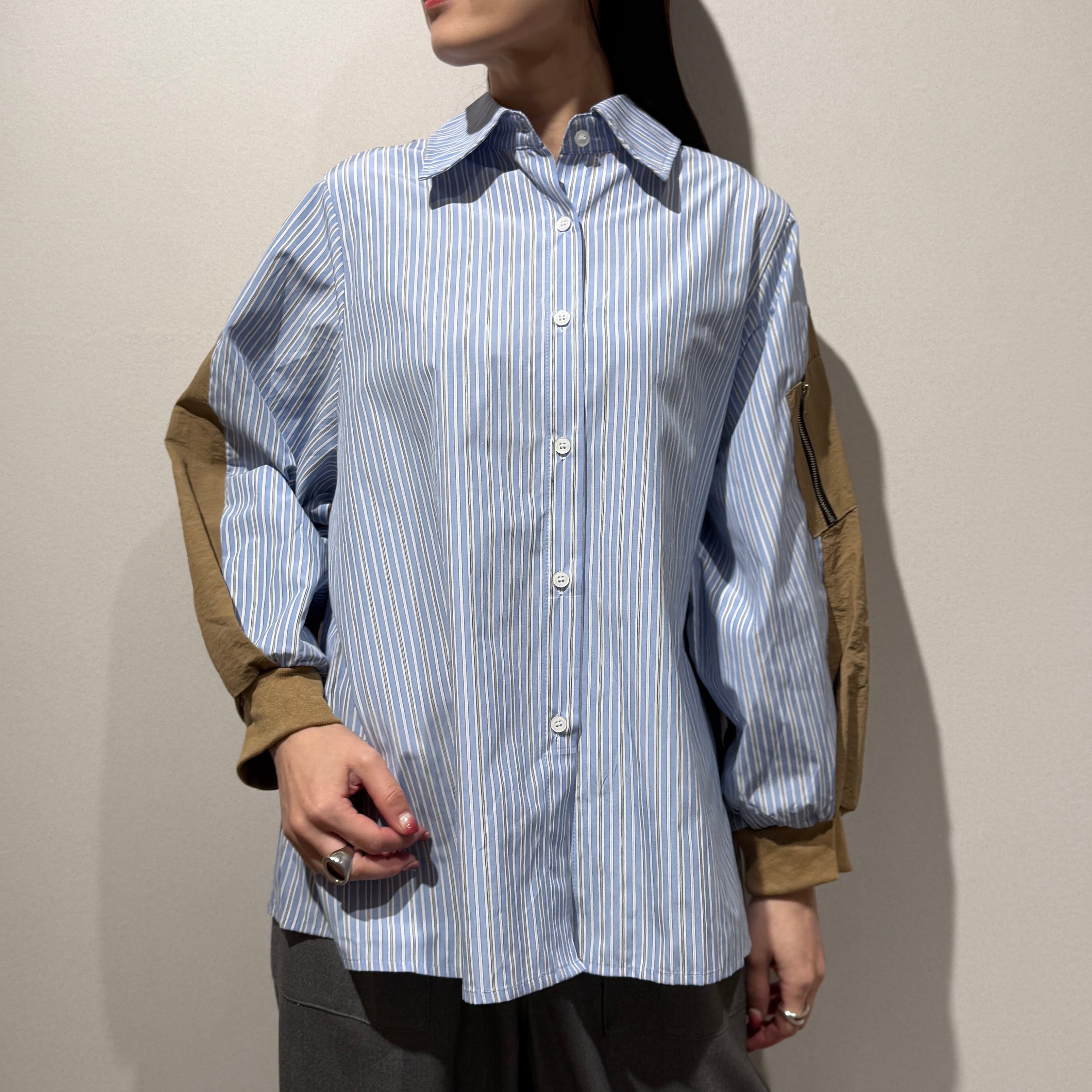 【先行予約 / オンライン限定】袖異素材配色ストライプシャツ
