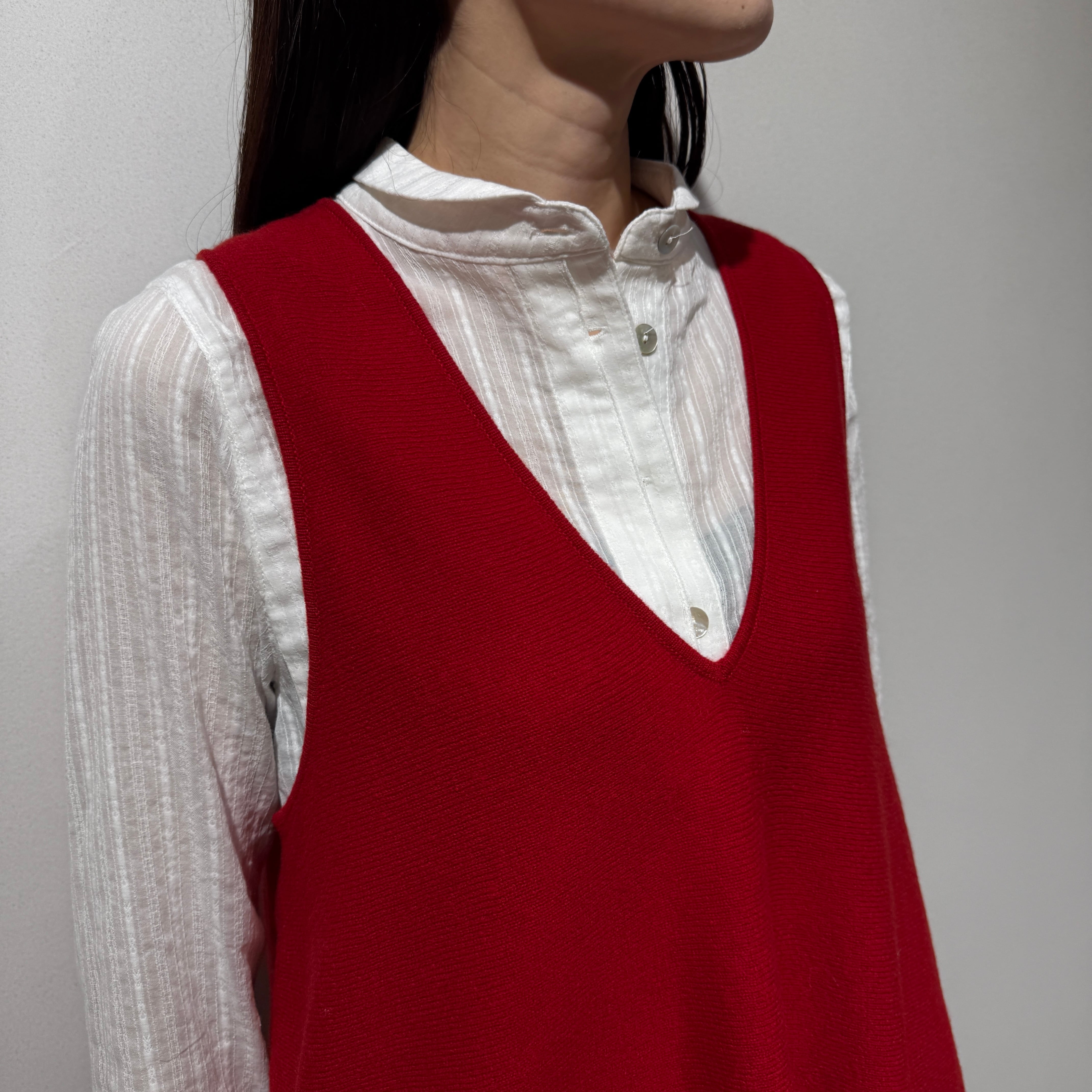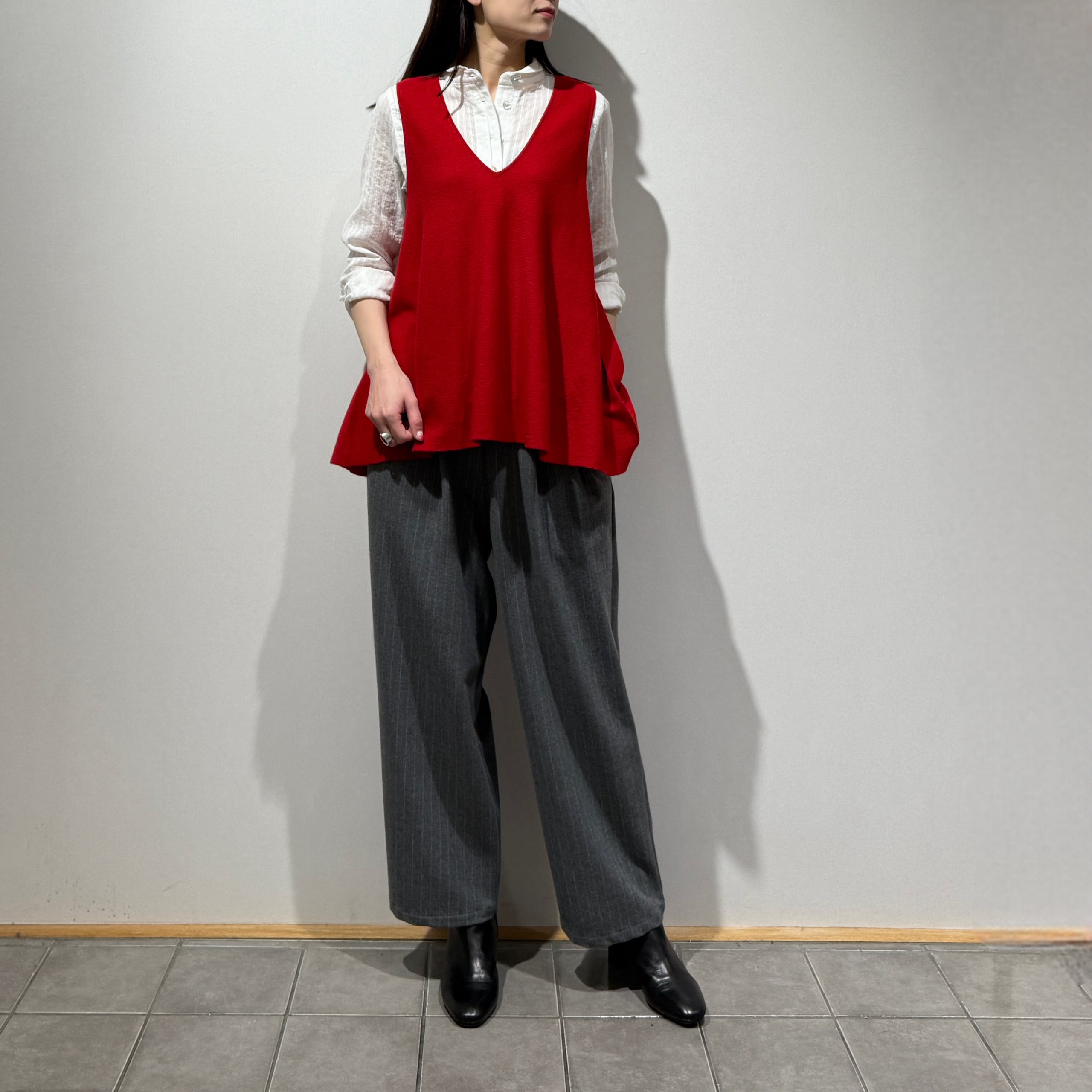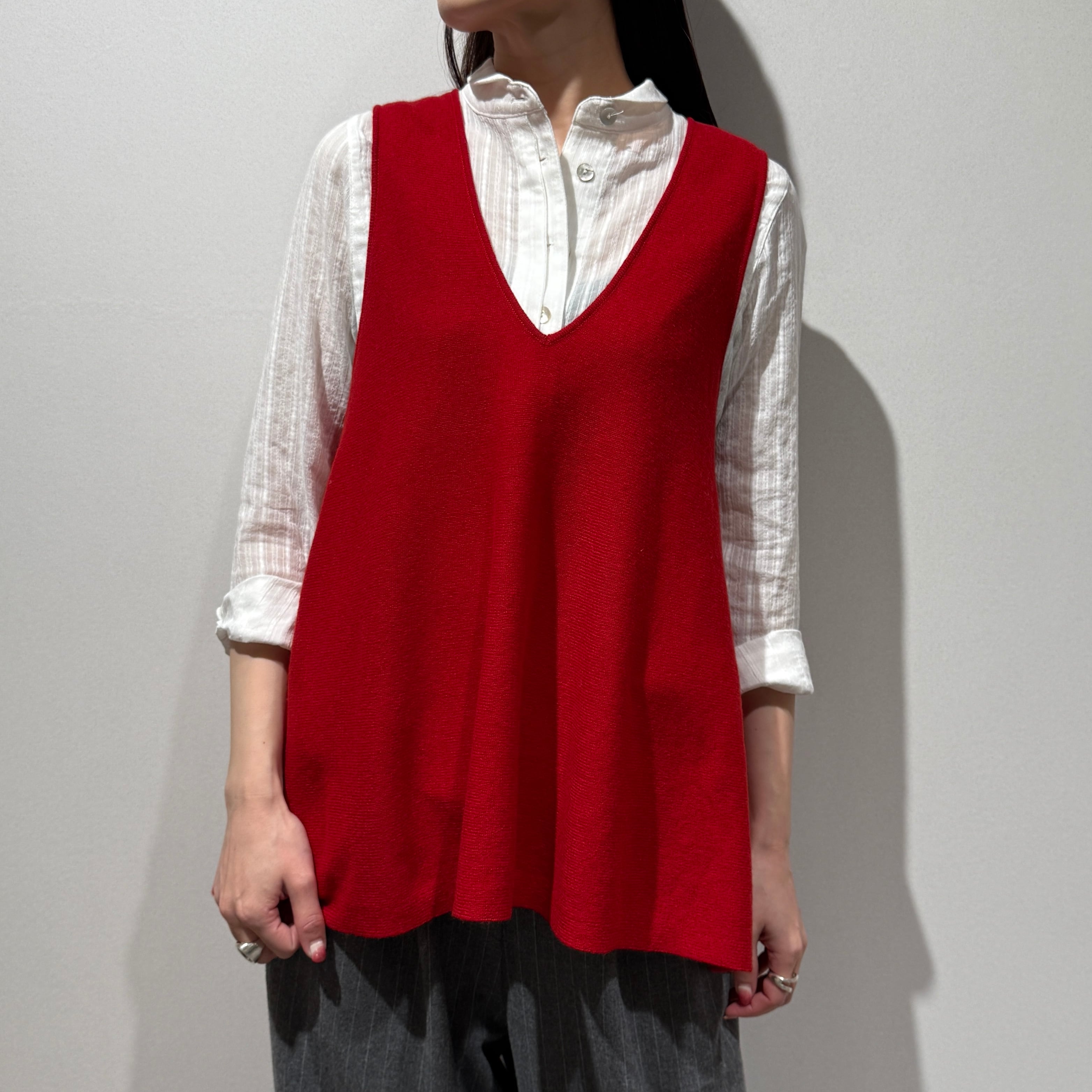 着回し力抜群なソフトウールVネックフレアジレ。