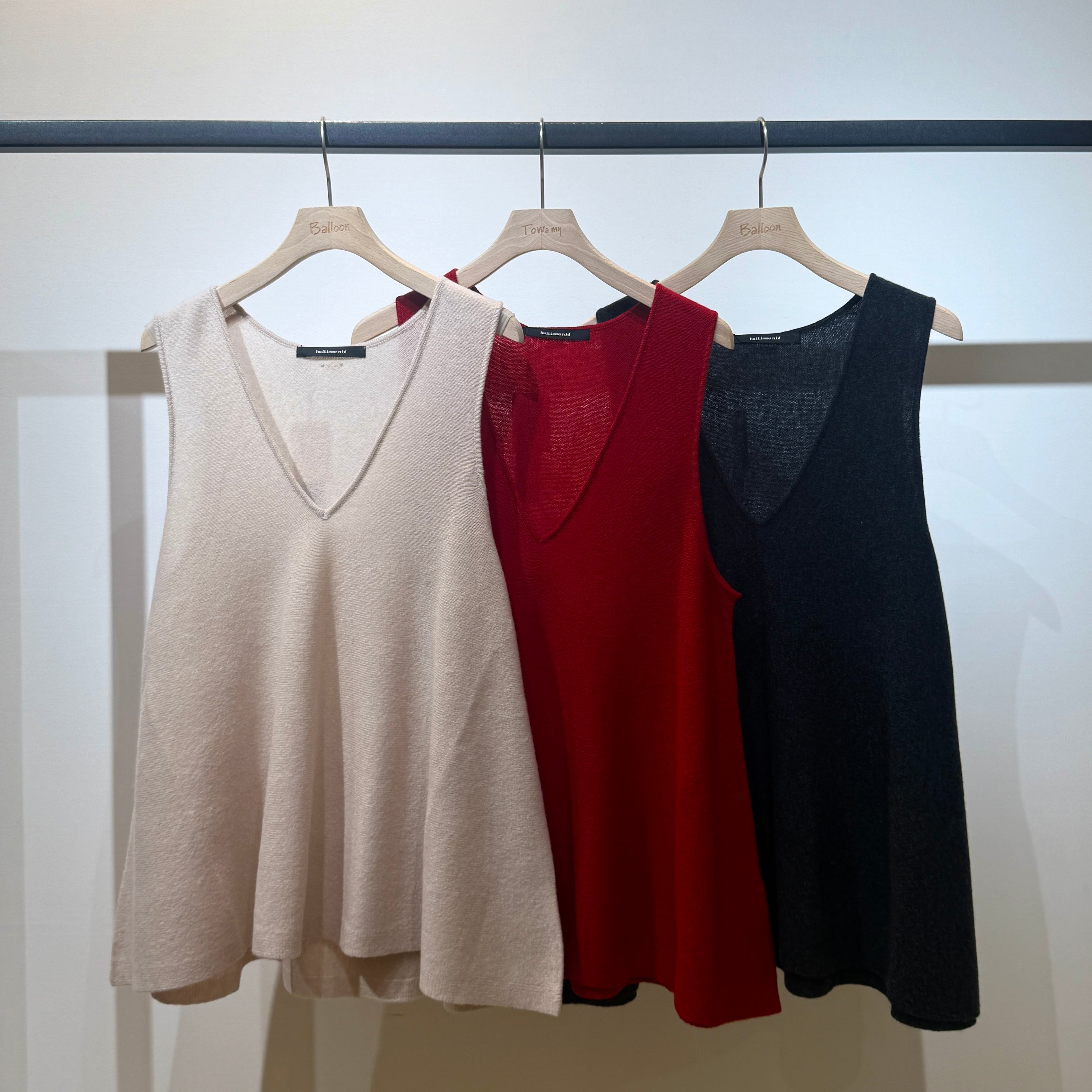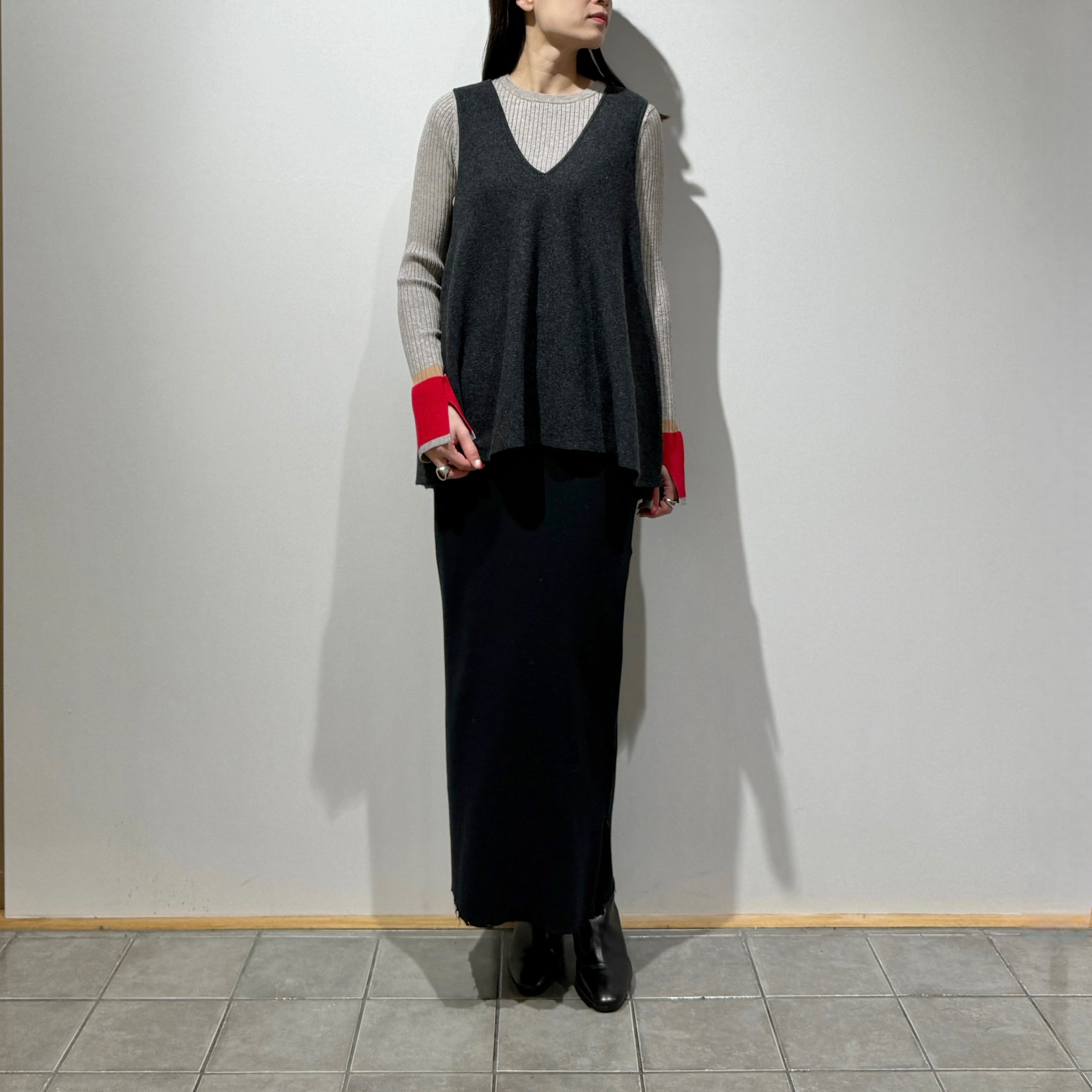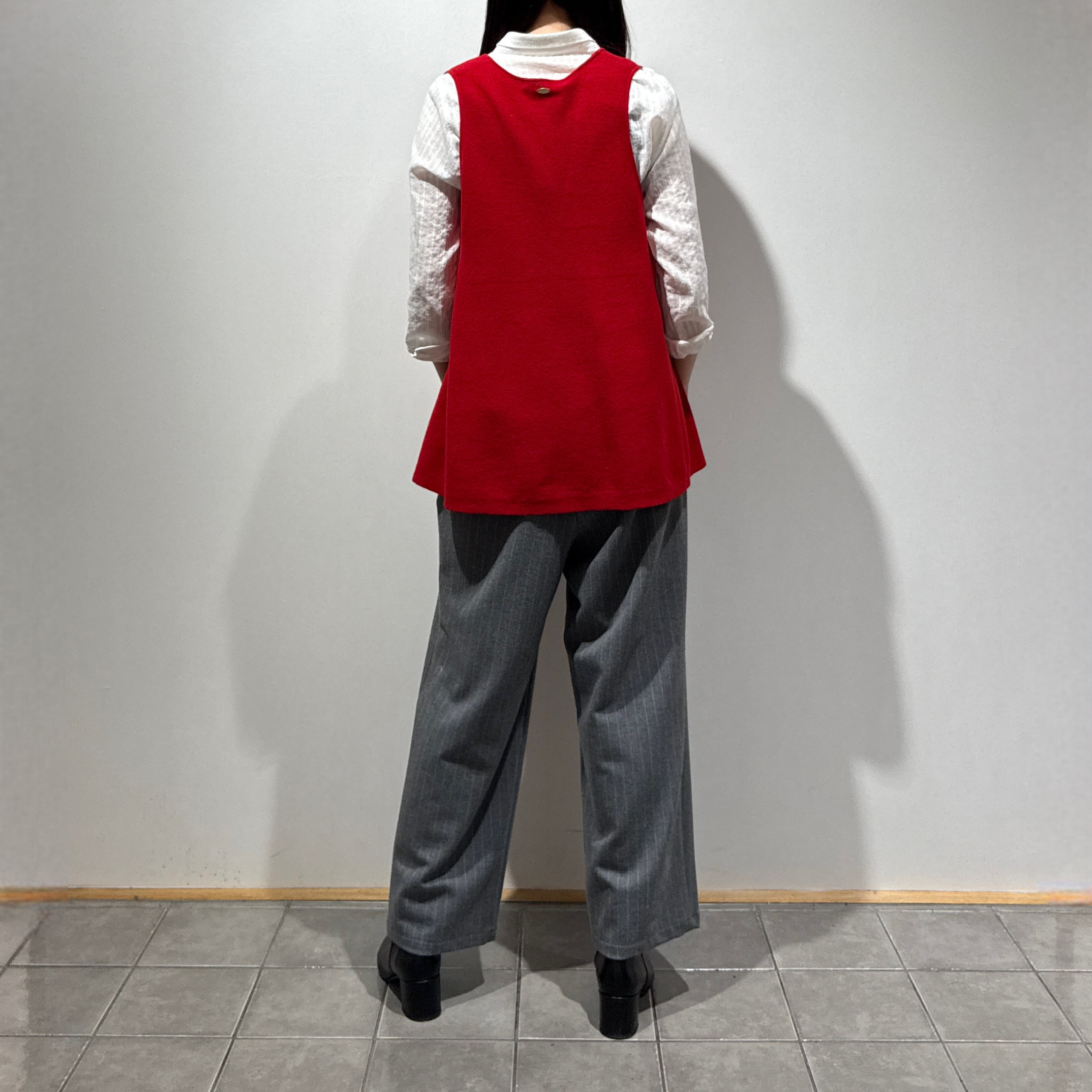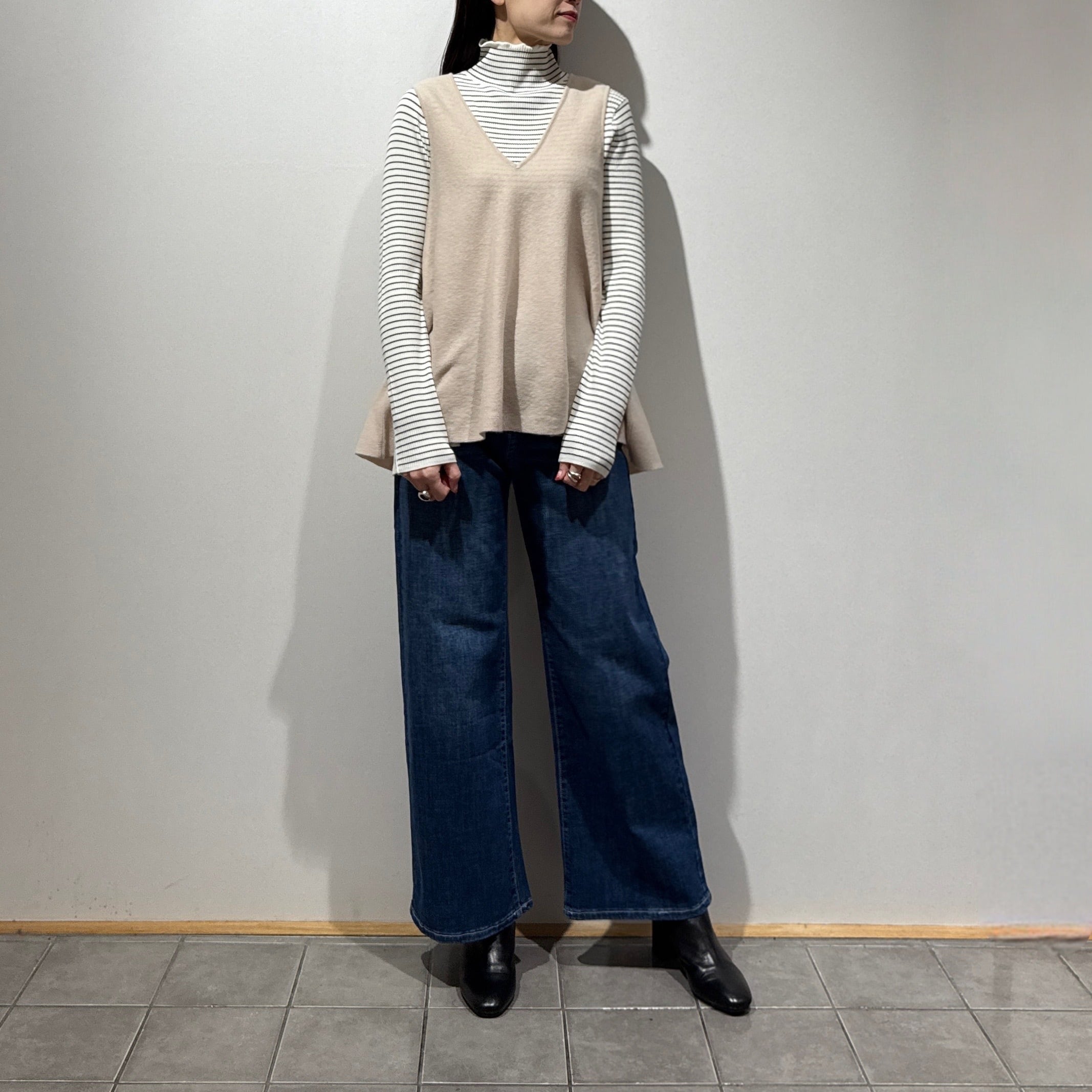 着回し力抜群なソフトウールVネックフレアジレ。