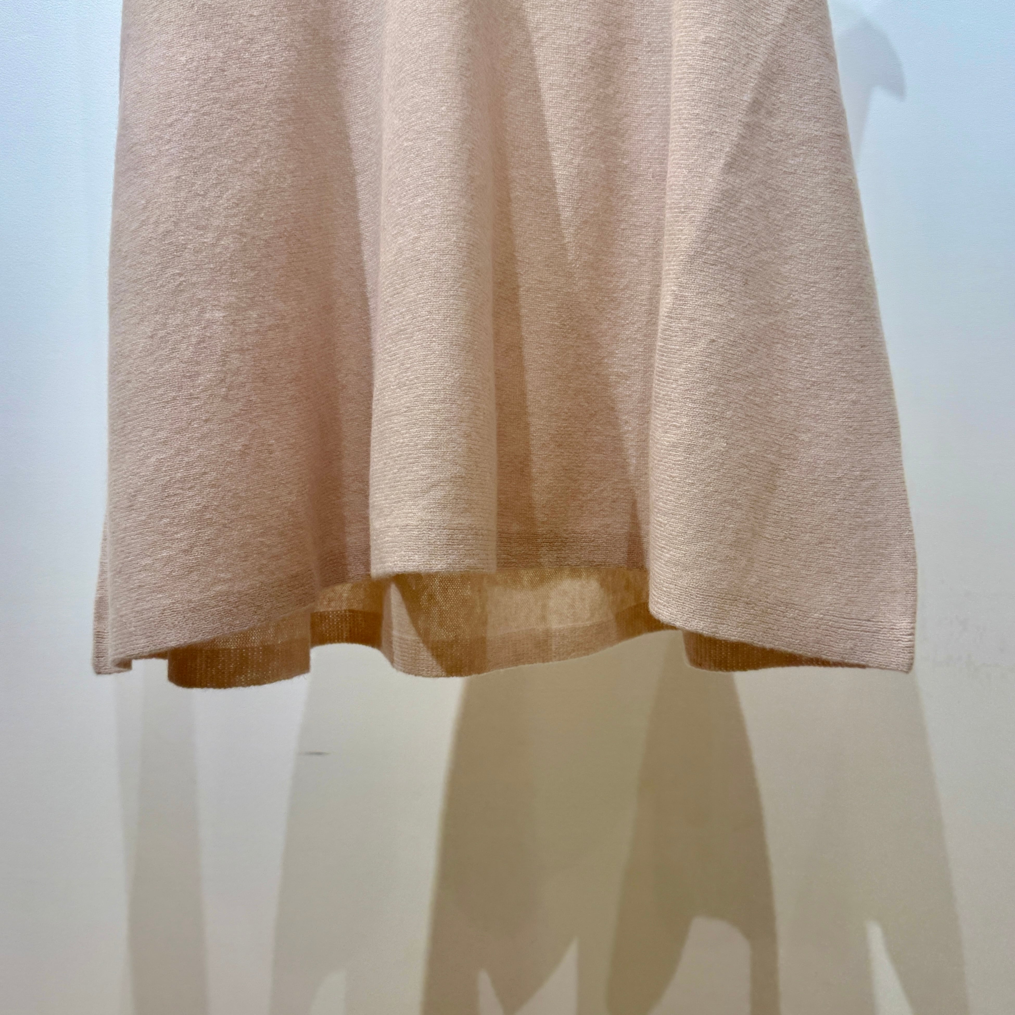 ざっくりと深く開いたVネックと、裾に向かってやや広がるフレアシルエットが体のラインをさりげなくカバーしてくれます。