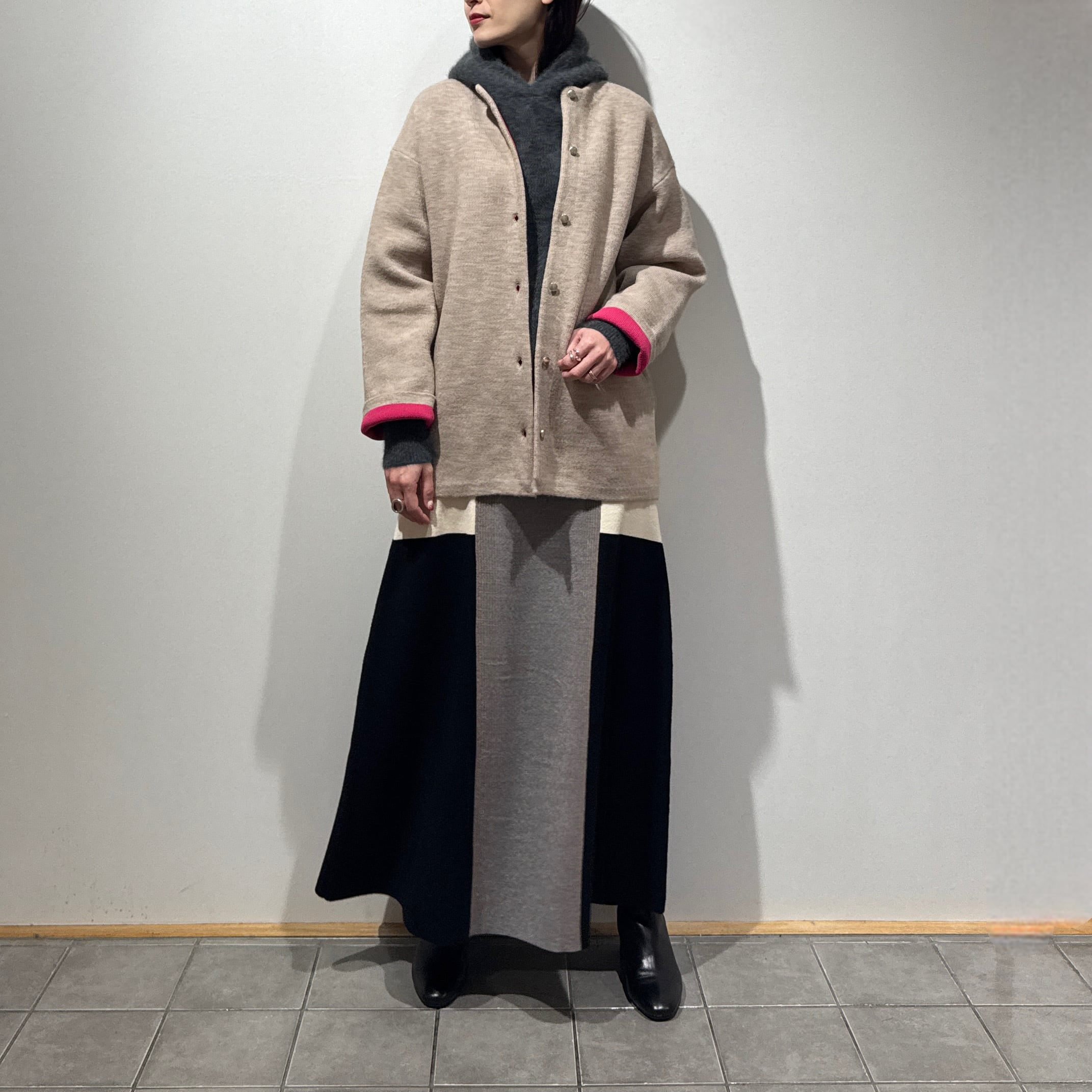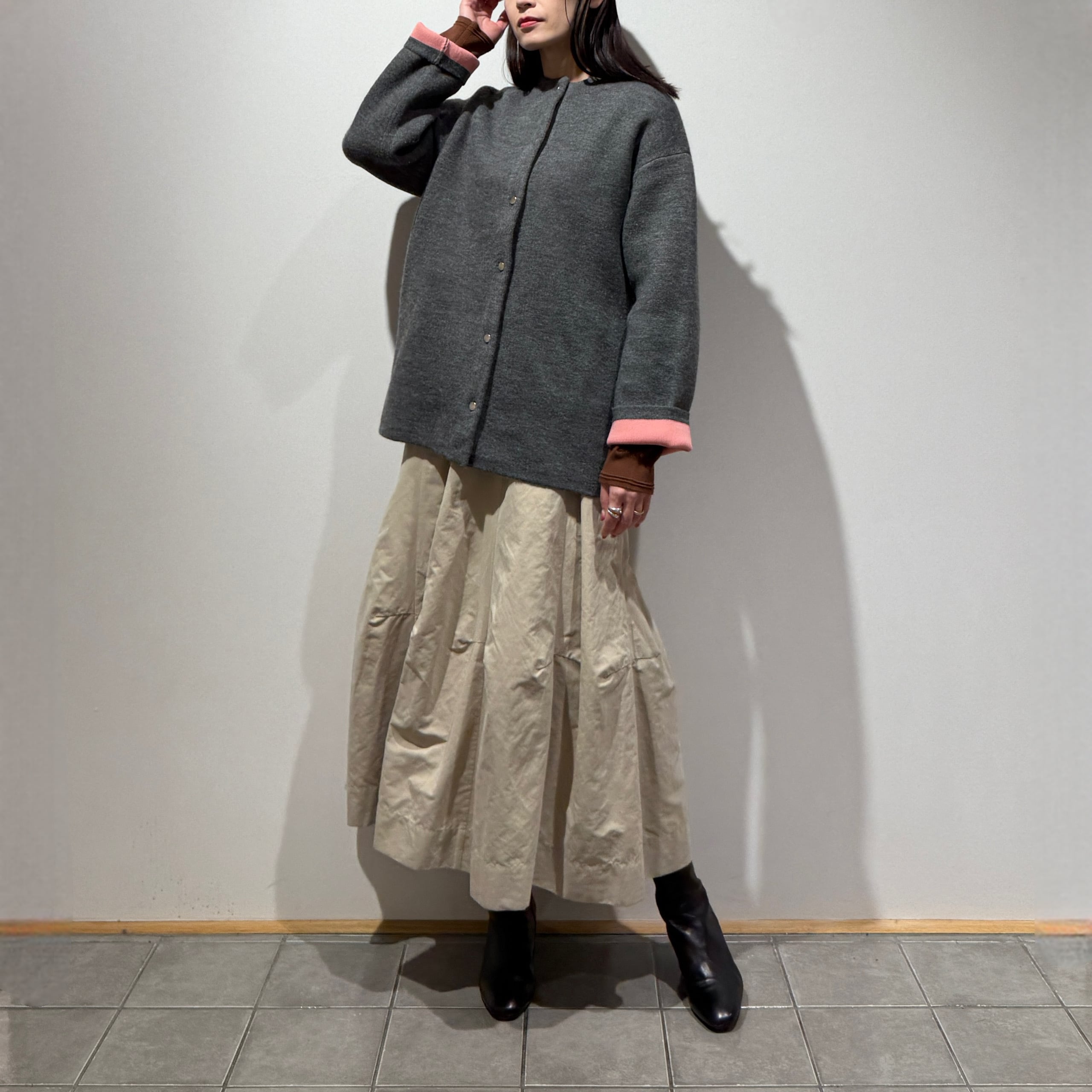 すっきりとしたミドル丈シルエットで、お車移動が多い方にもおすすめです。
