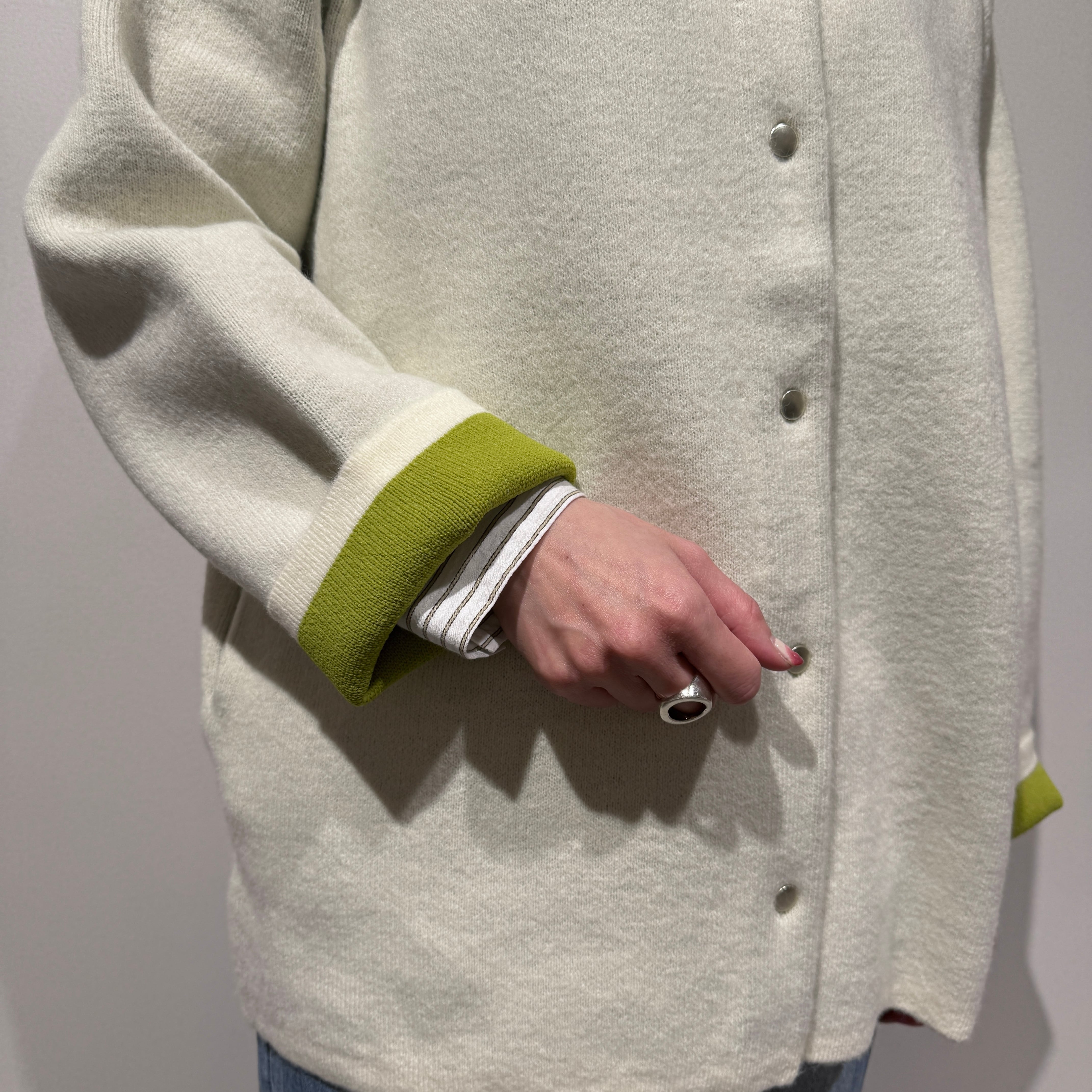 ガウンCDよりボタン数が多く、首元までしっかり留められる仕様。