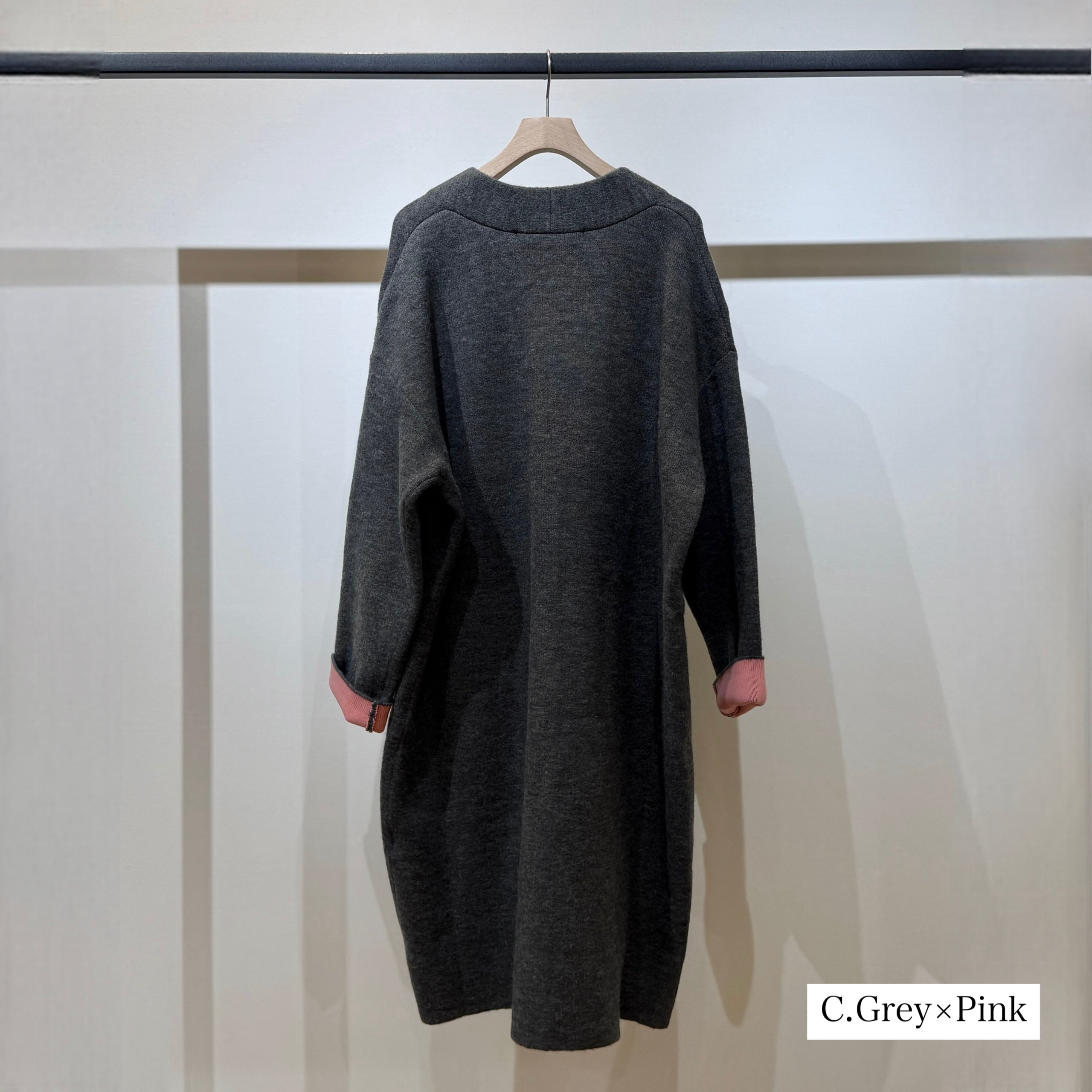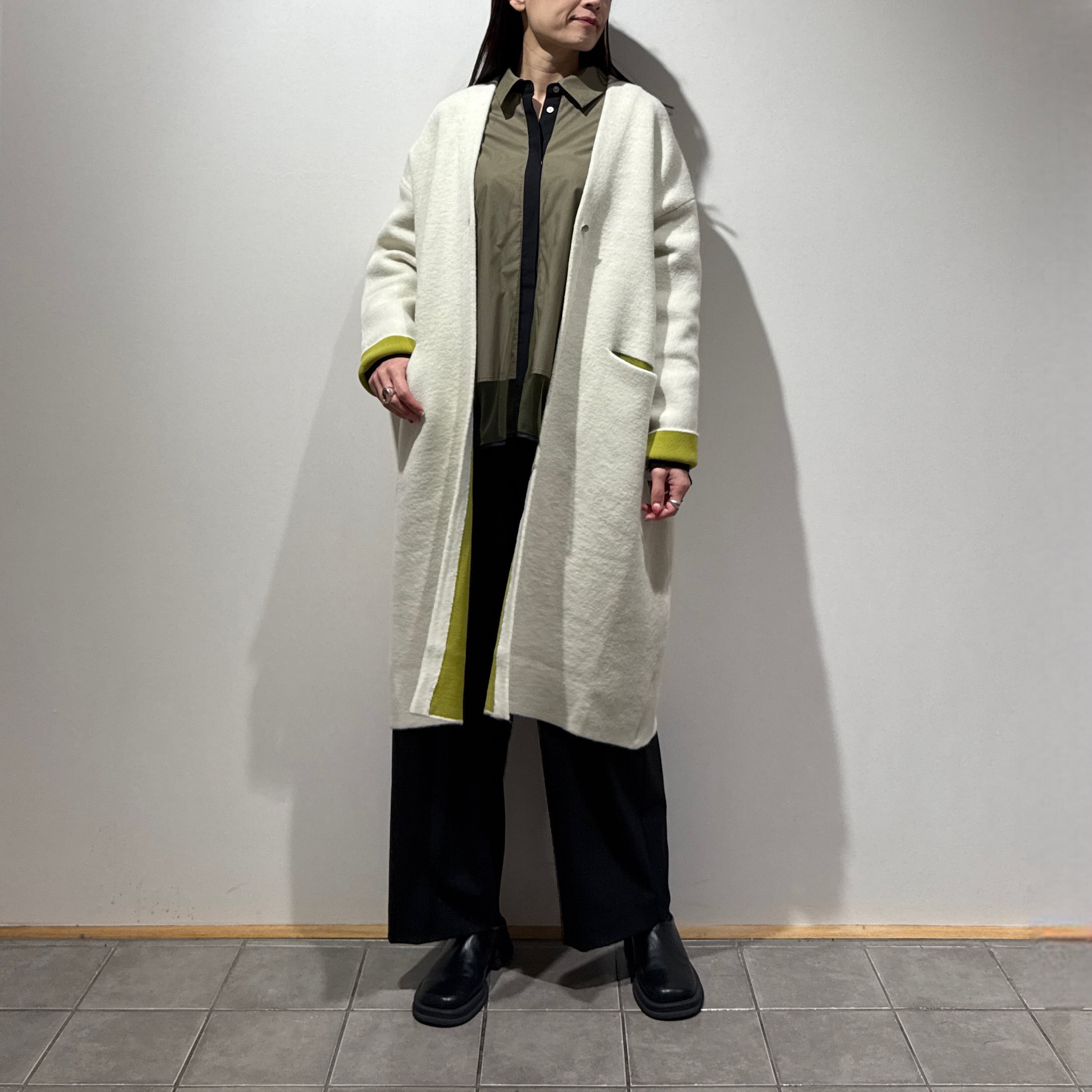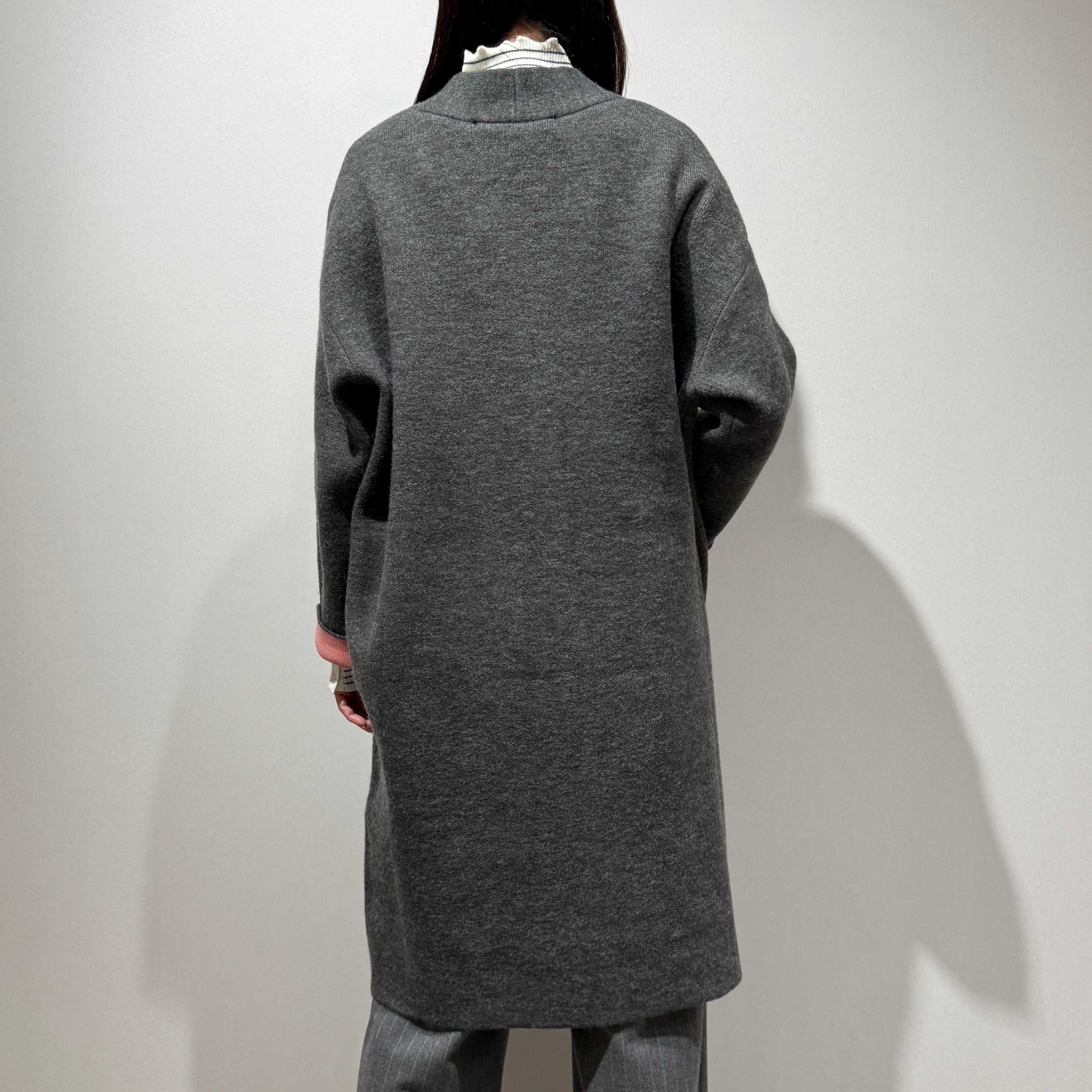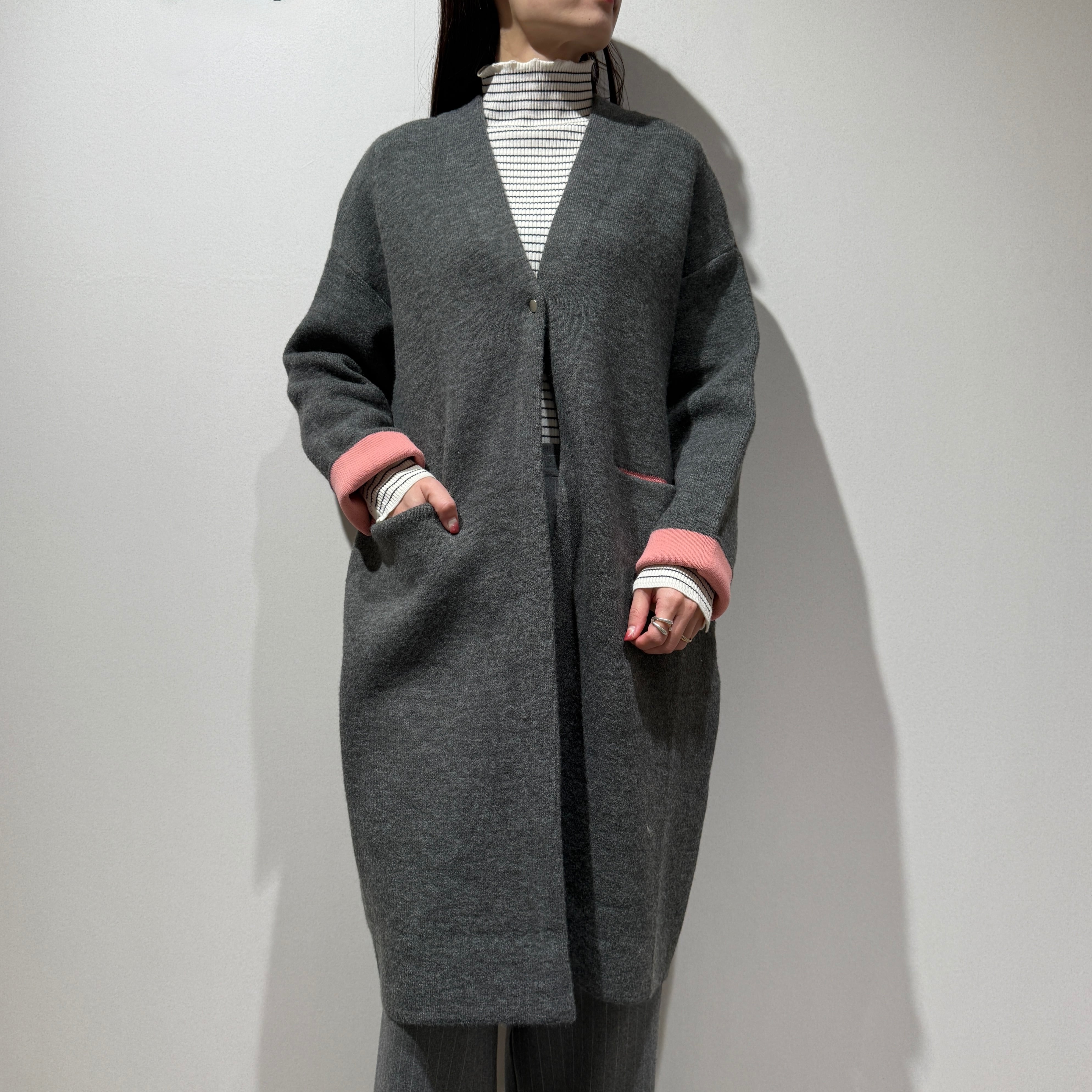配色がさりげなく映える、デイリーに取り入れやすいダブルフェイスニットガウンCD。