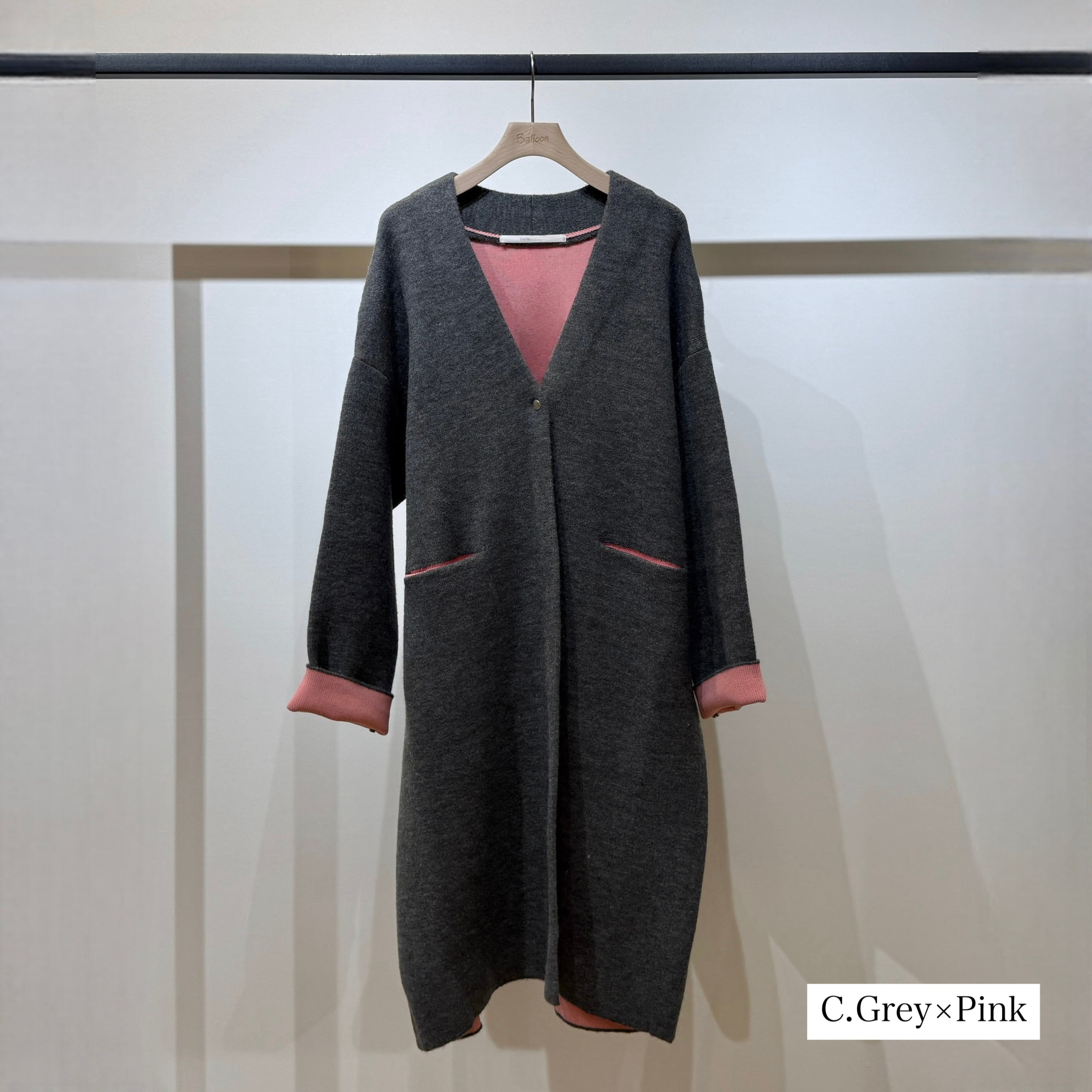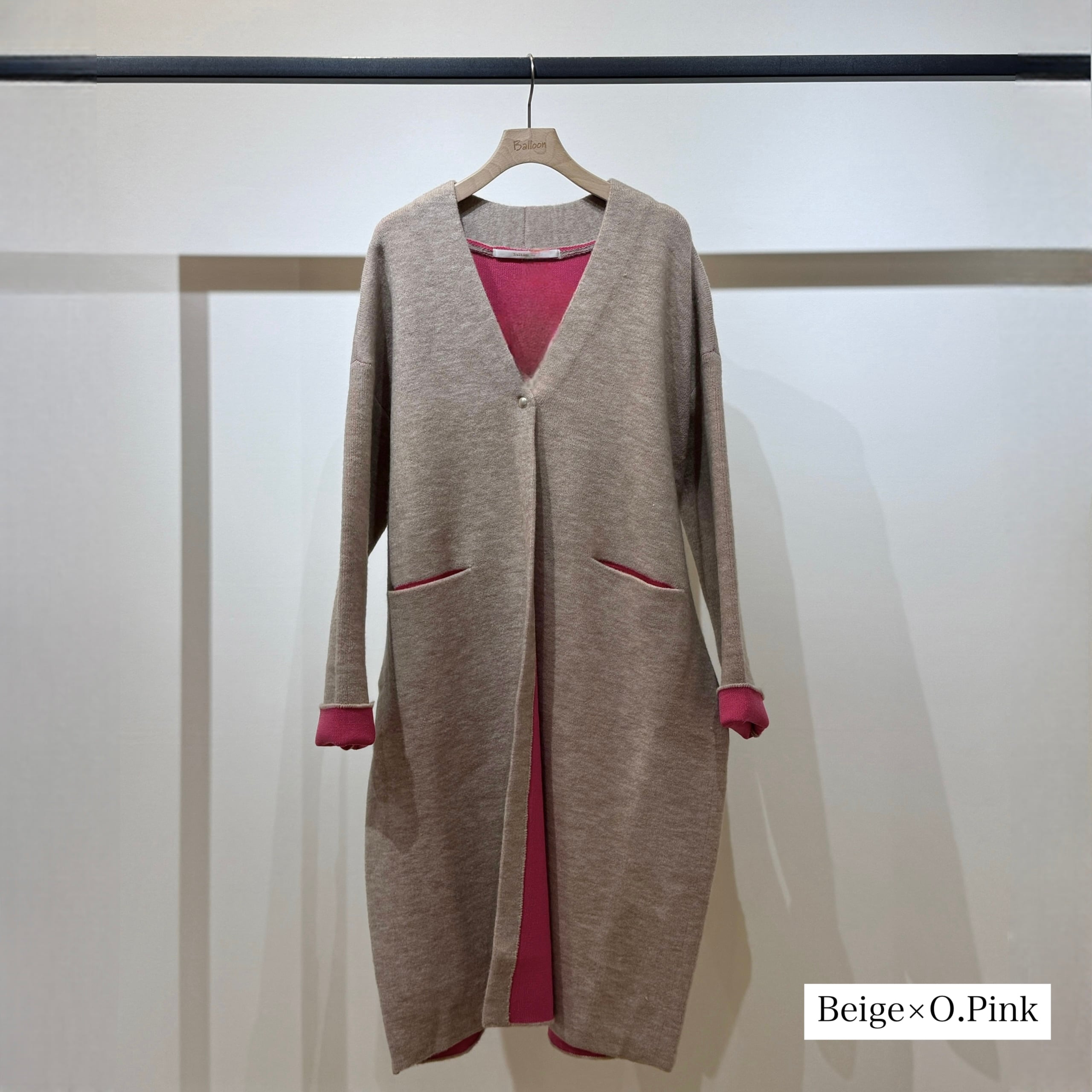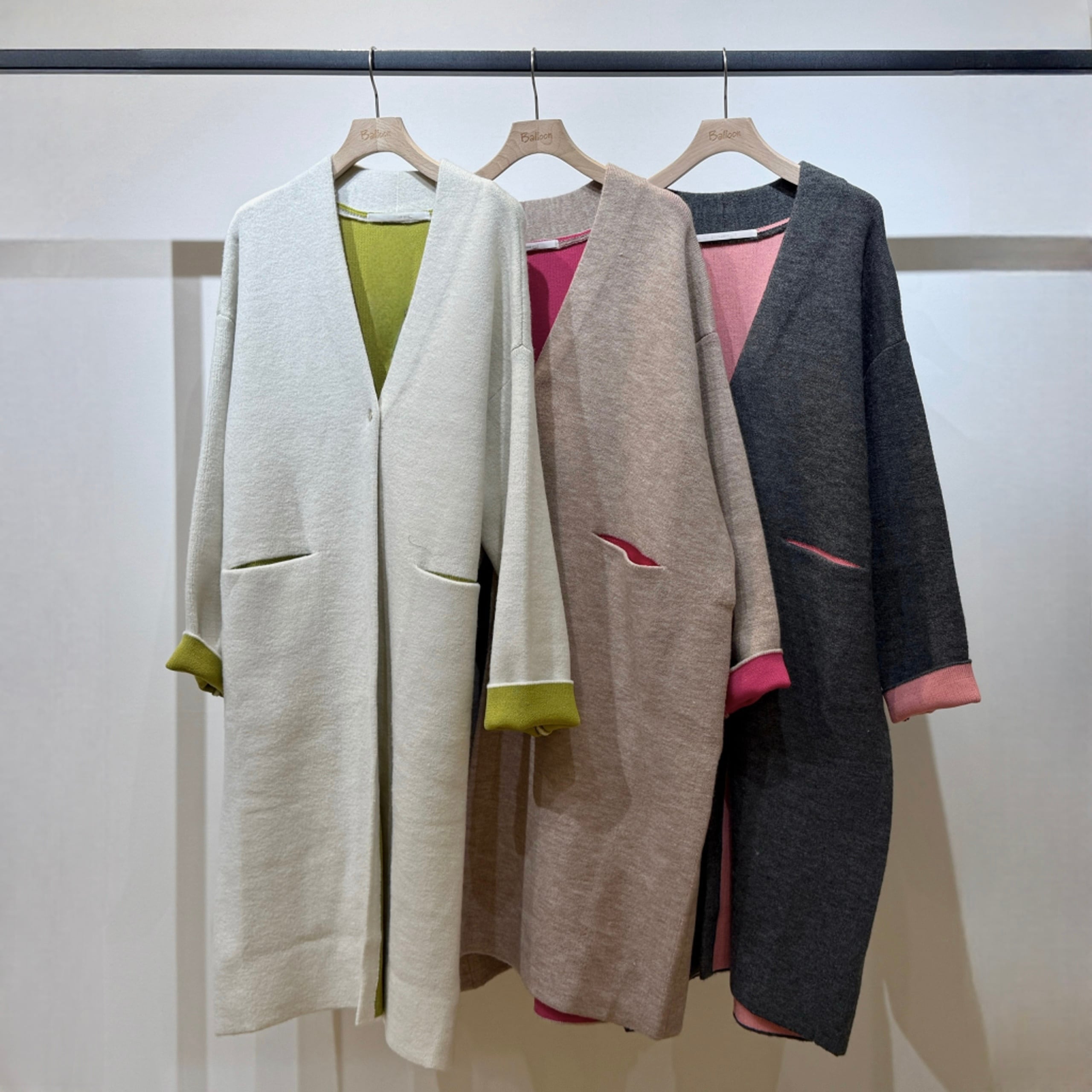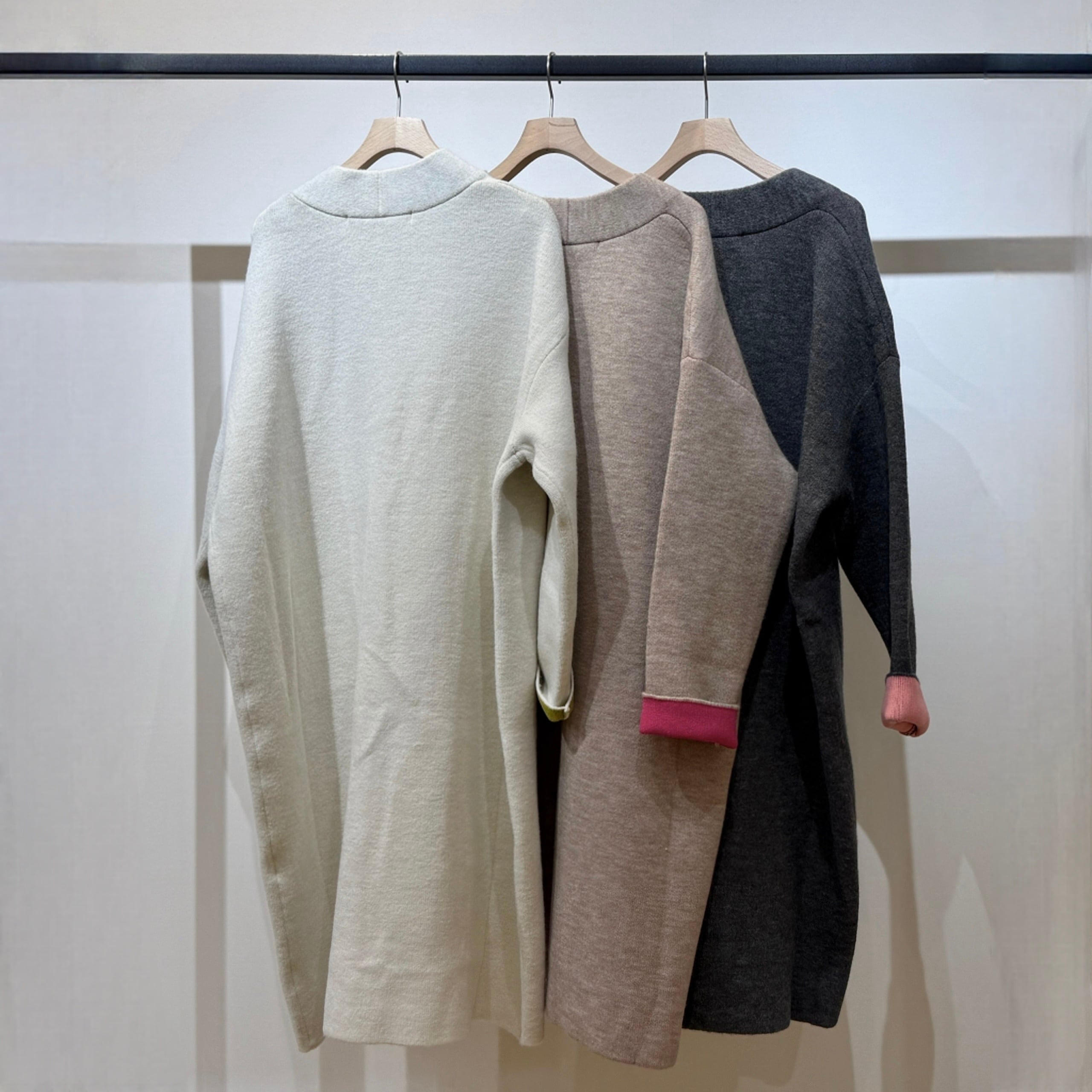 配色がさりげなく映える、デイリーに取り入れやすいダブルフェイスニットガウンCD。