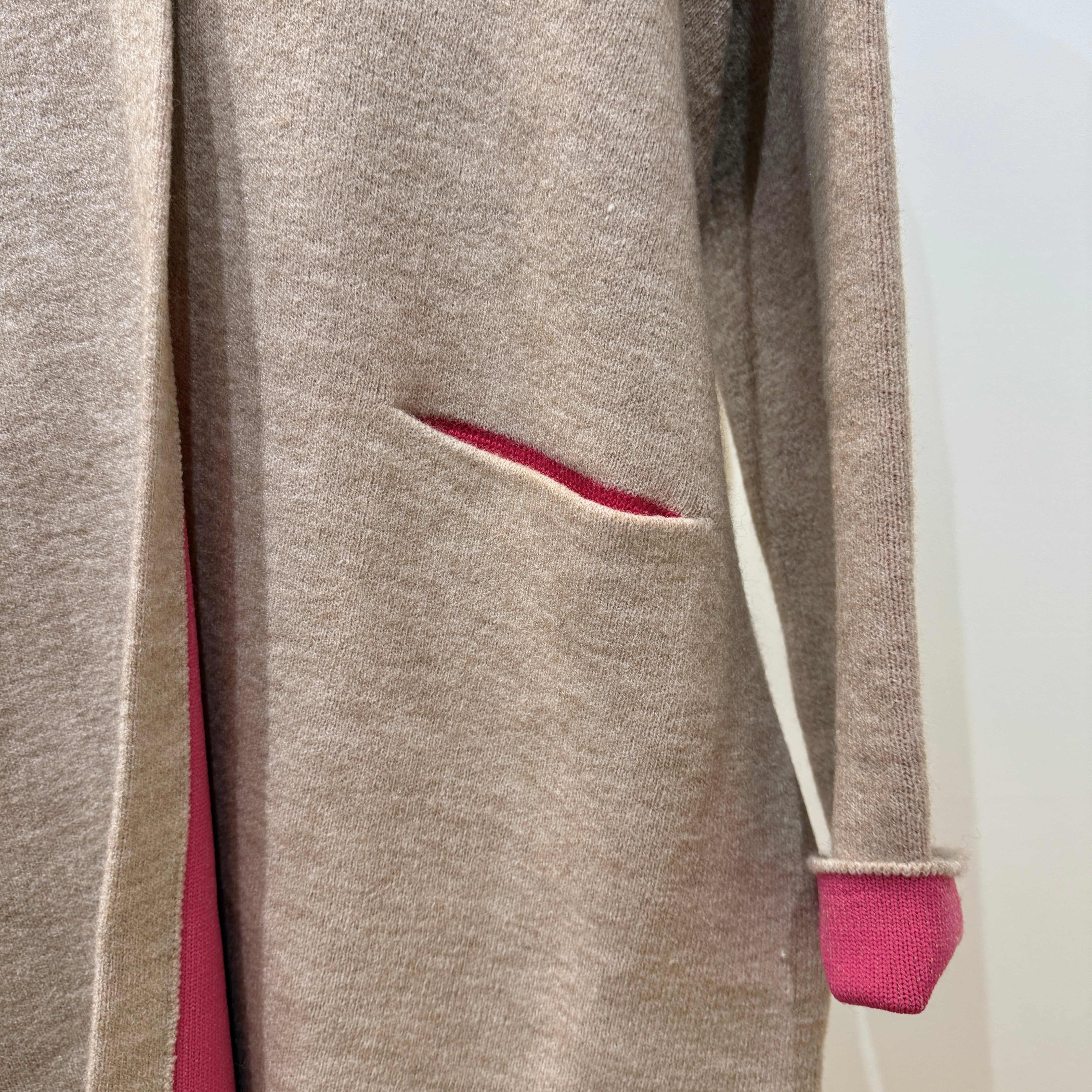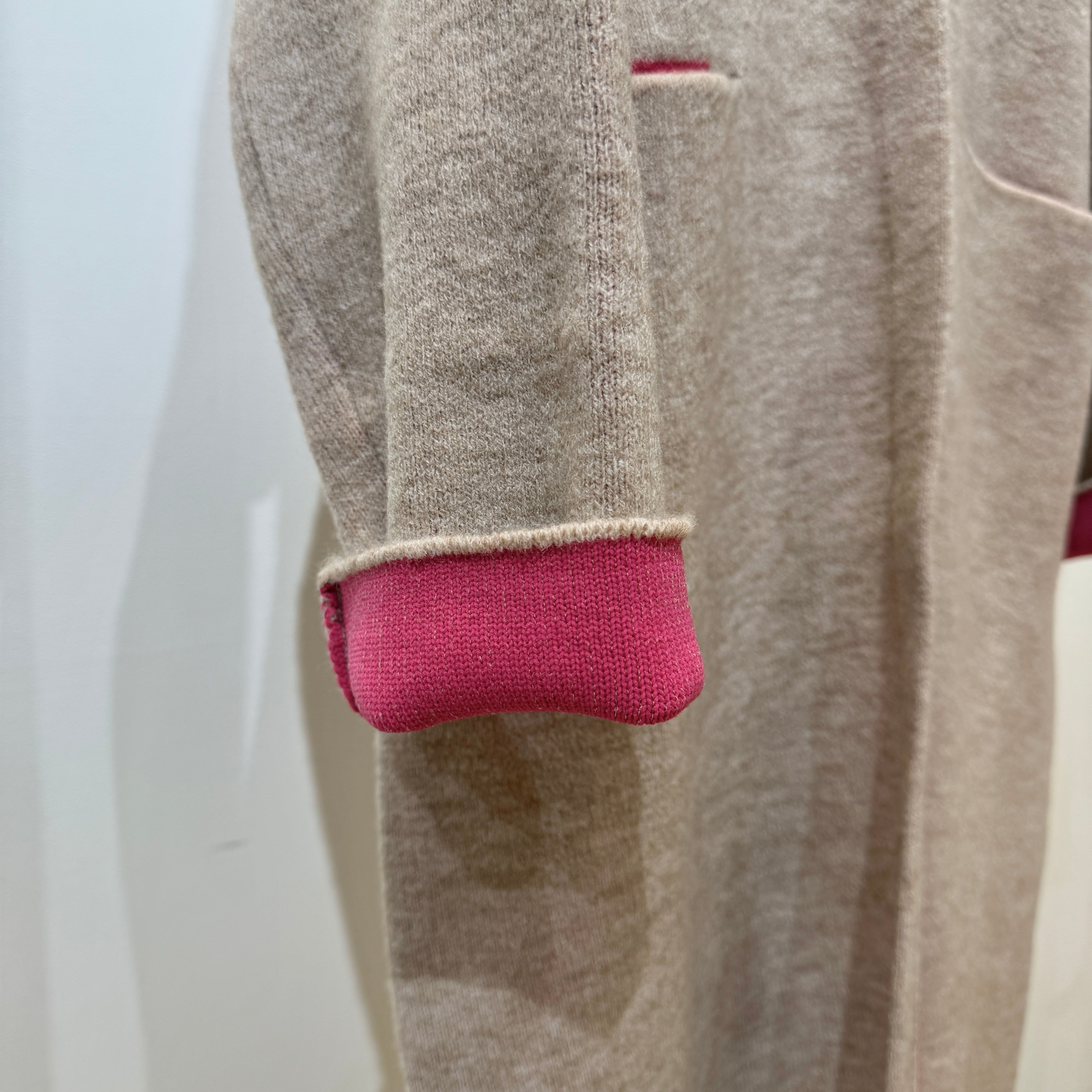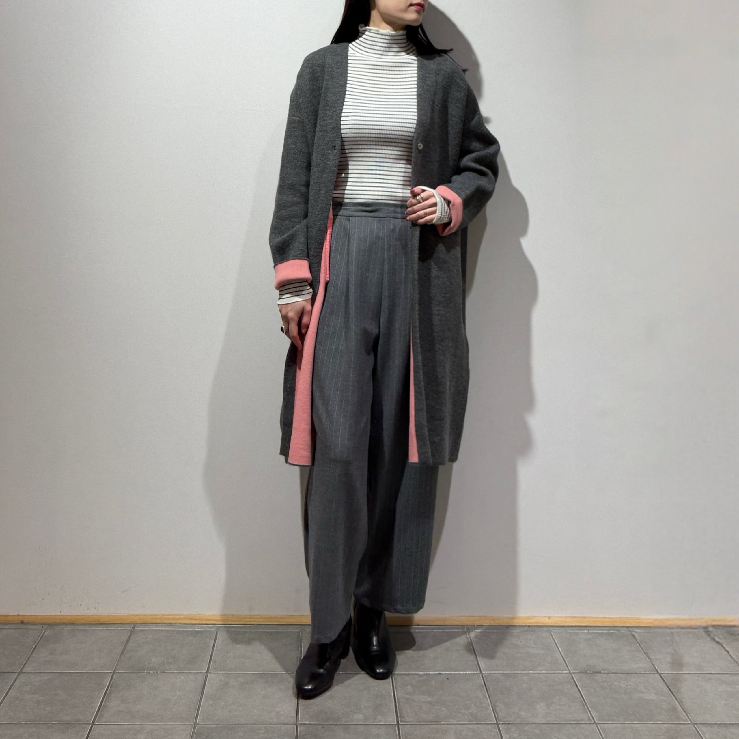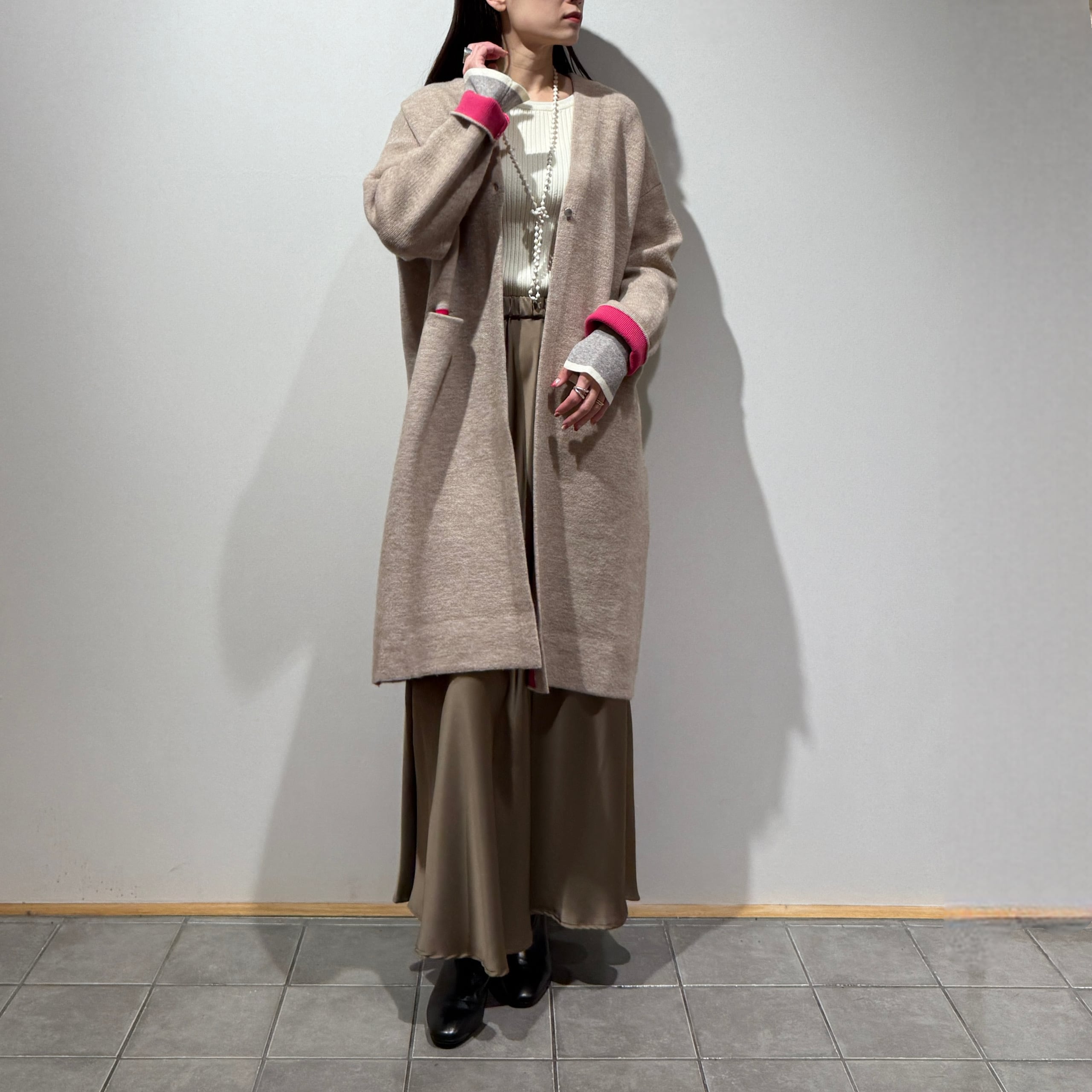 配色がさりげなく映える、デイリーに取り入れやすいダブルフェイスニットガウンCD。